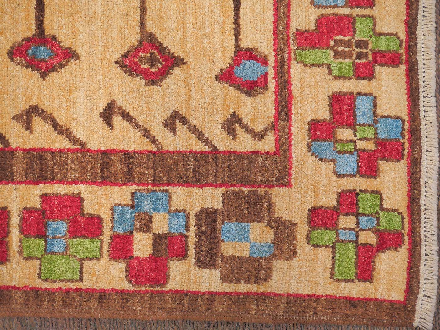 This hand knotted pile rug is made using natural dyes and handspun wool; commissioned by the Nomad Rugs design team and woven by Turquoise Mt. weavers. Thousands of women in Afghanistan are being supported in this weaving project which creates a sustainable livelihood for weaving families. Label Step ensure a comprehensive set of fair trade standards and environmentally friendly production. This rug features an ancient Anatolian village design in rich colors and a fine 100kpsi weave. Entirely hand made. FREE Shipping and Easy Returns.