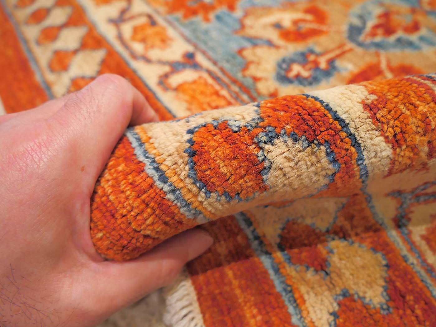 This hand knotted pile rug is made using handspun wool and natural dyes. This rug is woven with around 90kpsi and a NW Persian Bakshaish design with lovely colors, rich abrash and a sturdy weave. Weaving takes place in the northern areas of Afghanistan, the home of the Turkmen people. Carpet weaving is perhaps the most essential and revered cultural activity for Turkmen; something which traditionally all women take part in. The art of weaving is reverently passed on from mother to daughter with the weaving of these rugs taking place in individual family homes. Entirely hand made! FREE Shipping and Easy Returns.