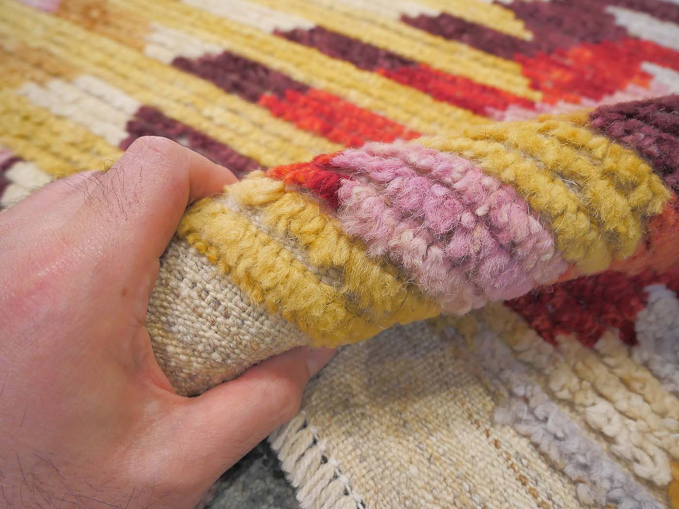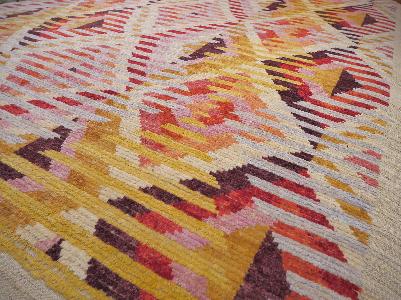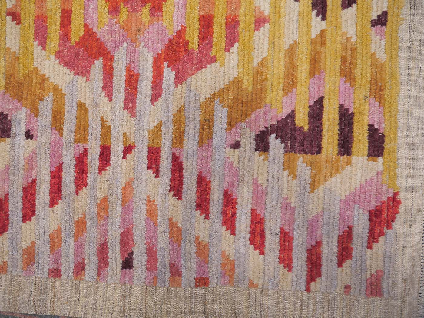 This hand knotted pile rug is made using natural dyes and handspun wool; commissioned by the Nomad Rugs design team and woven by Turquoise Mt. weavers. Thousands of women in Afghanistan are being supported in this weaving project which creates a sustainable livelihood for weaving families. Label Step ensure a comprehensive set of fair trade standards and environmentally friendly production. This rug features a lovely North African rug design in rich colors and a textured weave. Entirely hand made. FREE Shipping and Easy Returns.
