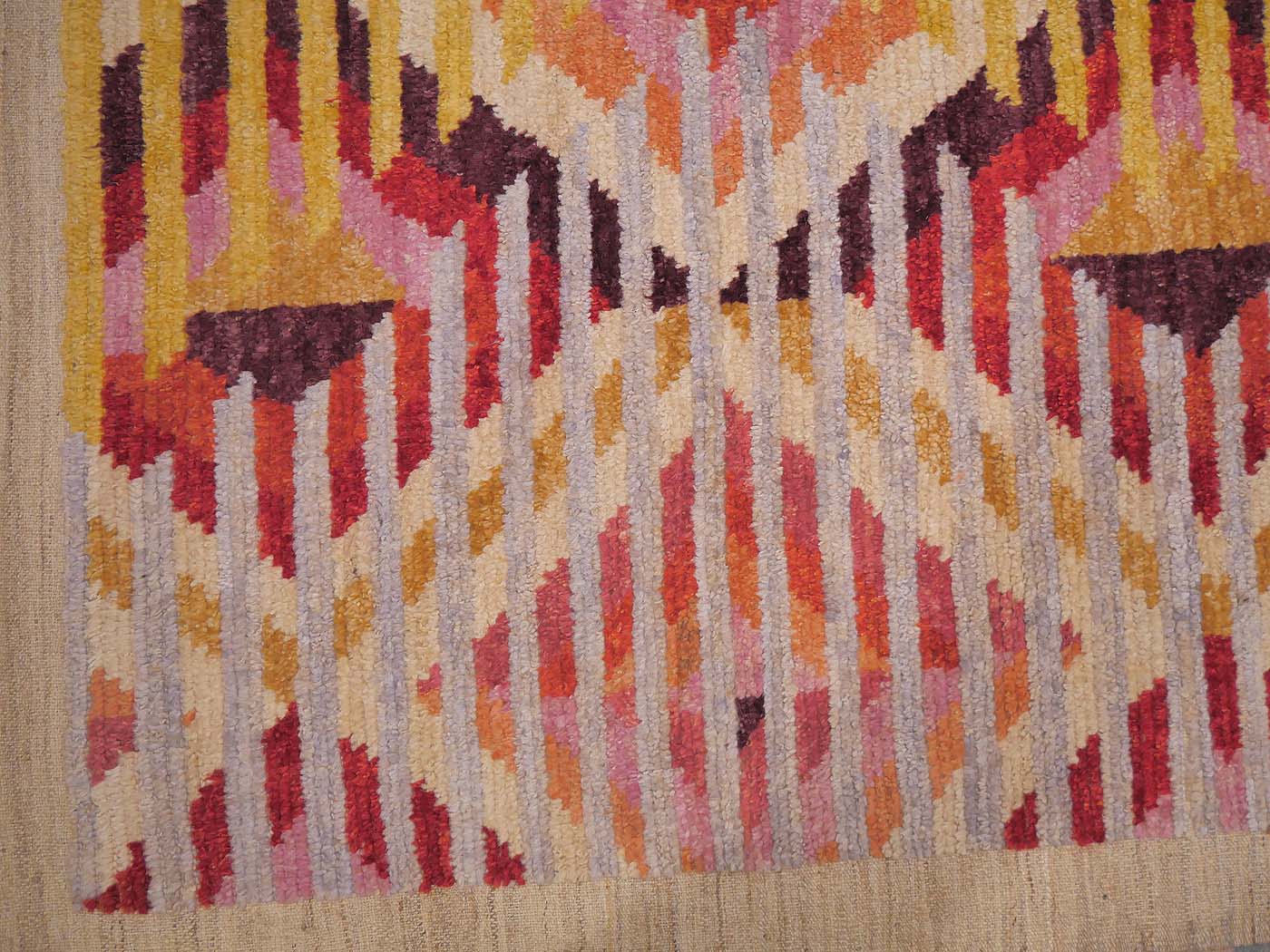 This hand knotted pile rug is made using natural dyes and handspun wool; commissioned by the Nomad Rugs design team and woven by Turquoise Mt. weavers. Thousands of women in Afghanistan are being supported in this weaving project which creates a sustainable livelihood for weaving families. Label Step ensure a comprehensive set of fair trade standards and environmentally friendly production. This rug features a lovely North African rug design in rich colors and a textured weave. Entirely hand made. FREE Shipping and Easy Returns.