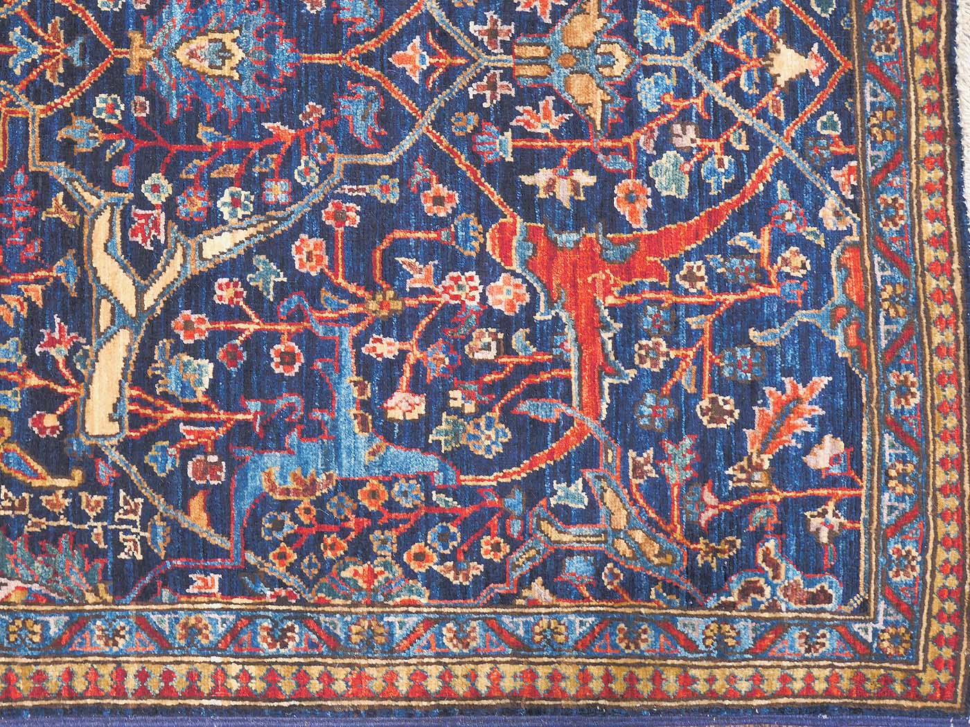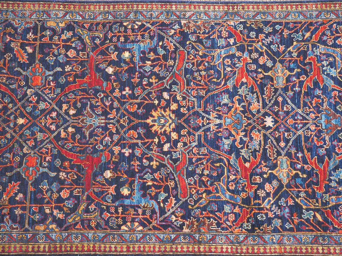 This hand knotted pile rug is made using 100% natural dyes and handspun wool; finely woven with over 160kpi. Weaving takes place in the northern areas of Afghanistan, the home of the Turkmen people. Carpet weaving is perhaps the most essential and revered cultural activity for Turkmen; something which traditionally all women take part in. The art of weaving is reverently passed on from mother to daughter with the weaving of these rugs taking place in individual family homes. A wonderful Bidjar garrus motif rendered in beautiful colors. Woven in participation with Barakat; helping communities thrive by providing education in rug weaving countries. FREE Shipping and Easy Returns.