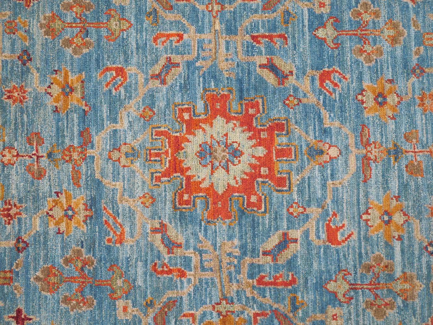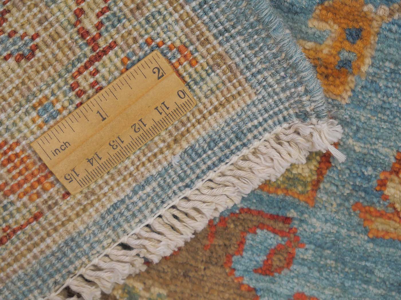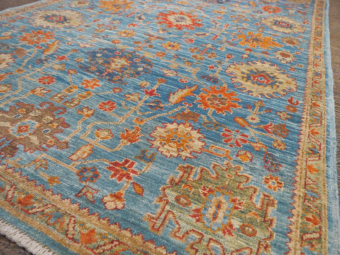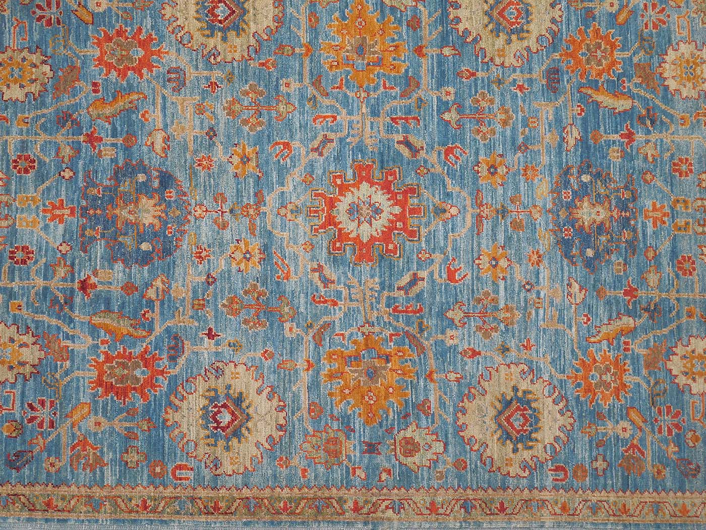 This hand knotted pile rug is made using 100% natural dyes and handspun wool. This rug is woven with around 90kpi. Weaving takes place in the northern areas of Afghanistan, the home of the Turkmen people. Carpet weaving is perhaps the most essential and revered cultural activity for Turkmen; something which traditionally all women take part in. The art of weaving is reverently passed on from mother to daughter with the weaving of these rugs taking place in individual family homes. Wonderful blues tones complete this lovely Oushak design carpet. Proceeds from the sale of this rug benefit Barakat; helping communities thrive by providing education in rug weaving countries. FREE Shipping and Easy Returns.