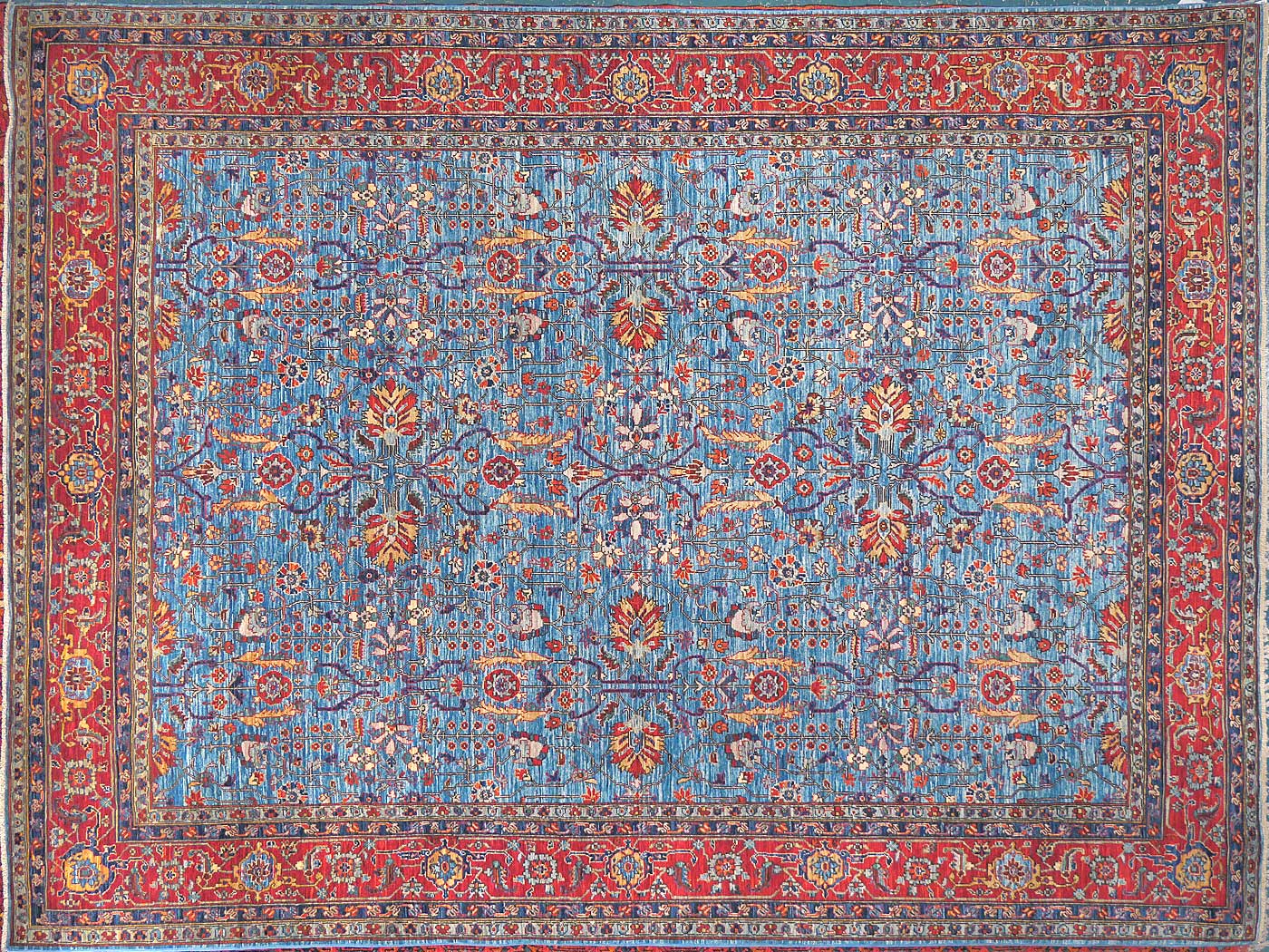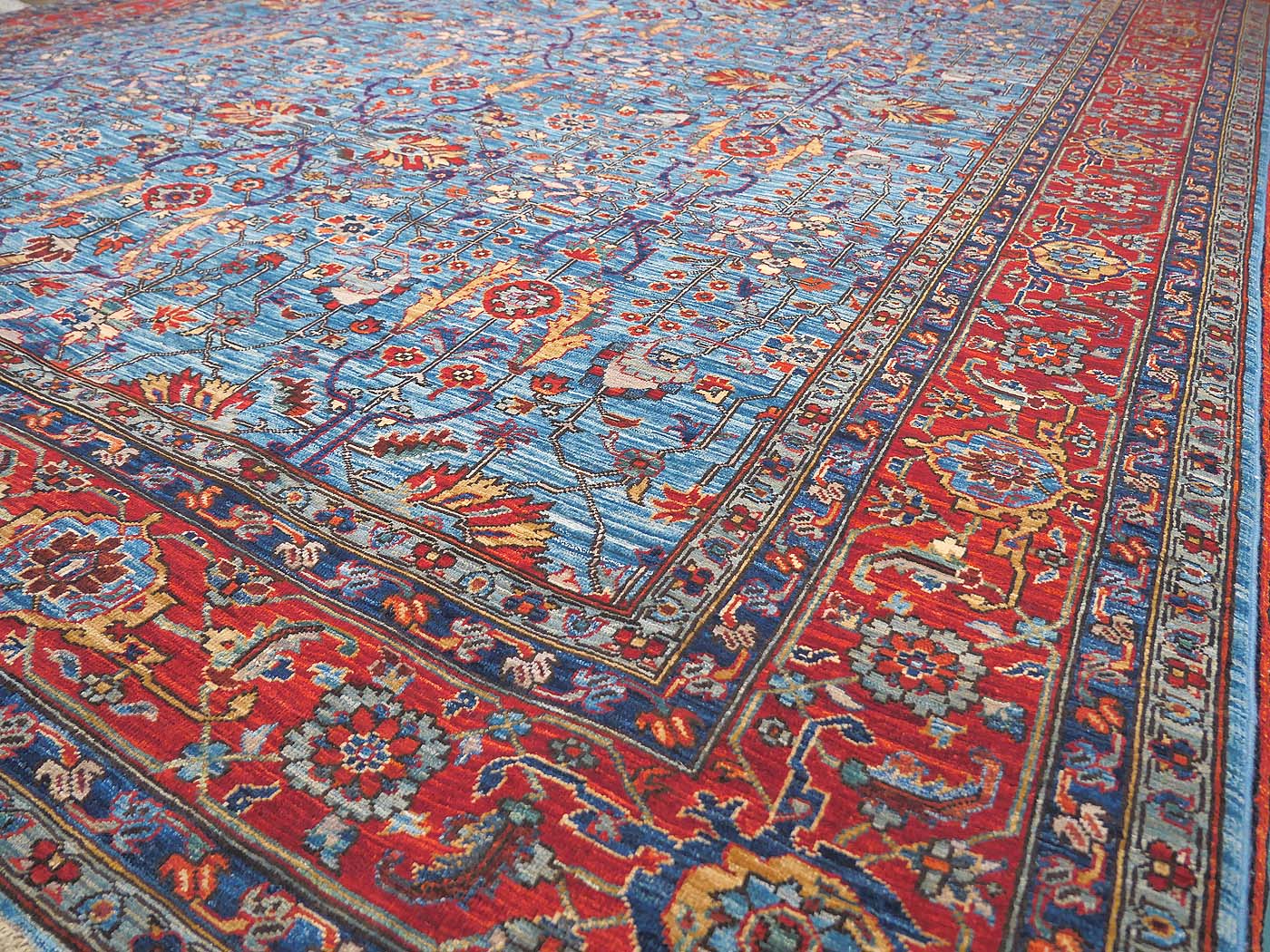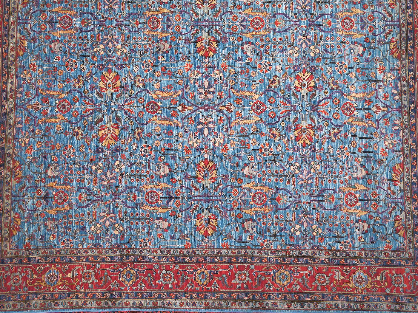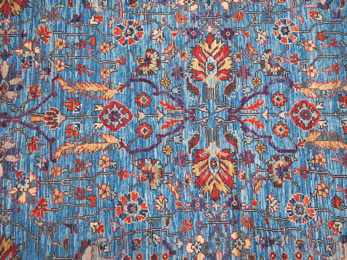 This hand knotted pile rug is made using 100% natural dyes and handspun wool; finely woven with over 160kpi. Weaving takes place in the northern areas of Afghanistan, the home of the Turkmen people. Carpet weaving is perhaps the most essential and revered cultural activity for Turkmen; something which traditionally all women take part in. The art of weaving is reverently passed on from mother to daughter with the weaving of these rugs taking place in individual family homes. A wonderful all-over Serapi motif rendered in beautiful colors. Woven in participation with Barakat; helping communities thrive by providing education in rug weaving countries. FREE Shipping and Easy Returns.