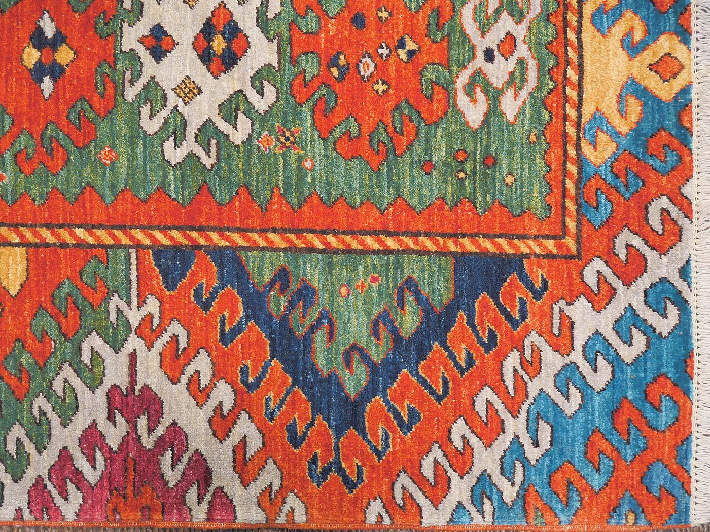 This hand knotted pile rug is made using natural dyes and handspun wool; commissioned by the Nomad Rugs design team and woven by Turquoise Mt. weavers. Thousands of women in Afghanistan are being supported in this weaving project which creates a sustainable livelihood for weaving families. Label Step ensure a comprehensive set of fair trade standards and environmentally friendly production. This rug features a Borcholo village design in rich colors and a fine 160kpsi weave. Entirely hand made. FREE Shipping and Easy Returns.