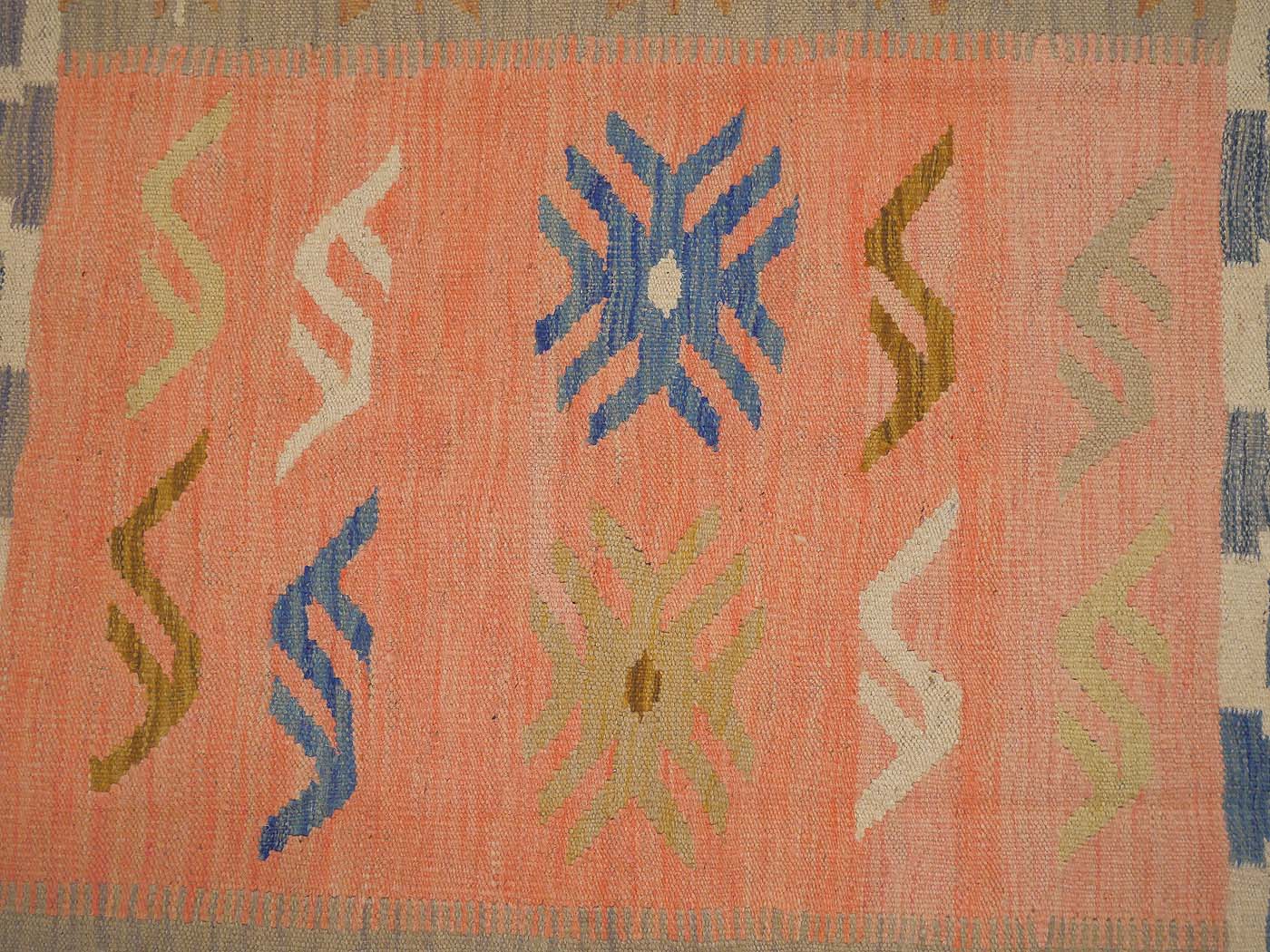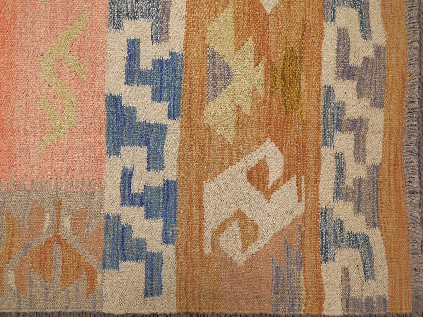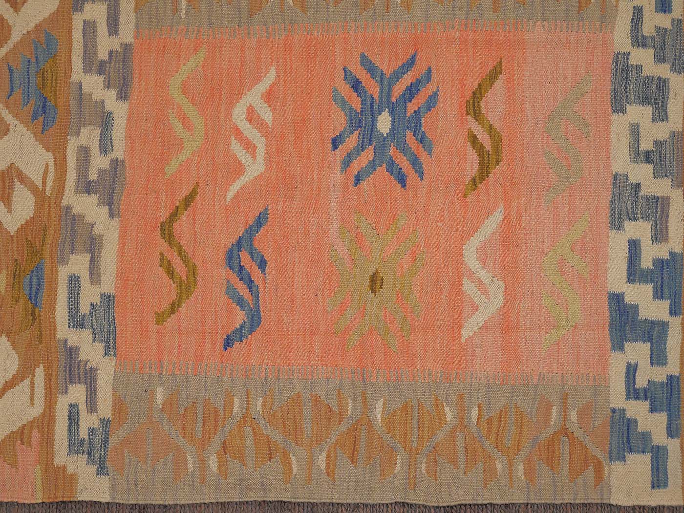 This hand made kilim rug is flat woven in a tapestry weave and made entirely of handspun Afghan wool. These wonderfully elegant rug are use soft pastel colors as well as natural variations of un-dyed wool. These are woven by Uzbek weavers in central Afghanistan near the city of Maimana. The archaic designs have changed little over the centuries. But the use of soft colors has updated these kilims for the modern home. This is a gorgeous tribal kilim entirely handwoven and crafted for years of enjoyment. FREE Shipping and Easy Returns.