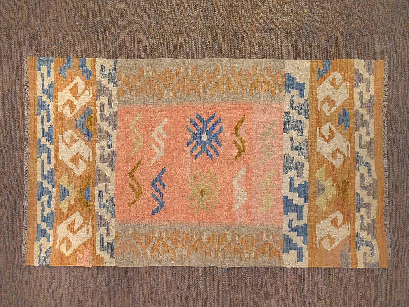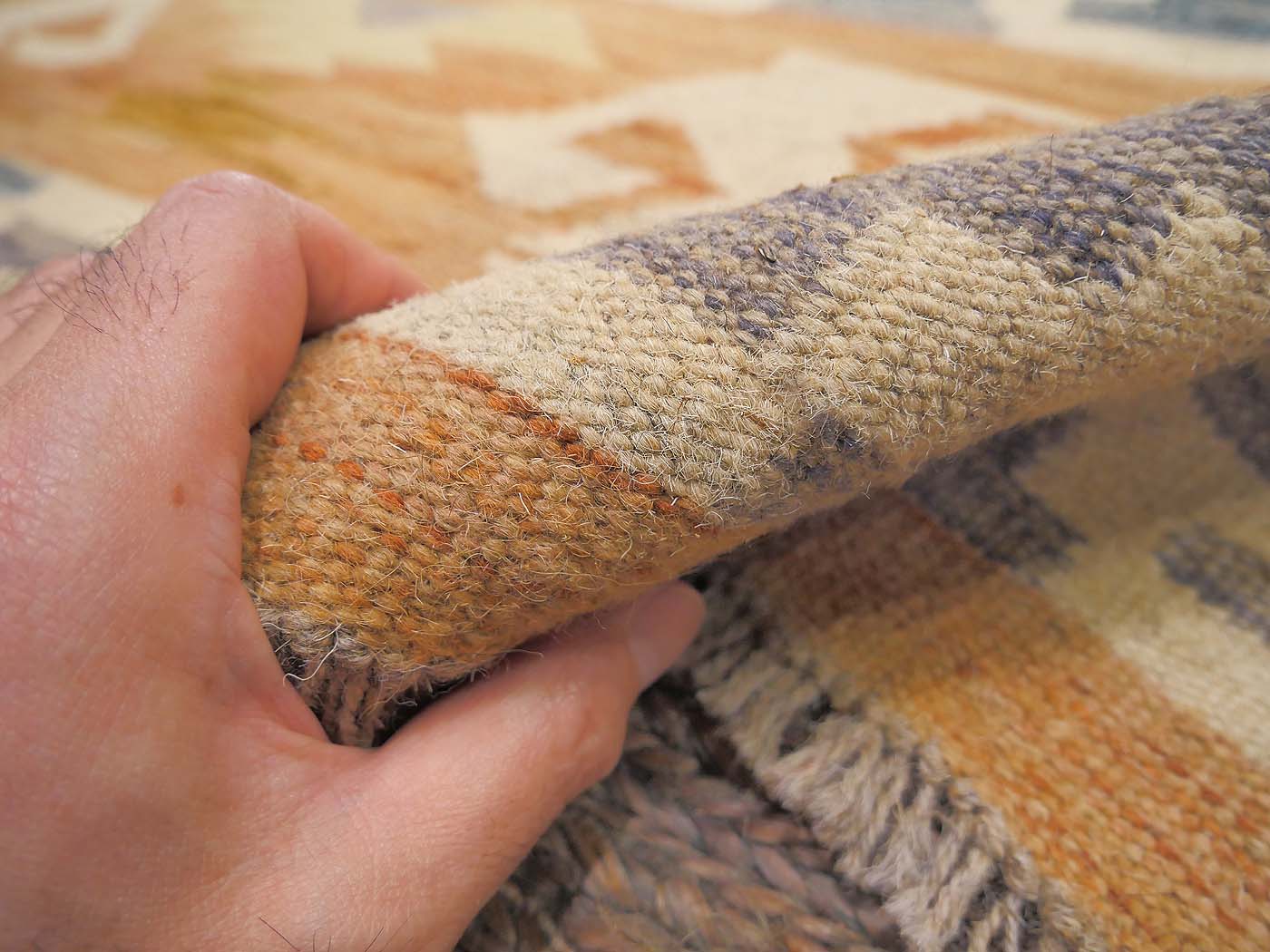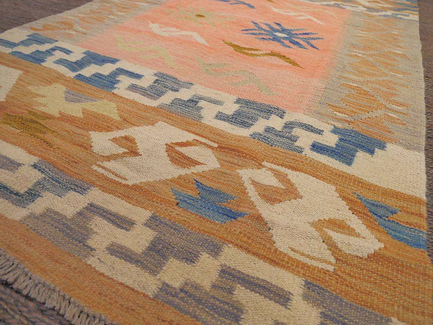 This hand made kilim rug is flat woven in a tapestry weave and made entirely of handspun Afghan wool. These wonderfully elegant rug are use soft pastel colors as well as natural variations of un-dyed wool. These are woven by Uzbek weavers in central Afghanistan near the city of Maimana. The archaic designs have changed little over the centuries. But the use of soft colors has updated these kilims for the modern home. This is a gorgeous tribal kilim entirely handwoven and crafted for years of enjoyment. FREE Shipping and Easy Returns.