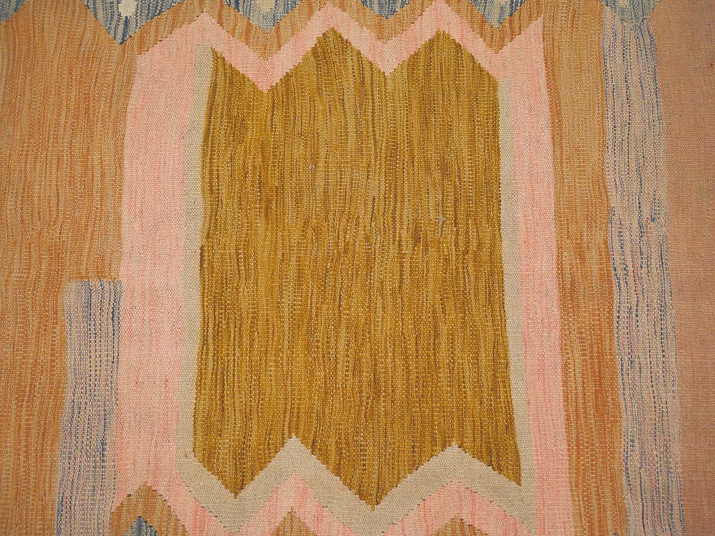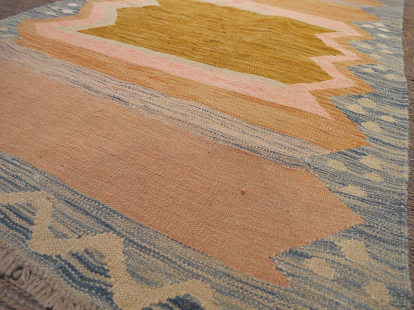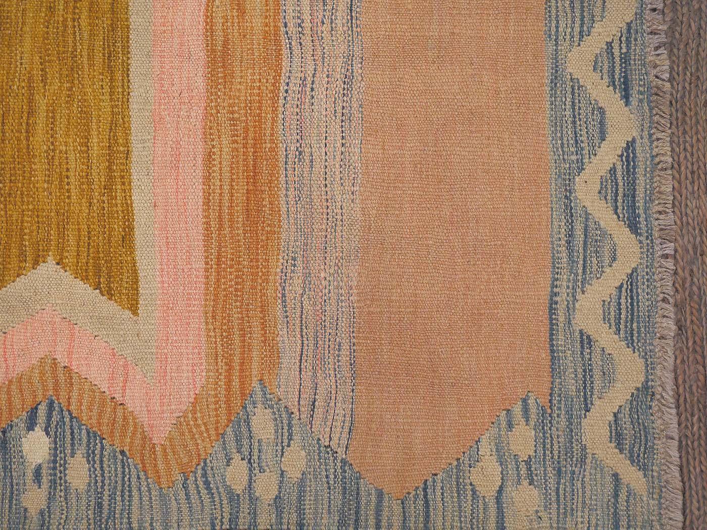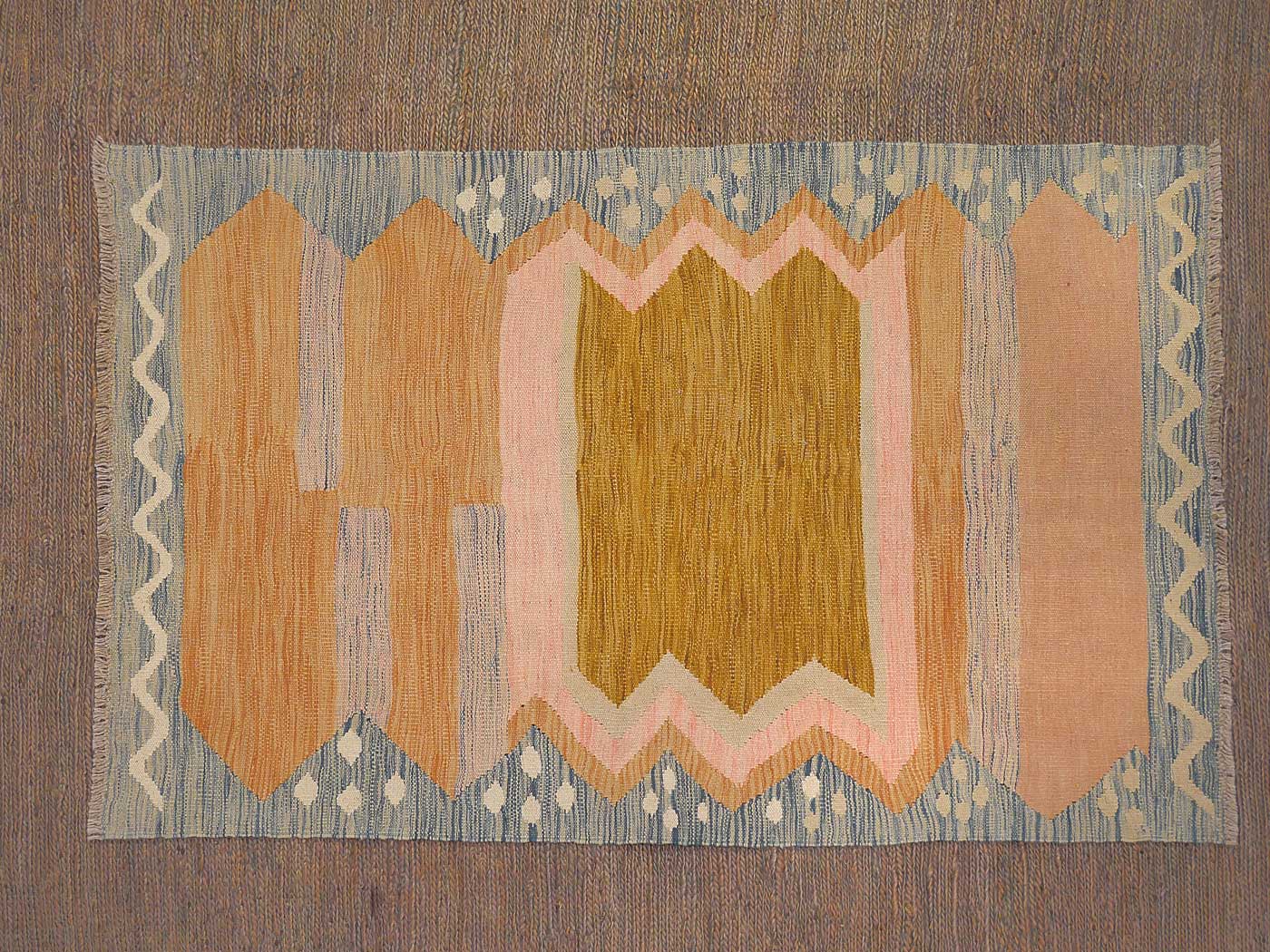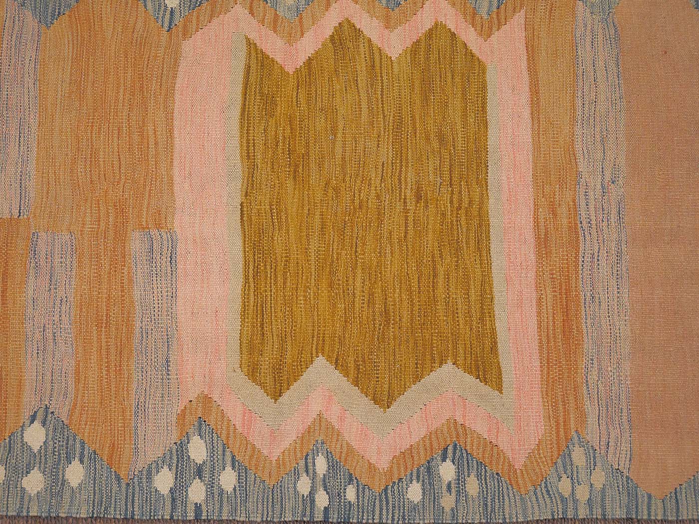 This hand made kilim rug is flat woven in a tapestry weave and made entirely of handspun Afghan wool. These wonderfully elegant rug are use soft pastel colors as well as natural variations of un-dyed wool. These are woven by Uzbek weavers in central Afghanistan near the city of Maimana. The archaic designs have changed little over the centuries. But the use of soft colors has updated these kilims for the modern home. This is a gorgeous tribal kilim entirely handwoven and crafted for years of enjoyment. FREE Shipping and Easy Returns.