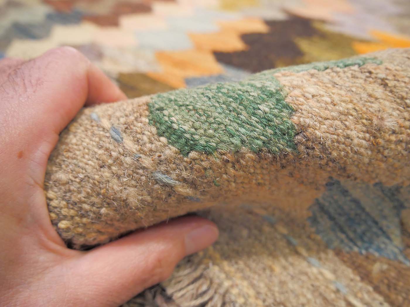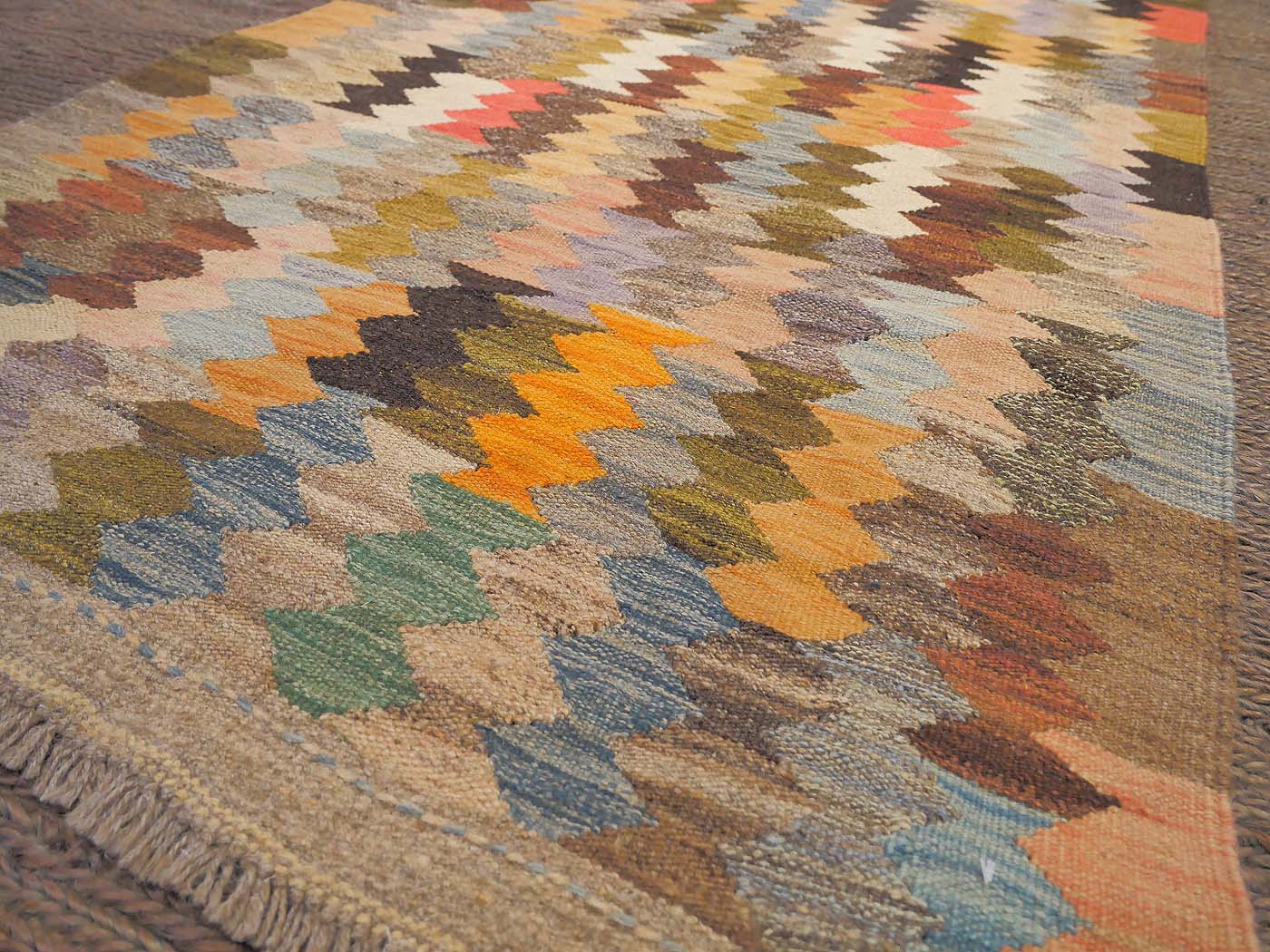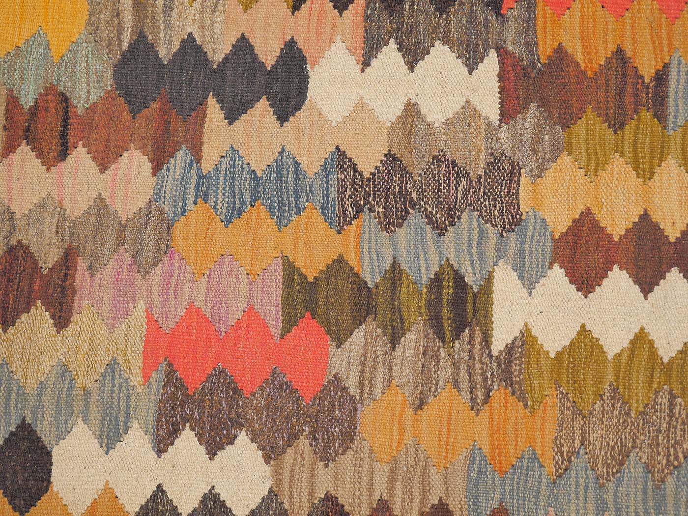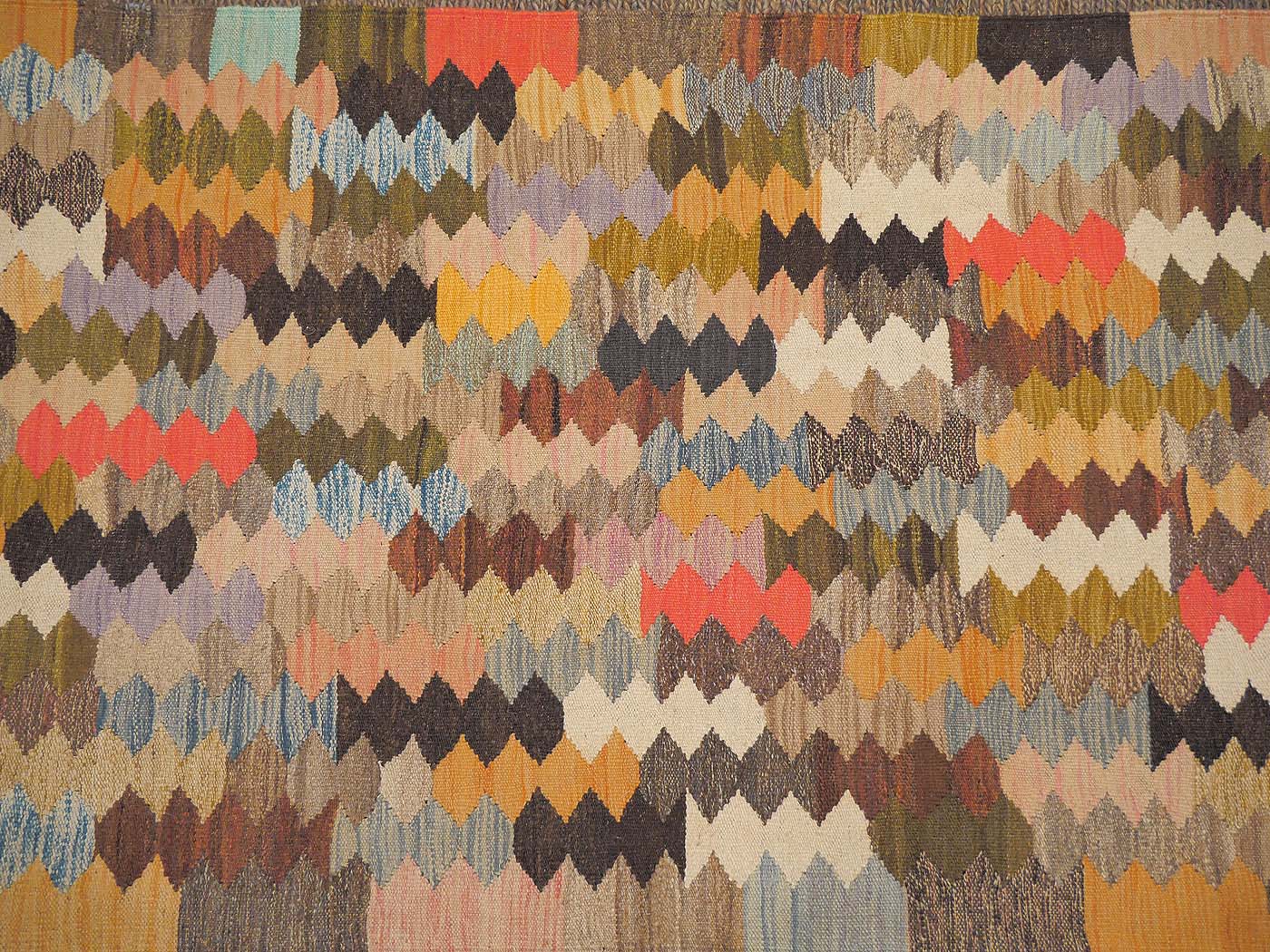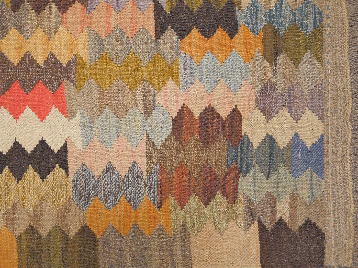 This hand made kilim rug is flat woven in a tapestry weave and made entirely of handspun Afghan wool. These wonderfully elegant rug are use soft pastel colors as well as natural variations of un-dyed wool. These are woven by Uzbek weavers in central Afghanistan near the city of Maimana. The archaic designs have changed little over the centuries. But the use of soft colors has updated these kilims for the modern home. This is a gorgeous tribal kilim entirely handwoven and crafted for years of enjoyment. FREE Shipping and Easy Returns.