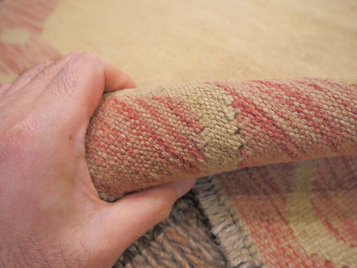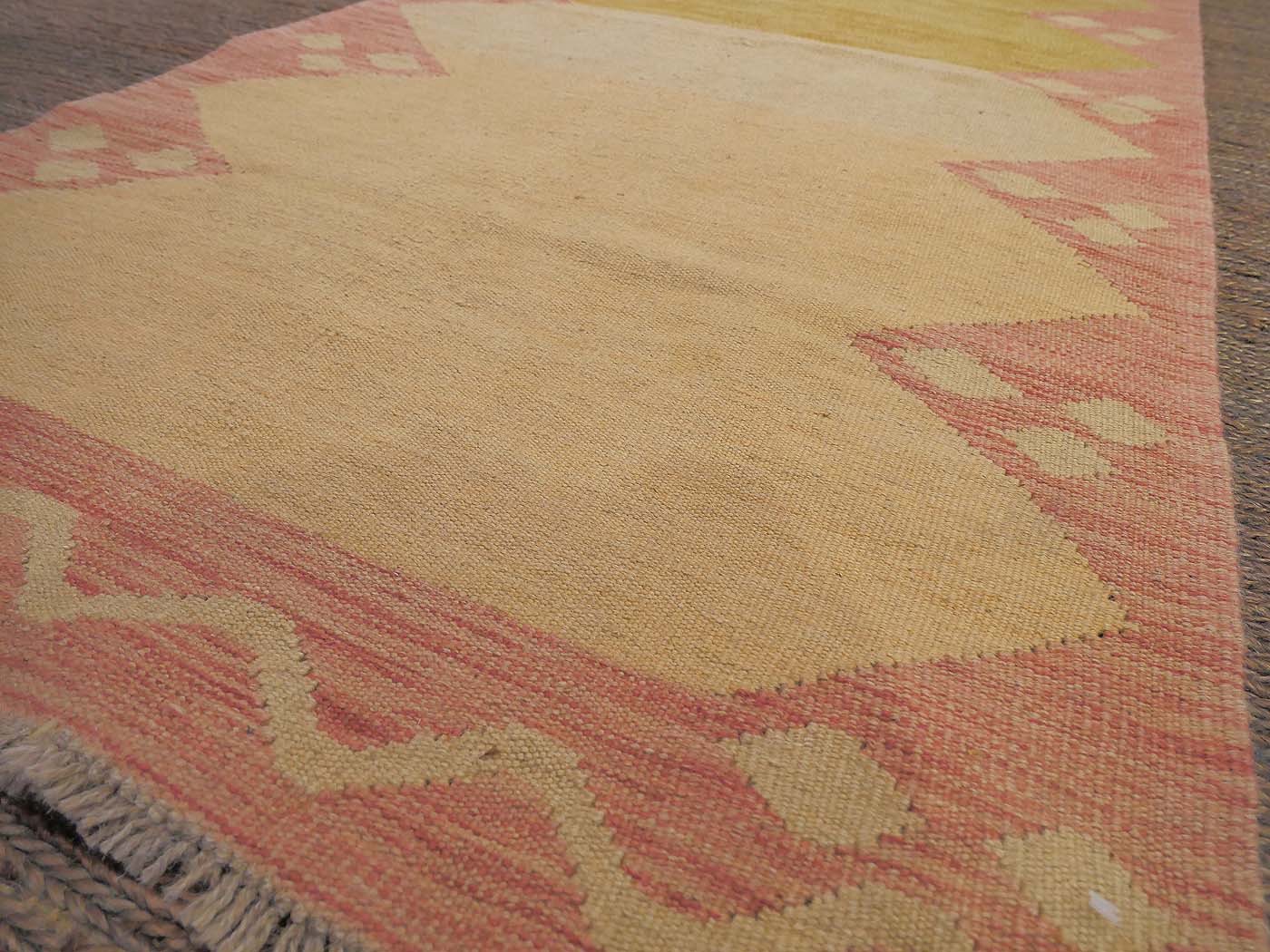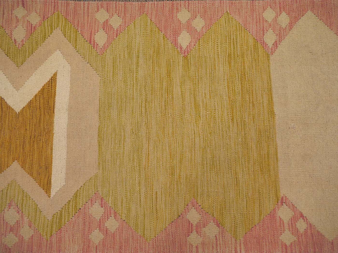 This hand made kilim rug is flat woven in a tapestry weave and made entirely of handspun Afghan wool. These wonderfully elegant rug are use soft pastel colors as well as natural variations of un-dyed wool. These are woven by Uzbek weavers in central Afghanistan near the city of Maimana. The archaic designs have changed little over the centuries. But the use of soft colors has updated these kilims for the modern home. This is a gorgeous tribal kilim entirely handwoven and crafted for years of enjoyment. FREE Shipping and Easy Returns.