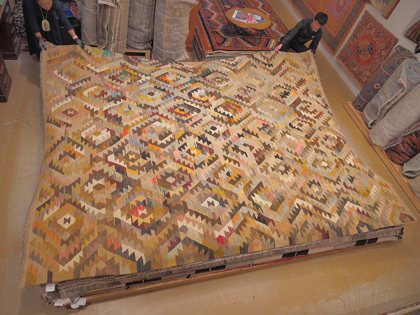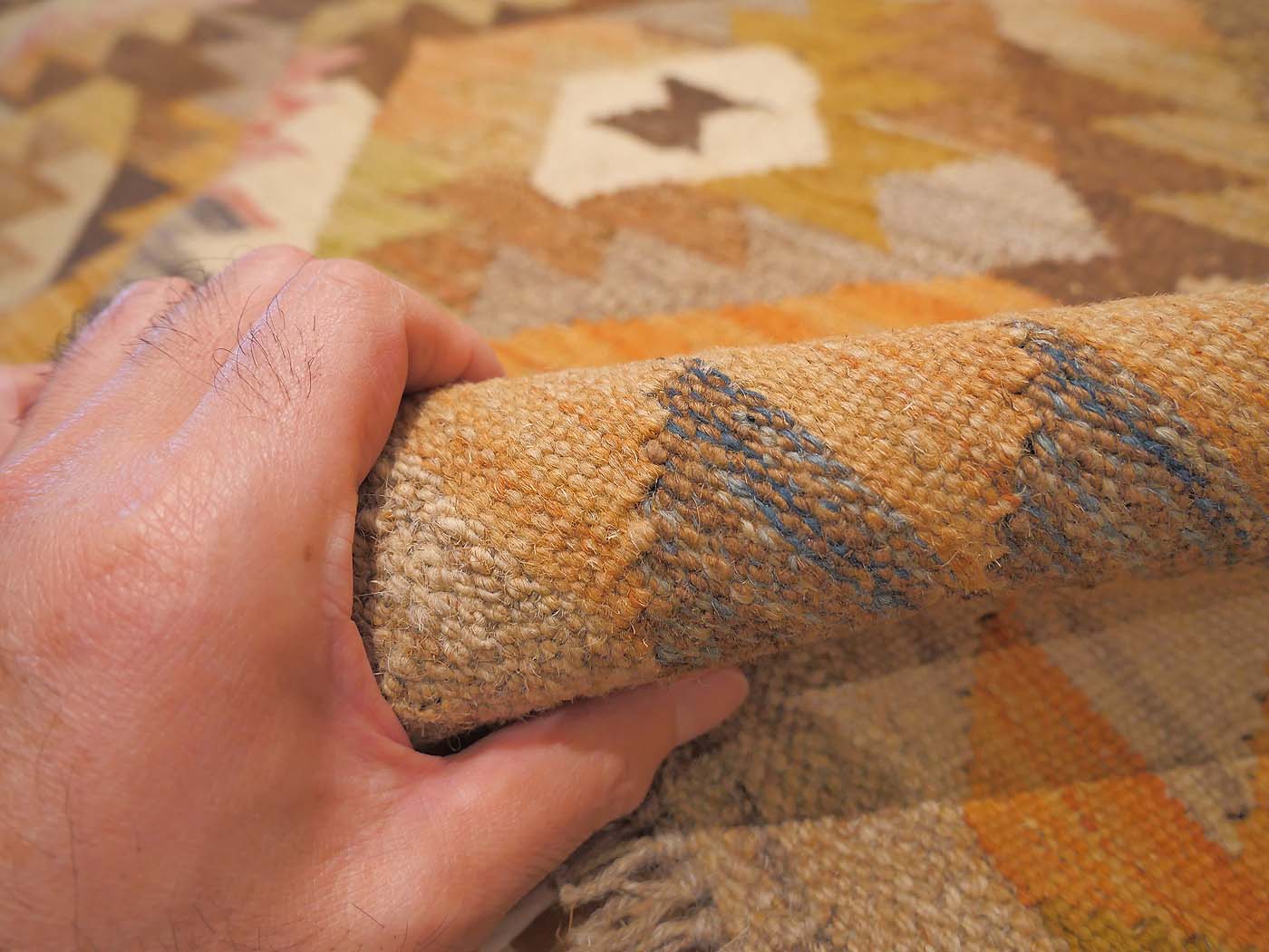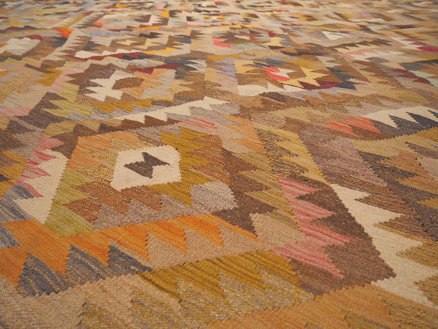 This hand made kilim rug is flat woven in a tapestry weave and made entirely of handspun Afghan wool. These wonderfully elegant rug are use soft pastel colors as well as natural variations of un-dyed wool. These are woven by Uzbek weavers in central Afghanistan near the city of Maimana. The archaic designs have changed little over the centuries. But the use of soft colors has updated these kilims for the modern home. This is a gorgeous tribal kilim entirely handwoven and crafted for years of enjoyment. FREE Shipping and Easy Returns.
