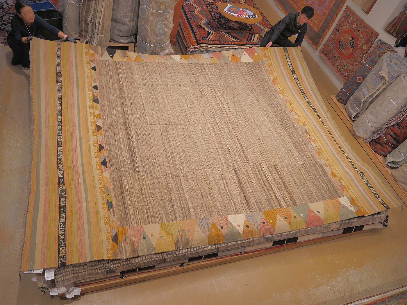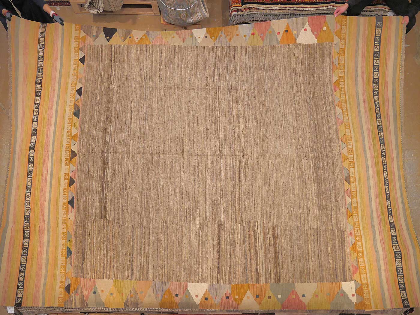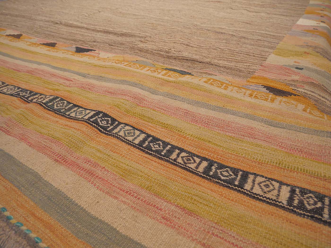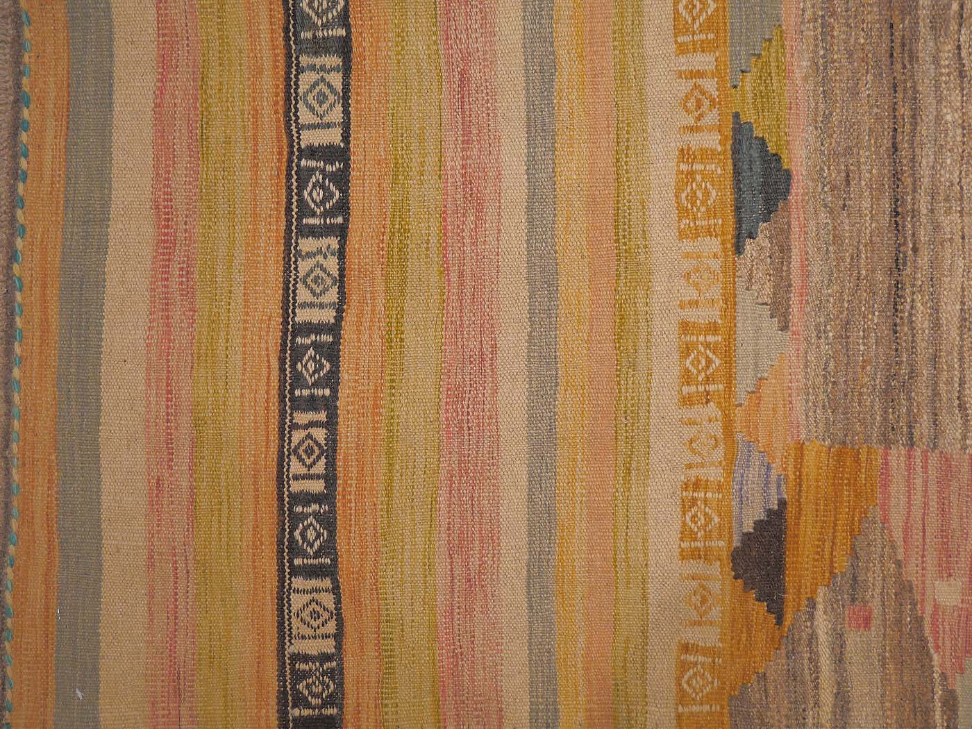 This hand made kilim rug is flat woven in a tapestry weave and made entirely of handspun Afghan wool. These wonderfully elegant rug are use soft pastel colors as well as natural variations of un-dyed wool. These are woven by Uzbek weavers in central Afghanistan near the city of Maimana. The archaic designs have changed little over the centuries. But the use of soft colors has updated these kilims for the modern home. This is a gorgeous tribal kilim entirely handwoven and crafted for years of enjoyment. FREE Shipping and Easy Returns.