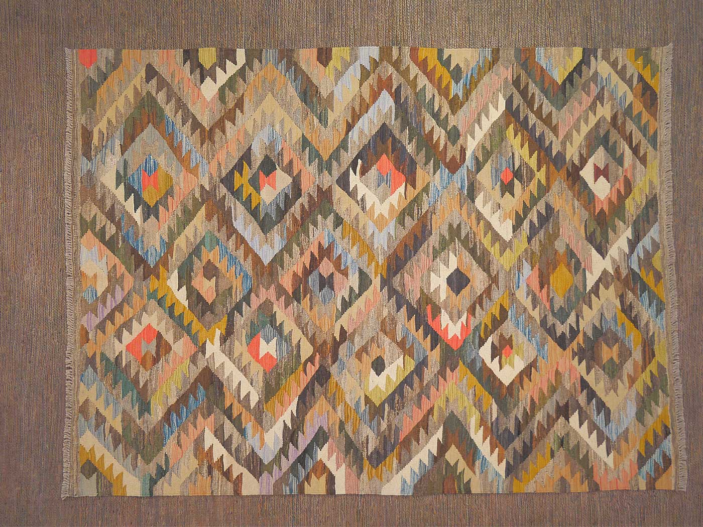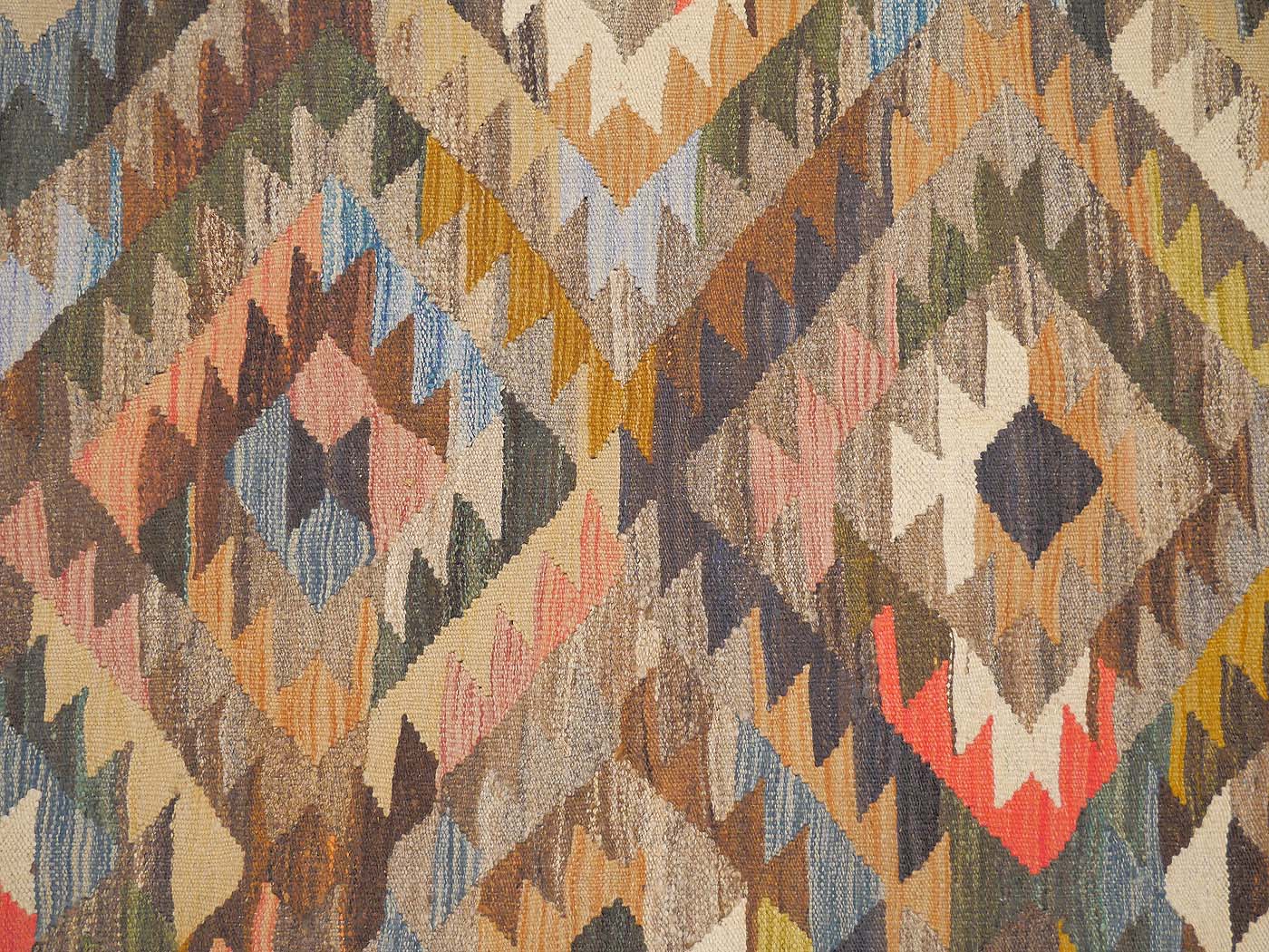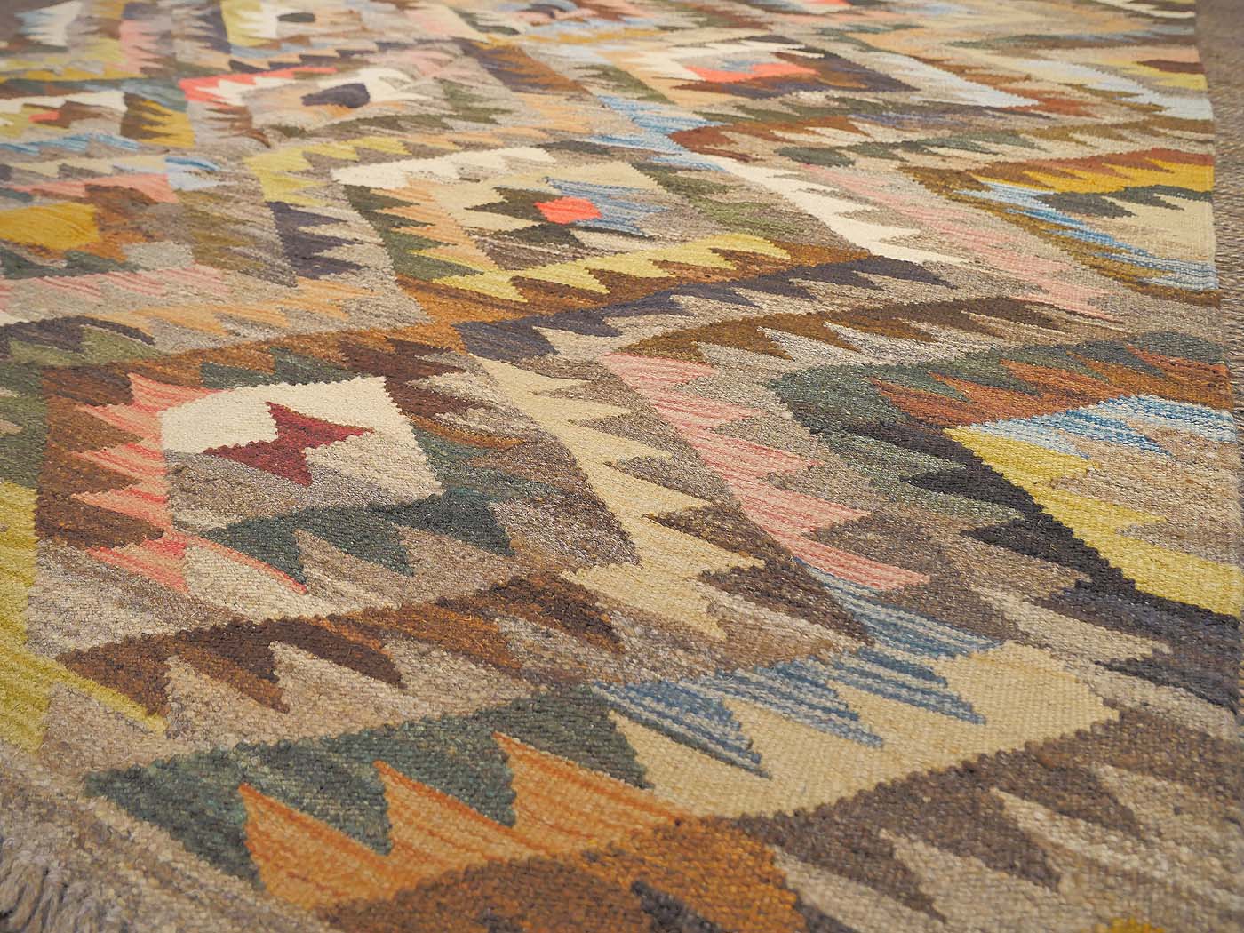 This hand made kilim rug is flat woven in a tapestry weave and made entirely of handspun Afghan wool. These wonderfully elegant rug are use soft pastel colors as well as natural variations of un-dyed wool. These are woven by Uzbek weavers in central Afghanistan near the city of Maimana. The archaic designs have changed little over the centuries. But the use of soft colors has updated these kilims for the modern home. This is a gorgeous tribal kilim entirely handwoven and crafted for years of enjoyment. FREE Shipping and Easy Returns.