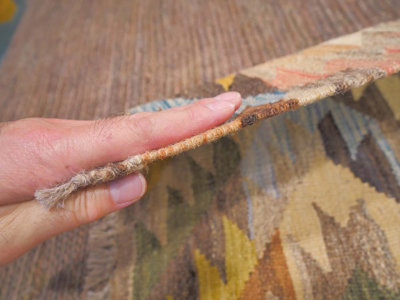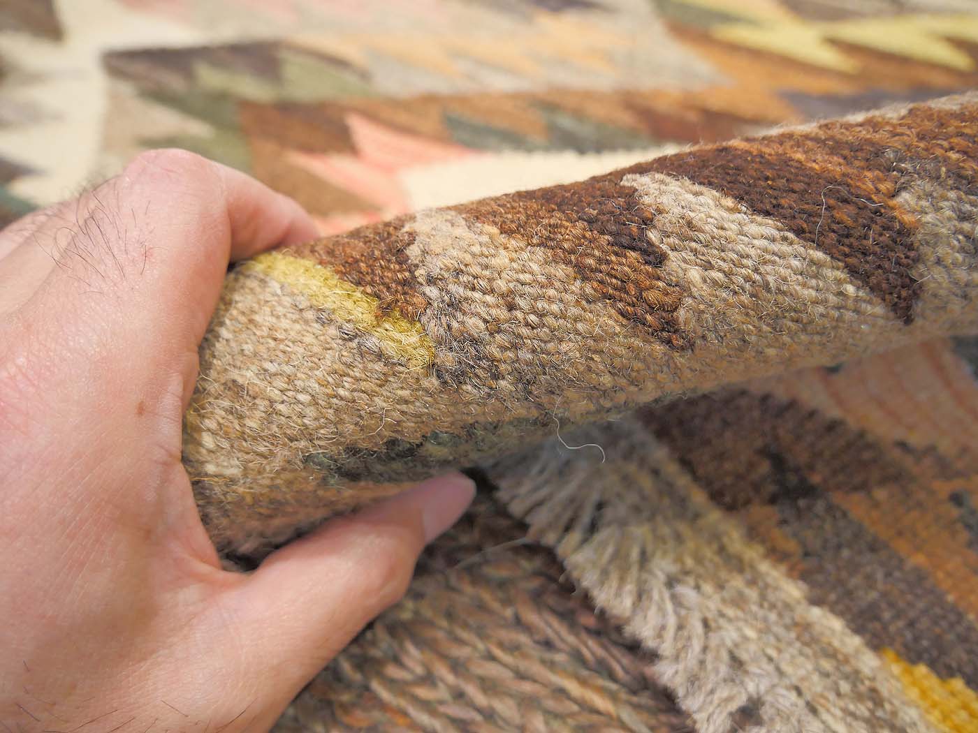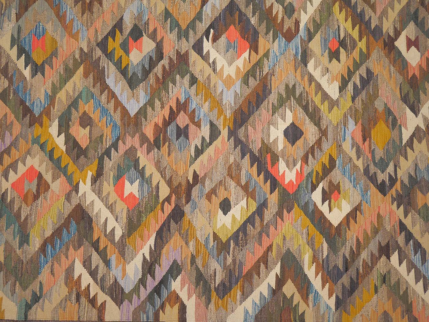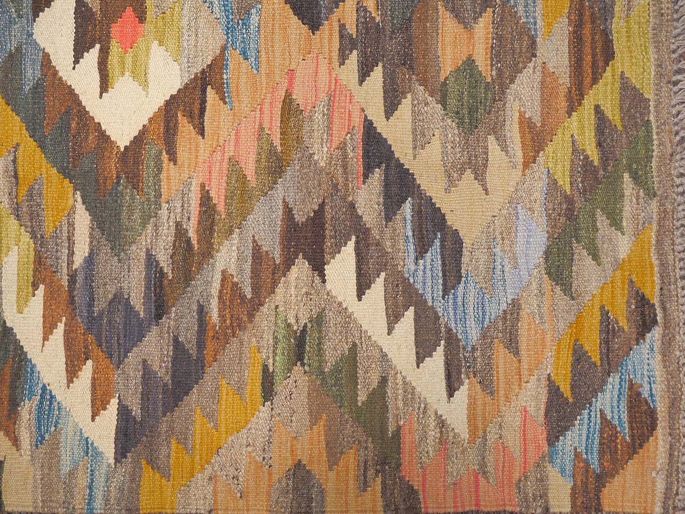 This hand made kilim rug is flat woven in a tapestry weave and made entirely of handspun Afghan wool. These wonderfully elegant rug are use soft pastel colors as well as natural variations of un-dyed wool. These are woven by Uzbek weavers in central Afghanistan near the city of Maimana. The archaic designs have changed little over the centuries. But the use of soft colors has updated these kilims for the modern home. This is a gorgeous tribal kilim entirely handwoven and crafted for years of enjoyment. FREE Shipping and Easy Returns.
