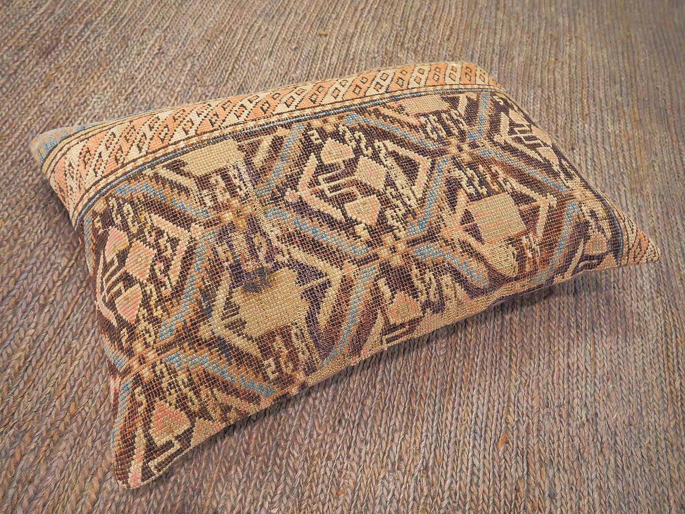 11″x20″ This beautiful pillow if made from a vintage fragment of a Caucasian rug. It is firmly stuffed with a custom pillow insert and has a sturdy cloth backing with a zipper to remove the pillow insert for easy cleaning. FREE Shipping and Easy Returns.