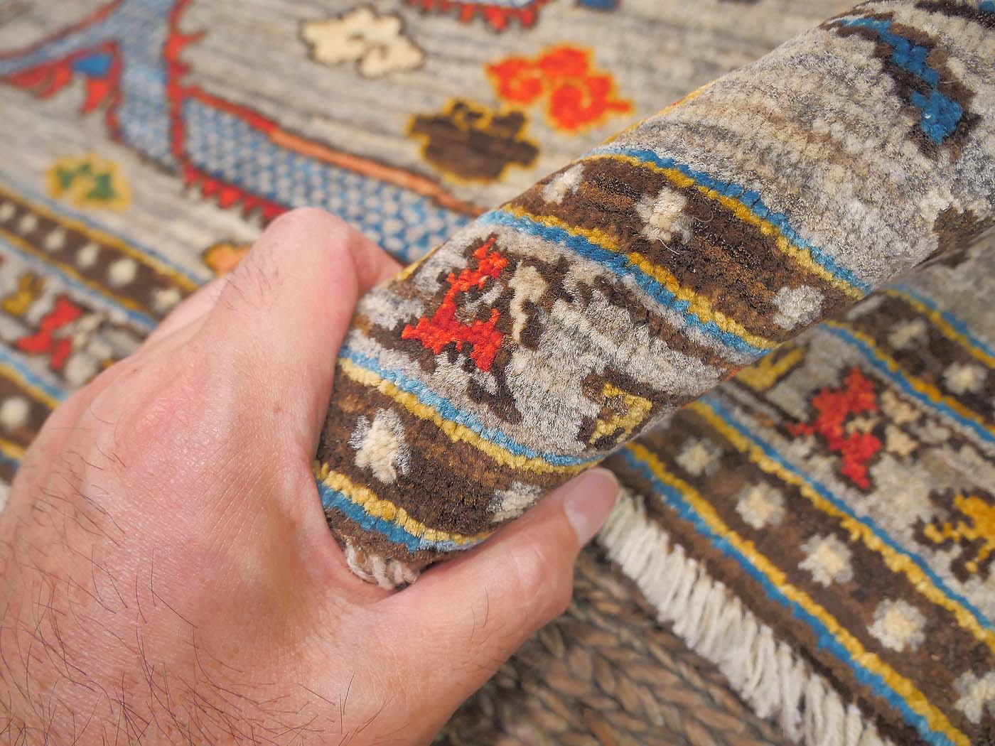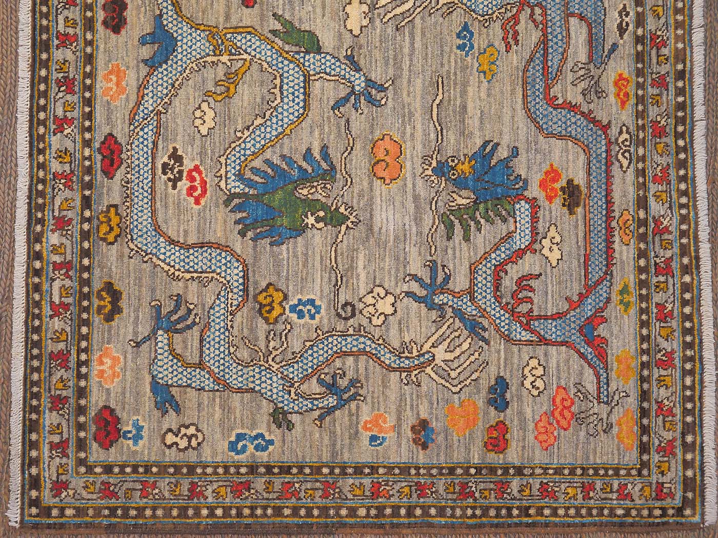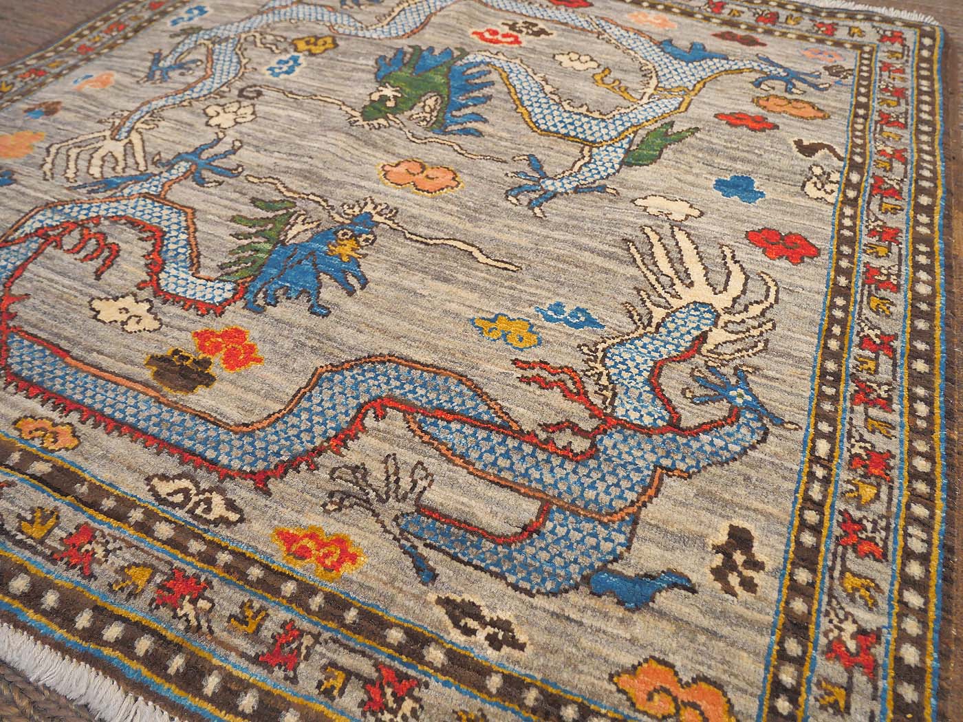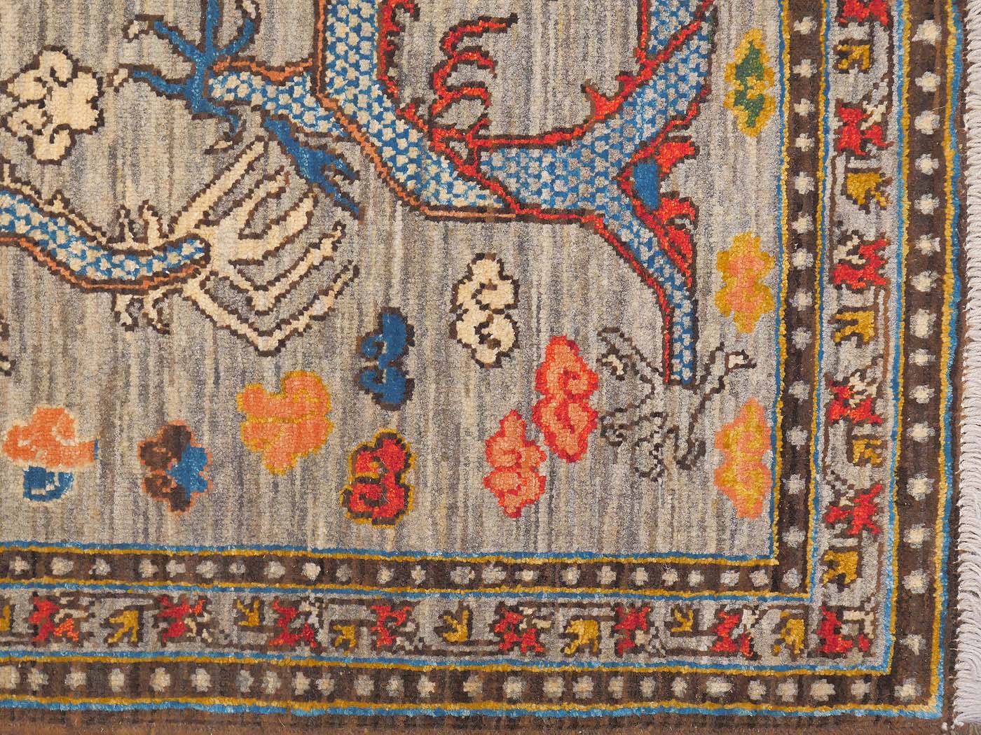 This hand knotted pile rug is made using natural dyes and handspun wool; commissioned by the Nomad Rugs design team and woven by Turquoise Mt. weavers. Thousands of women in Afghanistan are being supported in this weaving project which creates a sustainable livelihood for weaving families. Label Step ensure a comprehensive set of fair trade standards and environmentally friendly production. This rug features circling dragons in rich colors and a fine 130kpsi weave. Entirely hand made. FREE Shipping and Easy Returns.