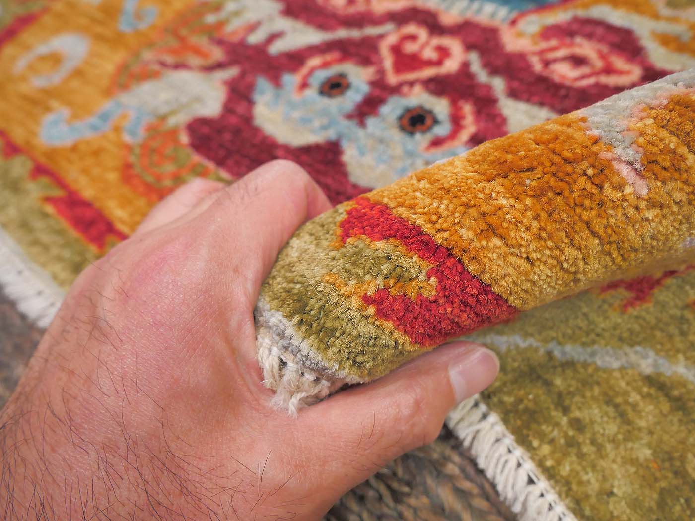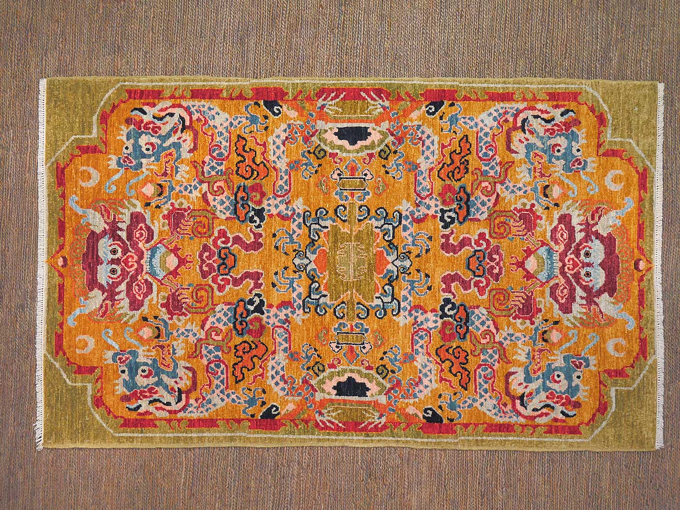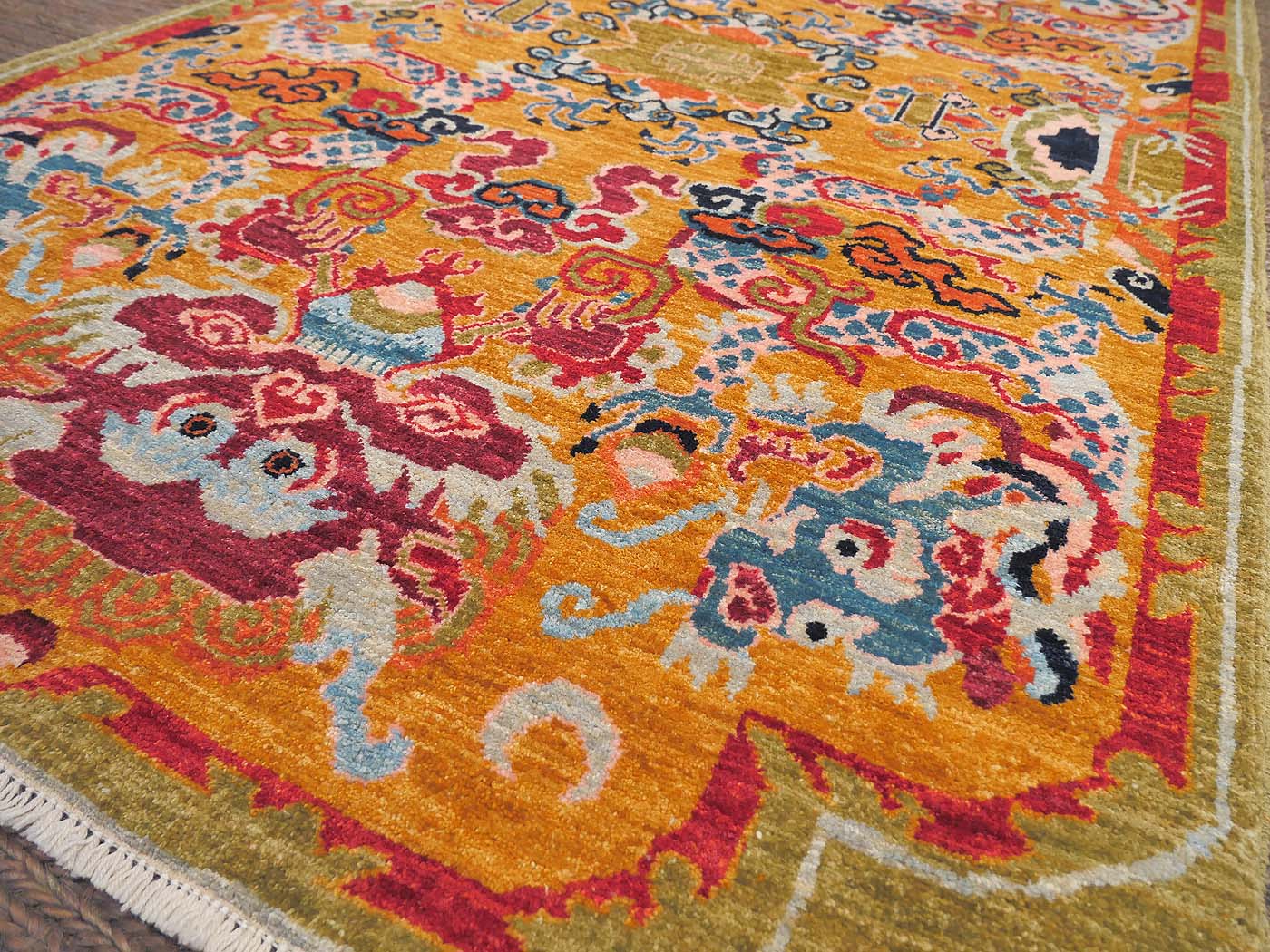 This hand knotted pile rug is made using natural dyes and handspun wool; commissioned by the Nomad Rugs design team and woven by Turquoise Mt. weavers. Thousands of women in Afghanistan are being supported in this weaving project which creates a sustainable livelihood for weaving families. Label Step ensure a comprehensive set of fair trade standards and environmentally friendly production. This rug features a book-matched Tibetan saddle design in rich colors and a fine 140kpsi weave. Entirely hand made. FREE Shipping and Easy Returns.