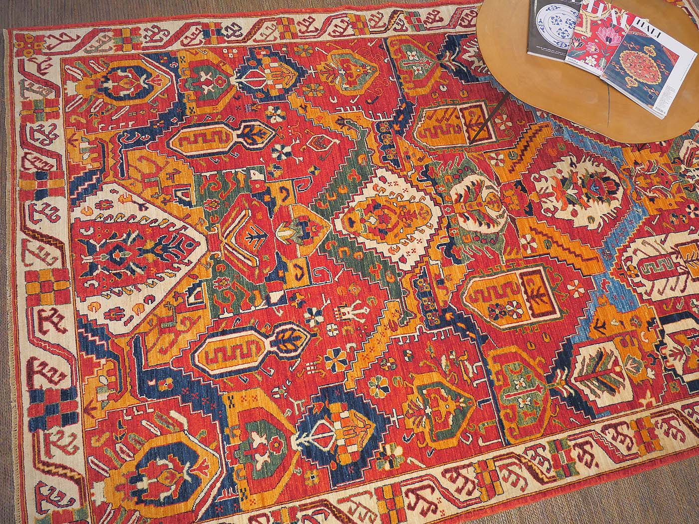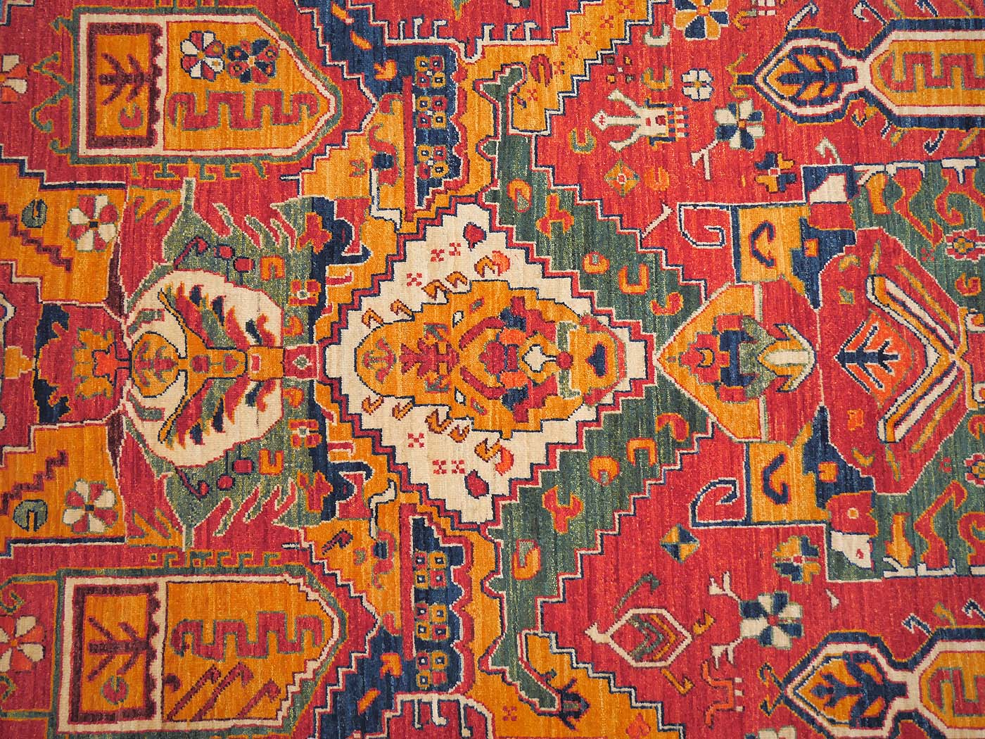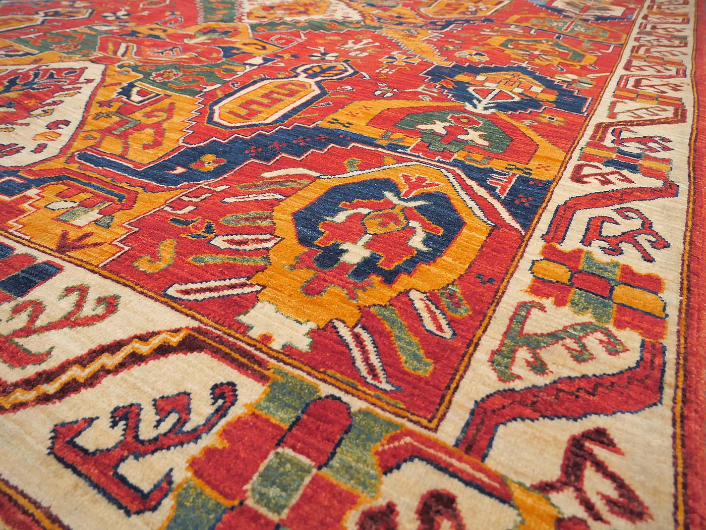 Hand knotted pile rug made using 100% natural dyes and handspun wool and a finer 130kpsi weave. This bespoke rug was woven exclusively for Nomad Rugs based on an 18th Caucuses dragon design. Weaving takes place in the northern areas of Afghanistan, the home of the Turkmen people. Carpet weaving is perhaps the most essential and revered cultural activity for Turkmen; something which traditionally all women take part in. The art of weaving is reverently passed on from mother to daughter with the weaving of these rugs taking place in individual family homes. FREE Shipping and Easy Returns.