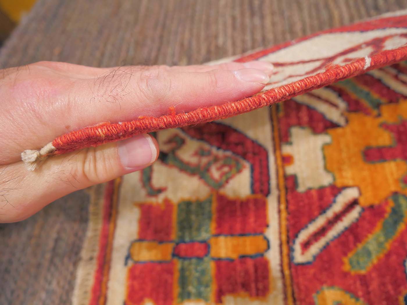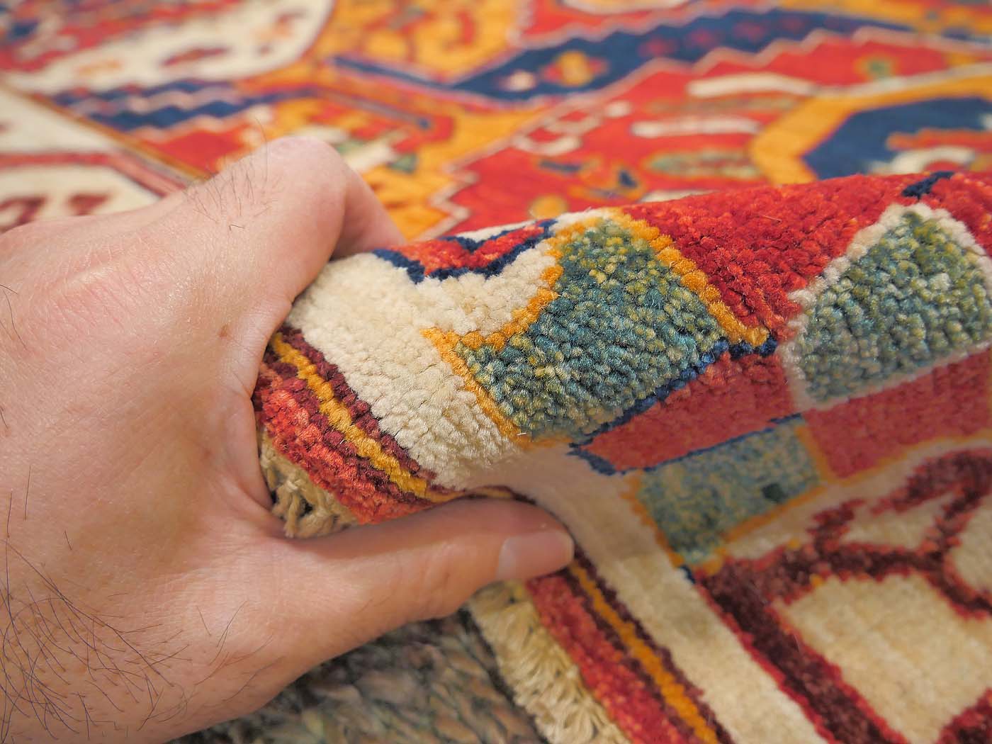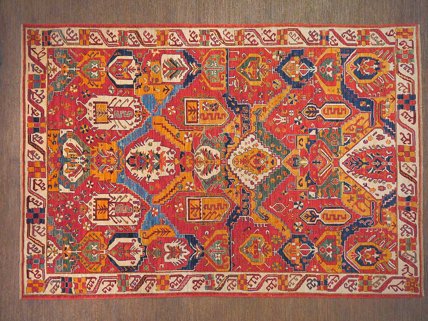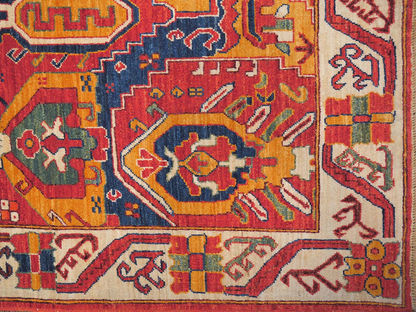 Hand knotted pile rug made using 100% natural dyes and handspun wool and a finer 130kpsi weave. This bespoke rug was woven exclusively for Nomad Rugs based on an 18th Caucuses dragon design. Weaving takes place in the northern areas of Afghanistan, the home of the Turkmen people. Carpet weaving is perhaps the most essential and revered cultural activity for Turkmen; something which traditionally all women take part in. The art of weaving is reverently passed on from mother to daughter with the weaving of these rugs taking place in individual family homes. FREE Shipping and Easy Returns.