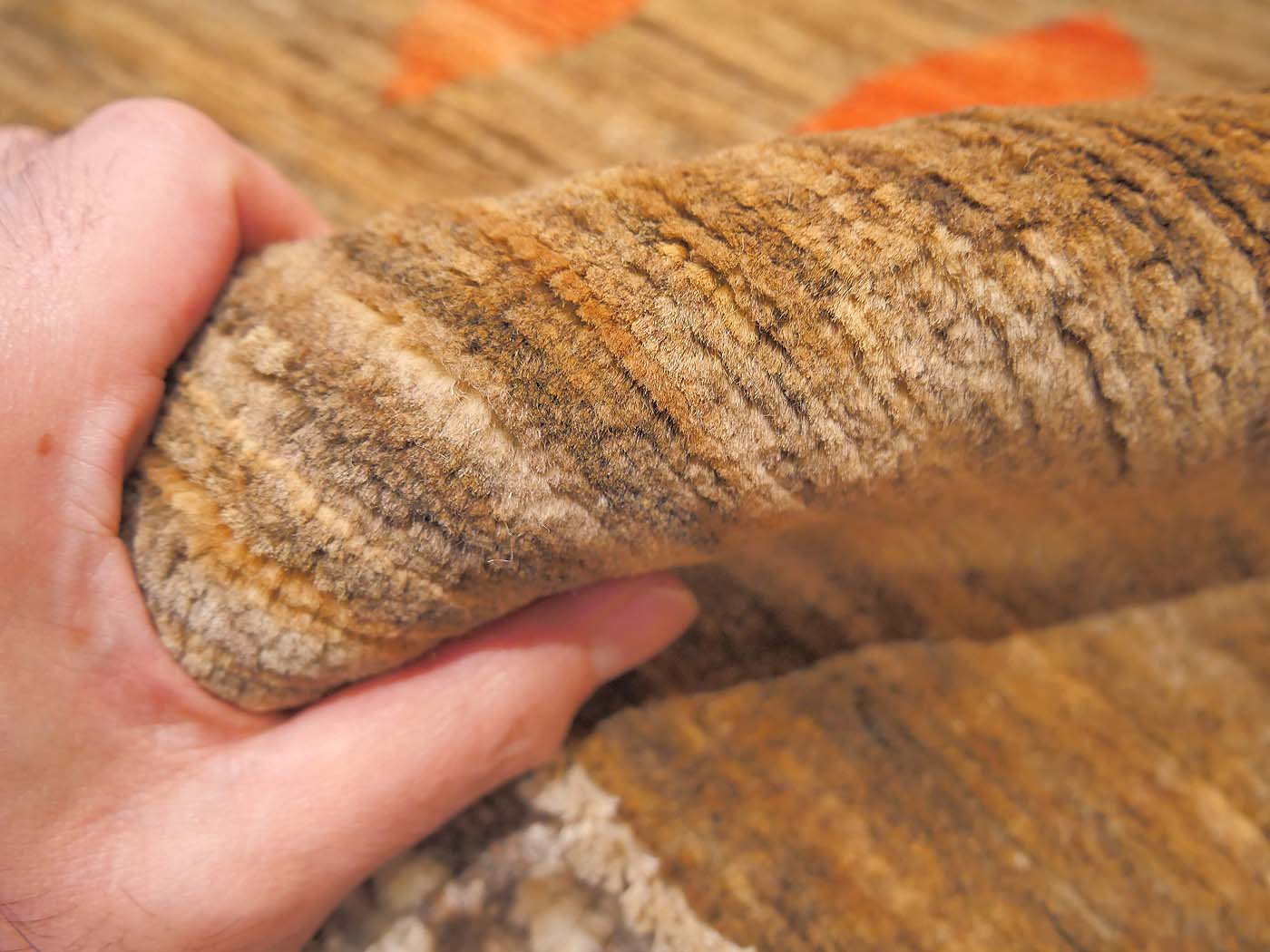 Hand knotted pile rug made using natural dyes and handspun wool and around 100kpsi. This rug was designed by the Nomad Rugs team and woven on special commission for us by master weavers in Northern Afghanistan. This beautiful bespoke rug has a subtle and pleasing minimalist design, silky wool and great color; and the wonderful texture and strength of Afghan Ghazni wool. FREE Shipping and Easy Returns.