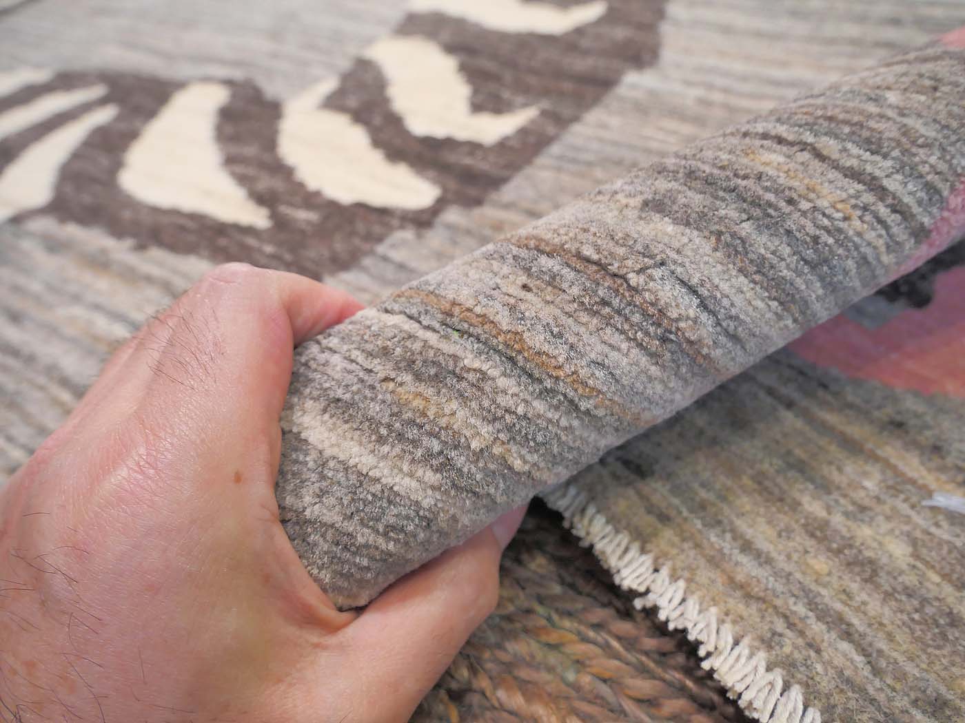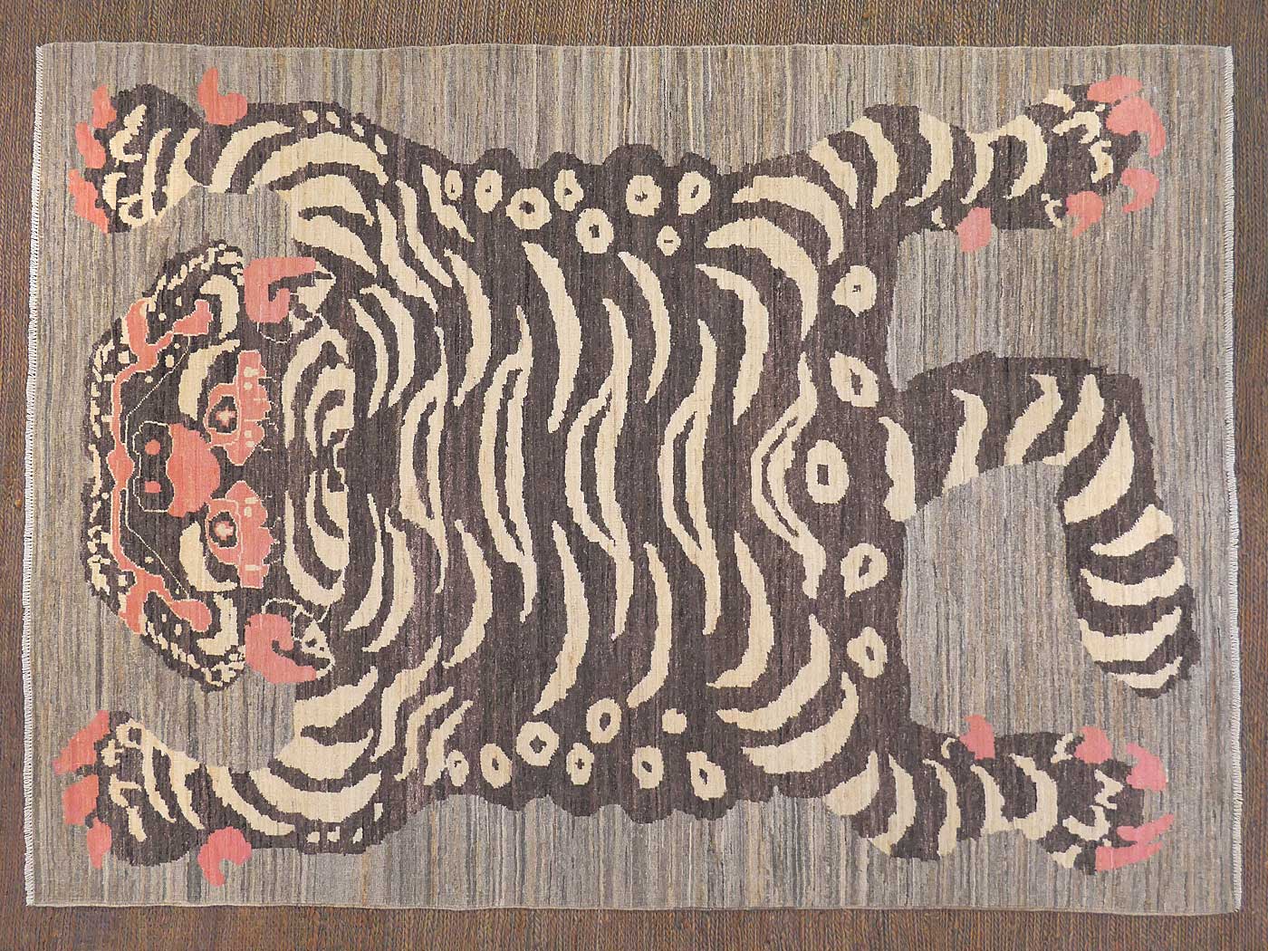 This hand knotted pile rug is made using natural dyes and handspun wool; commissioned by the Nomad Rugs design team and woven by Turquoise Mt. weavers. Thousands of women in Afghanistan are being supported in this weaving project which creates a sustainable livelihood for weaving families. Label Step ensure a comprehensive set of fair trade standards and environmentally friendly production. This rug features a lovely Tibetan Tiger design in neutral colors with a splash of pink and a very fine 140kpsi weave. Entirely hand made. FREE Shipping and Easy Returns.