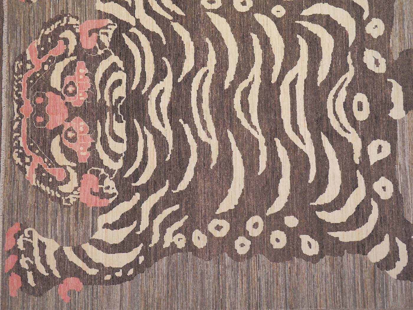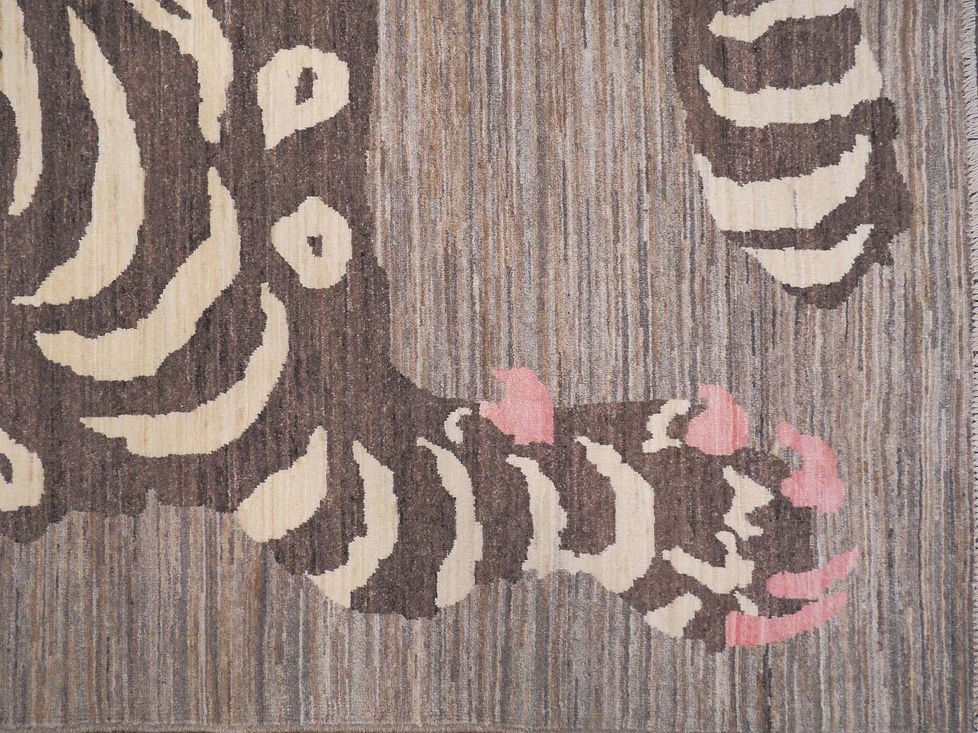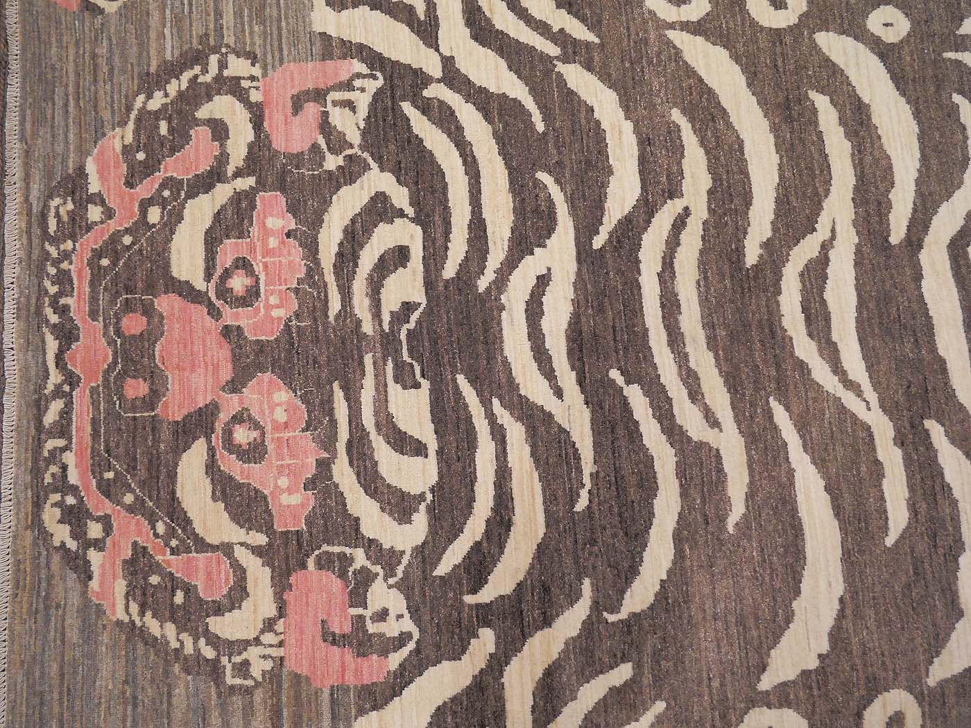 This hand knotted pile rug is made using natural dyes and handspun wool; commissioned by the Nomad Rugs design team and woven by Turquoise Mt. weavers. Thousands of women in Afghanistan are being supported in this weaving project which creates a sustainable livelihood for weaving families. Label Step ensure a comprehensive set of fair trade standards and environmentally friendly production. This rug features a lovely Tibetan Tiger design in neutral colors with a splash of pink and a very fine 140kpsi weave. Entirely hand made. FREE Shipping and Easy Returns.