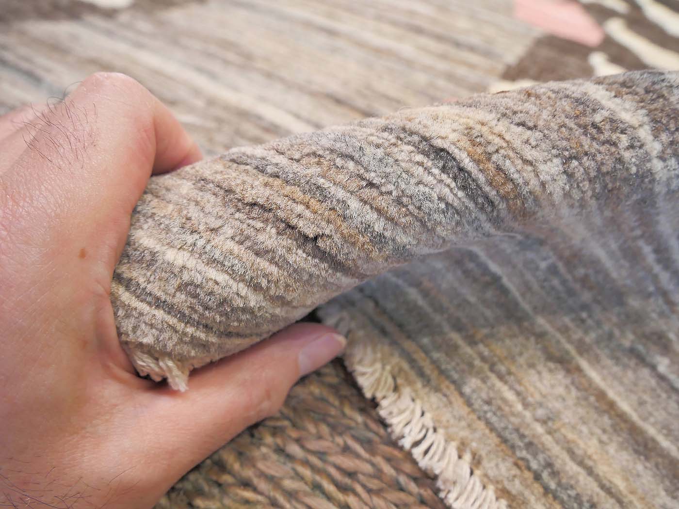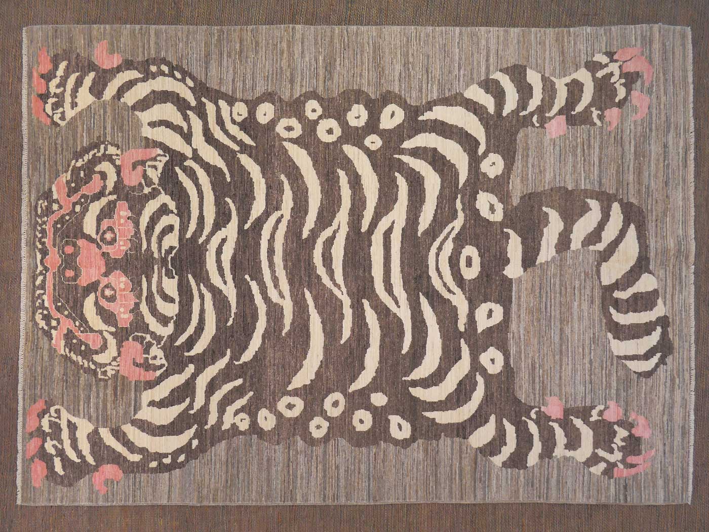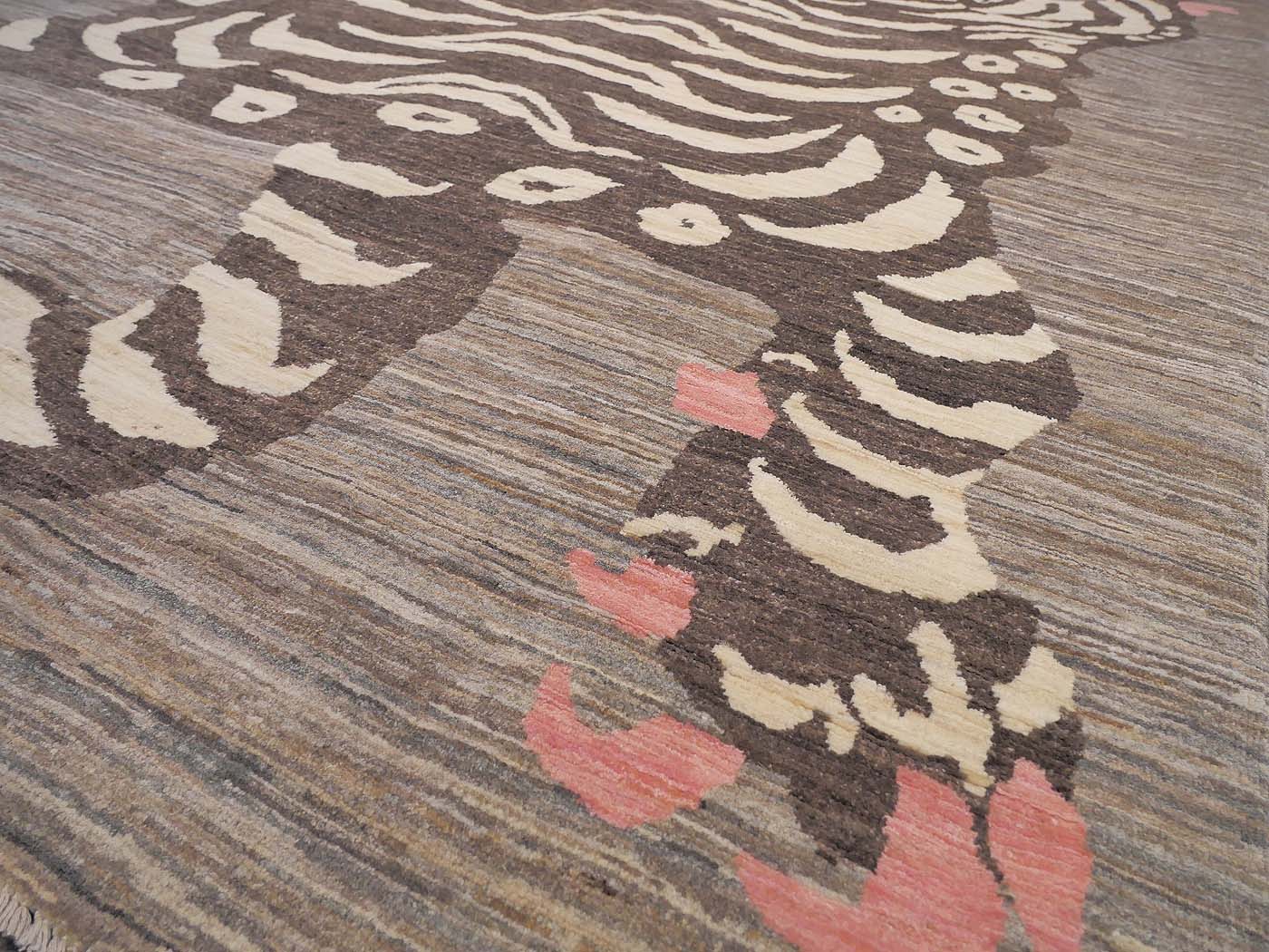 This hand knotted pile rug is made using natural dyes and handspun wool; commissioned by the Nomad Rugs design team and woven by Turquoise Mt. weavers. Thousands of women in Afghanistan are being supported in this weaving project which creates a sustainable livelihood for weaving families. Label Step ensure a comprehensive set of fair trade standards and environmentally friendly production. This rug features a lovely Tibetan Tiger design in neutral colors with a splash of pink and a very fine 140kpsi weave. Entirely hand made. FREE Shipping and Easy Returns.