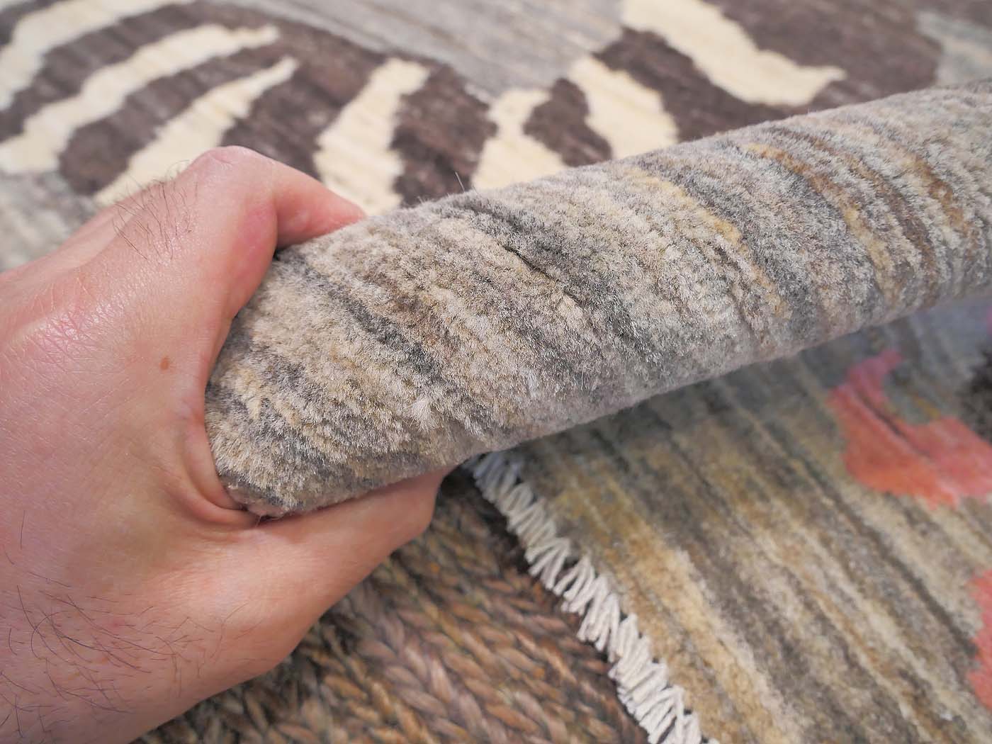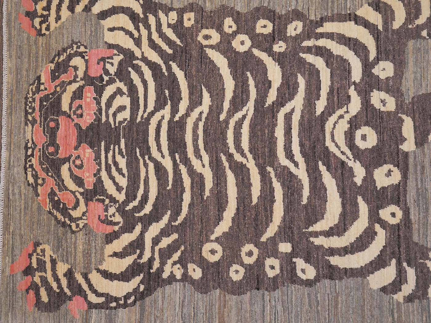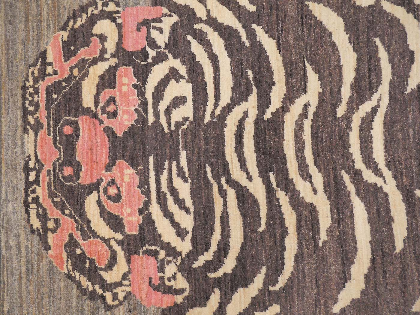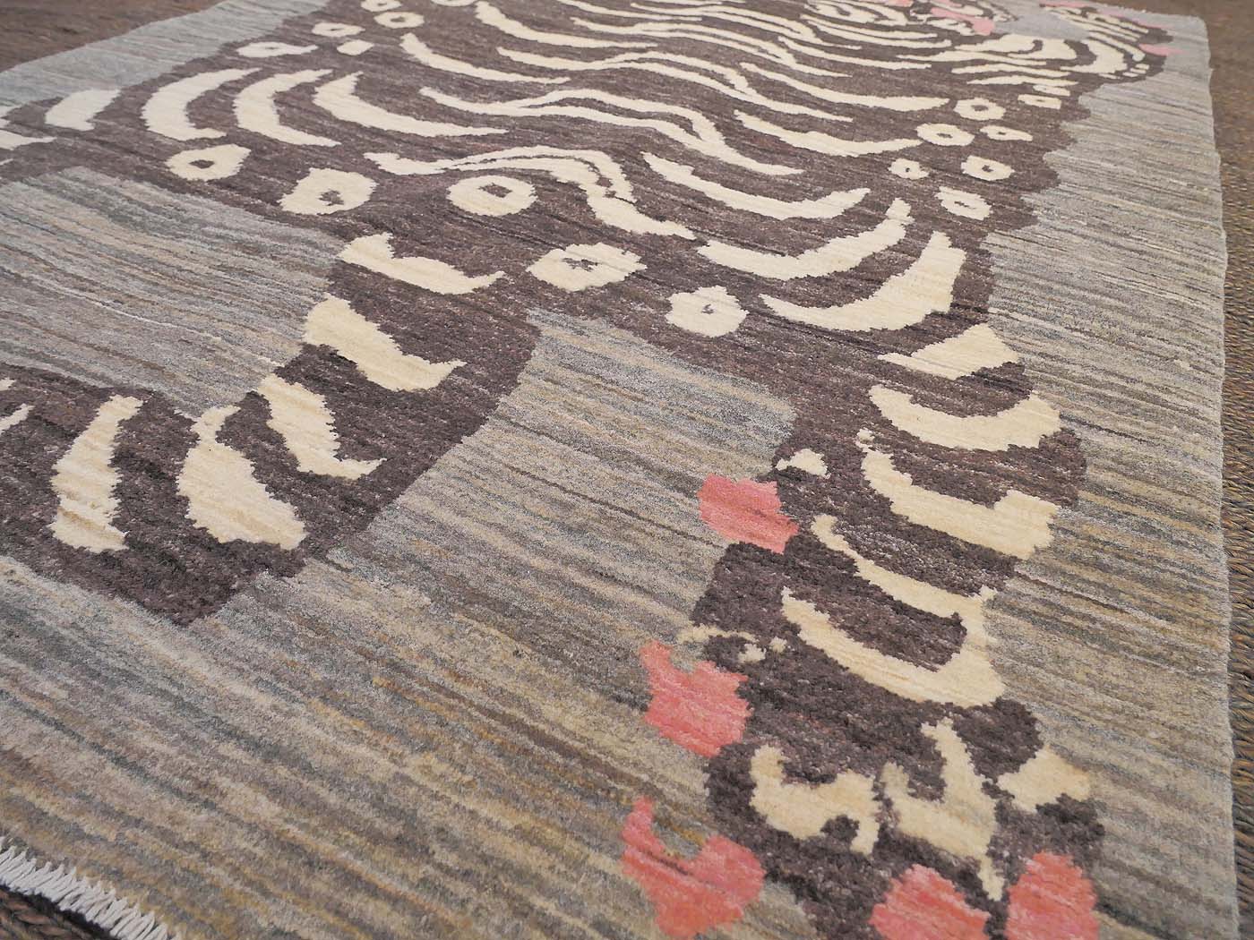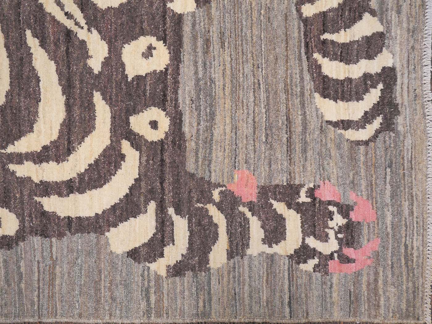 This hand knotted pile rug is made using natural dyes and handspun wool; commissioned by the Nomad Rugs design team and woven by Turquoise Mt. weavers. Thousands of women in Afghanistan are being supported in this weaving project which creates a sustainable livelihood for weaving families. Label Step ensure a comprehensive set of fair trade standards and environmentally friendly production. This rug features a lovely Tibetan Tiger design in neutral colors with a splash of pink and a very fine 140kpsi weave. Entirely hand made. FREE Shipping and Easy Returns.