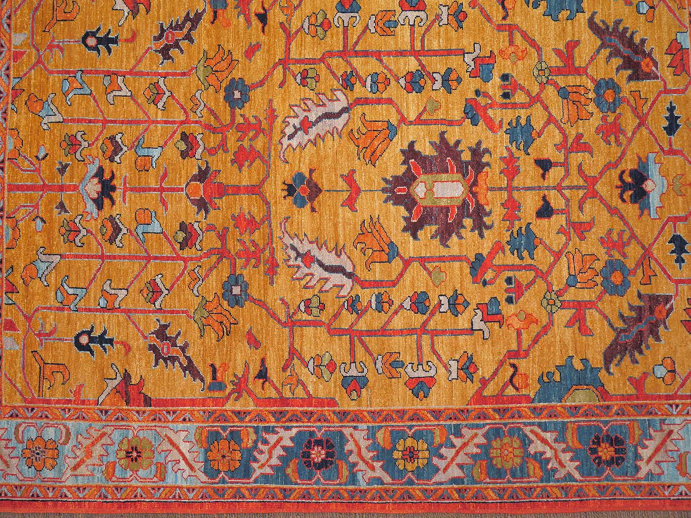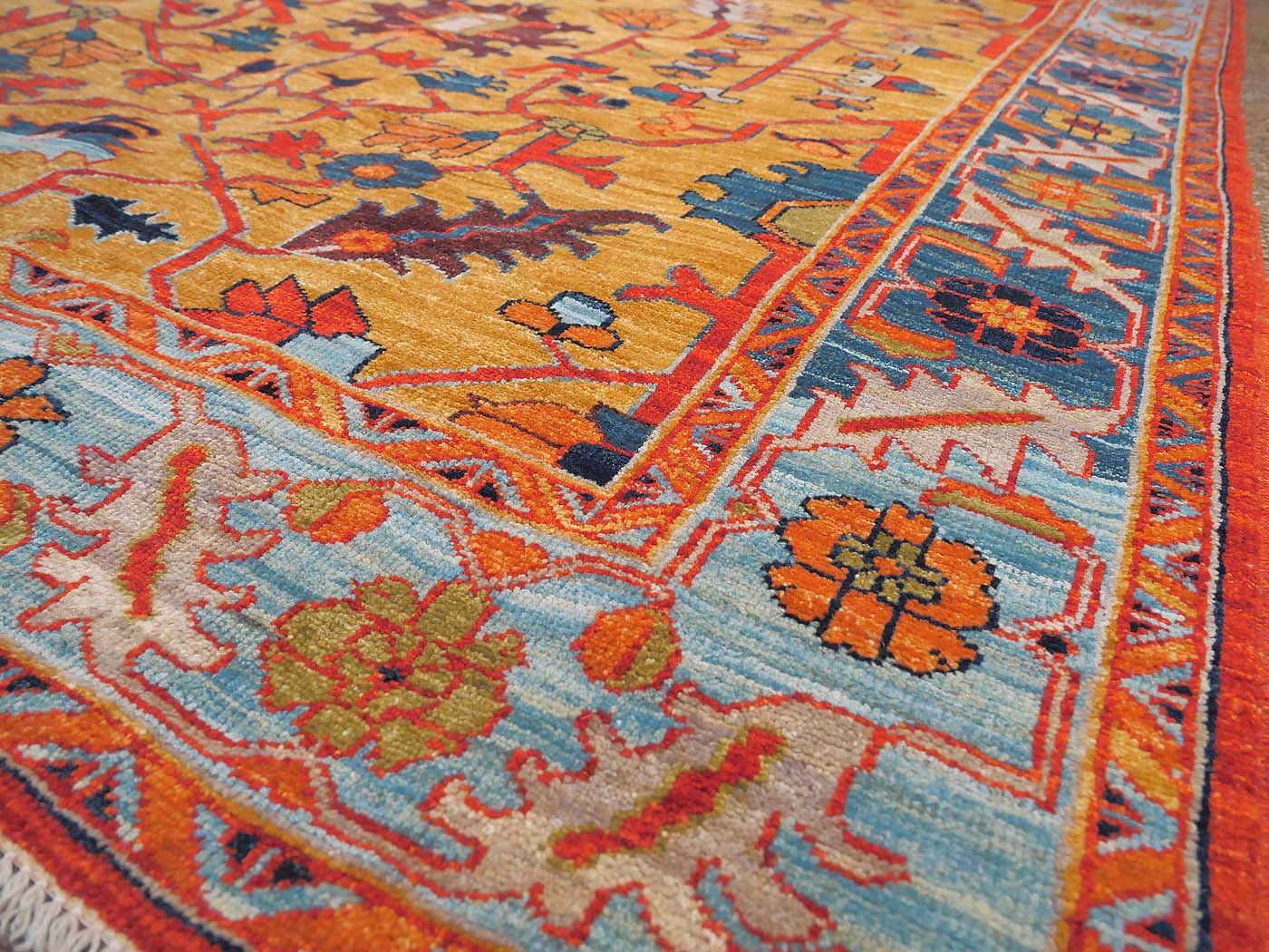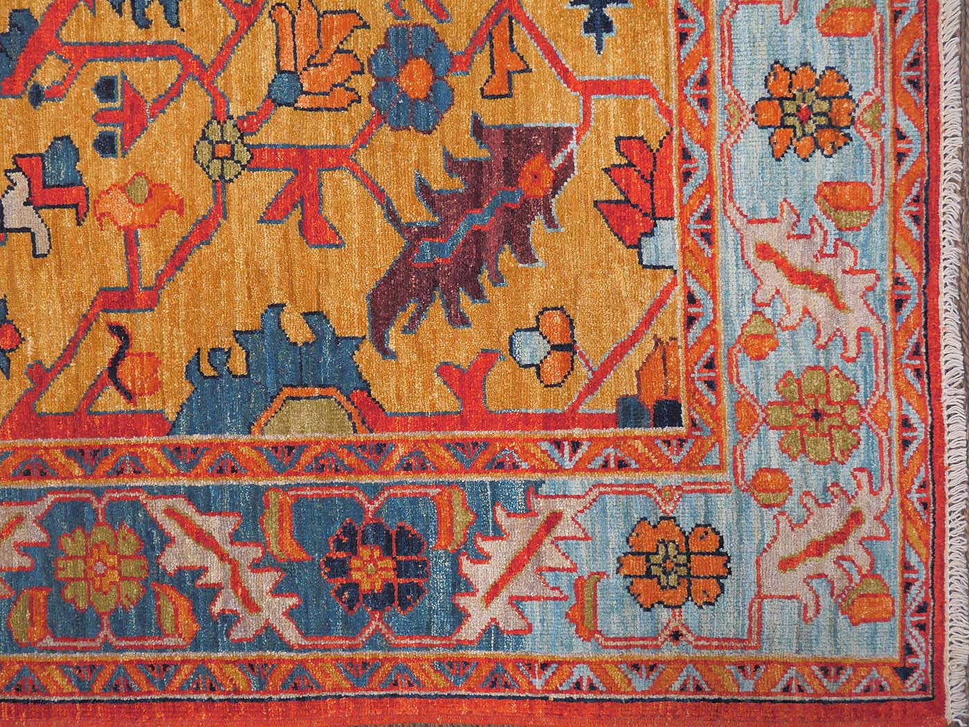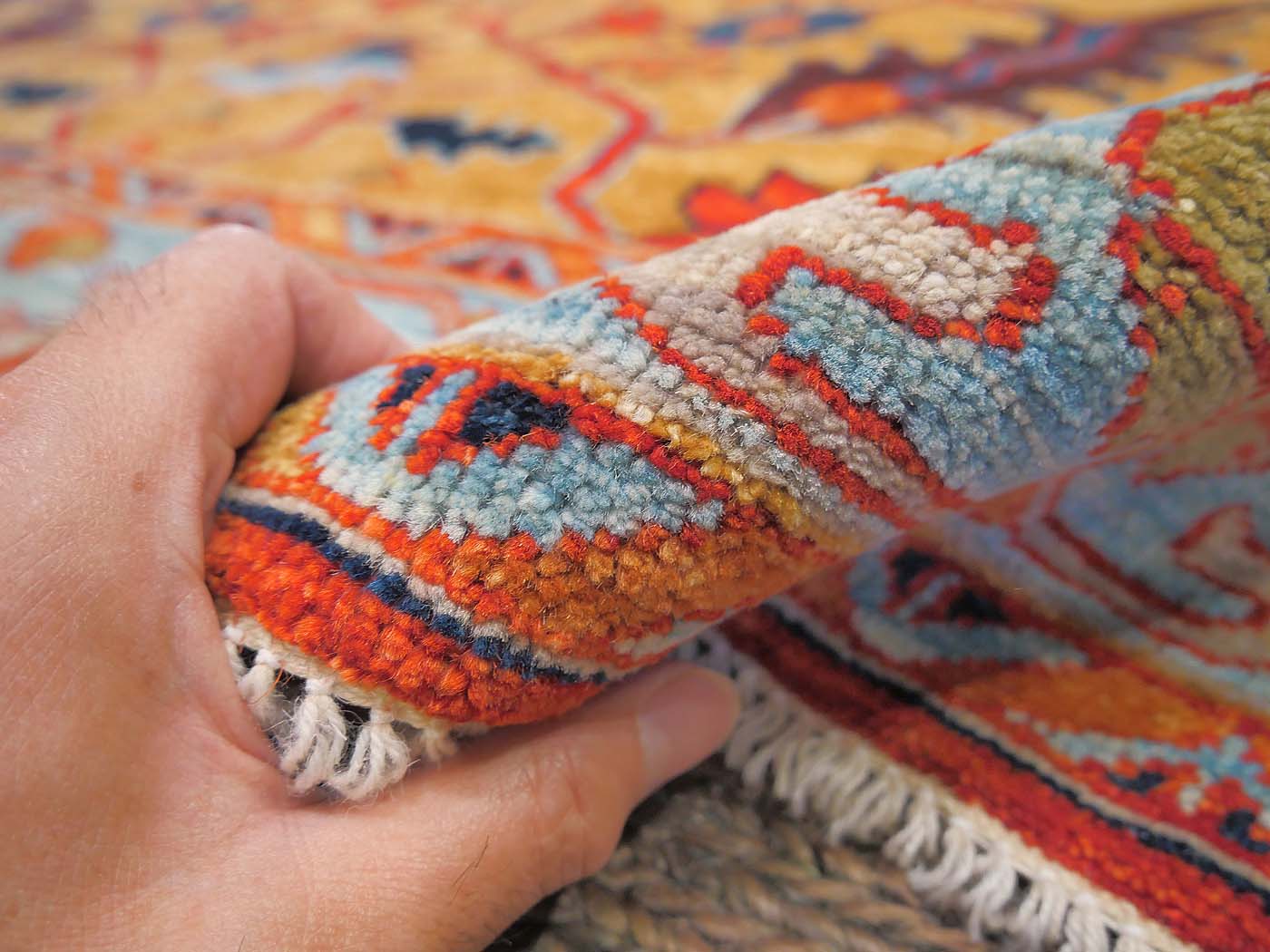 This hand knotted pile rug is made using natural dyes and handspun wool; commissioned by the Nomad Rugs design team and woven by Turquoise Mt. weavers. Thousands of women in Afghanistan are being supported in this weaving project which creates a sustainable livelihood for weaving families. Label Step ensure a comprehensive set of fair trade standards and environmentally friendly production. This rug features a Persian Heriz design with a yellow ground color and a fine 100kpsi weave. Entirely hand made. FREE Shipping and Easy Returns.