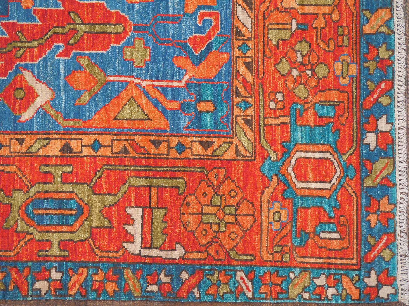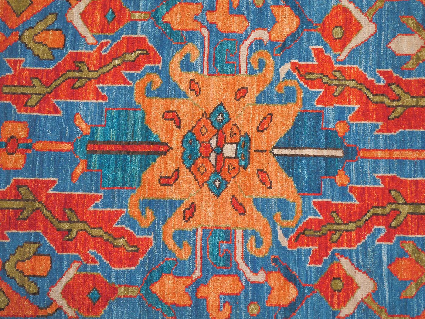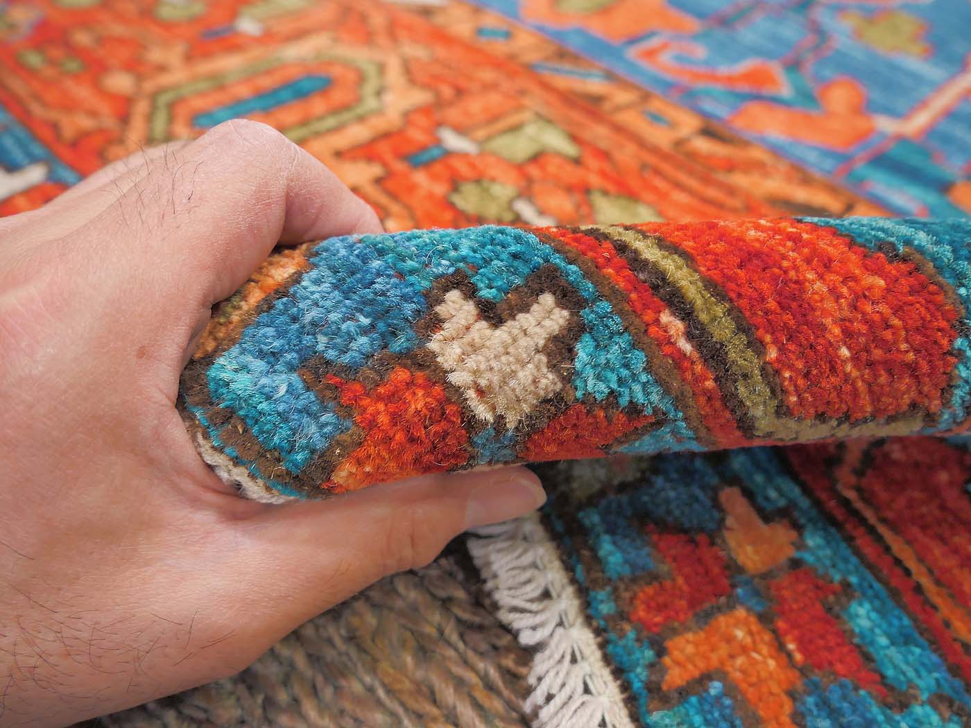 This hand knotted pile rug is made using natural dyes and handspun wool; commissioned by the Nomad Rugs design team and woven by Turquoise Mt. weavers. Thousands of women in Afghanistan are being supported in this weaving project which creates a sustainable livelihood for weaving families. Label Step ensure a comprehensive set of fair trade standards and environmentally friendly production. This rug features a Persian Heriz design with great colors and a fine 100kpsi weave. Entirely hand made. FREE Shipping and Easy Returns.