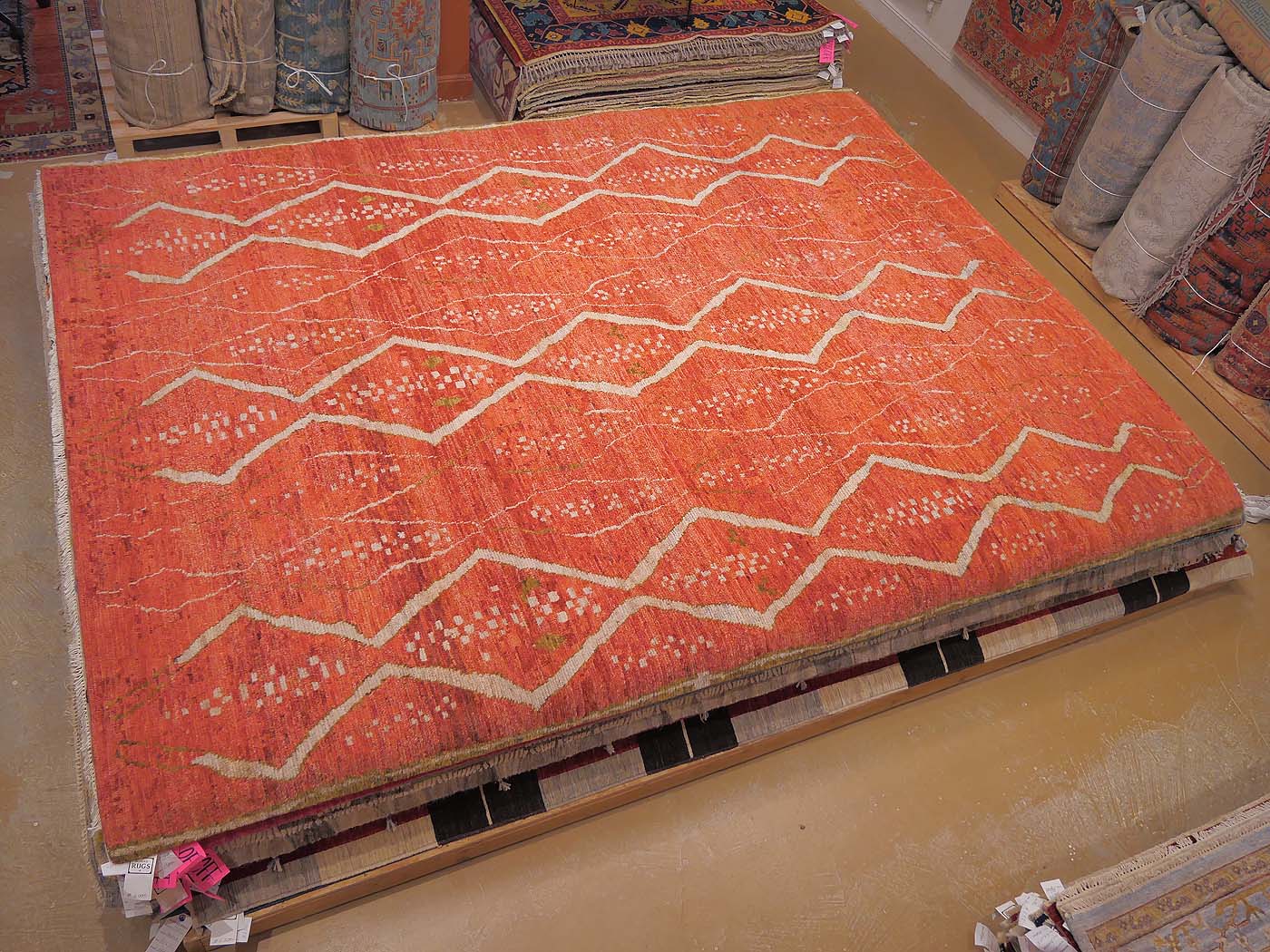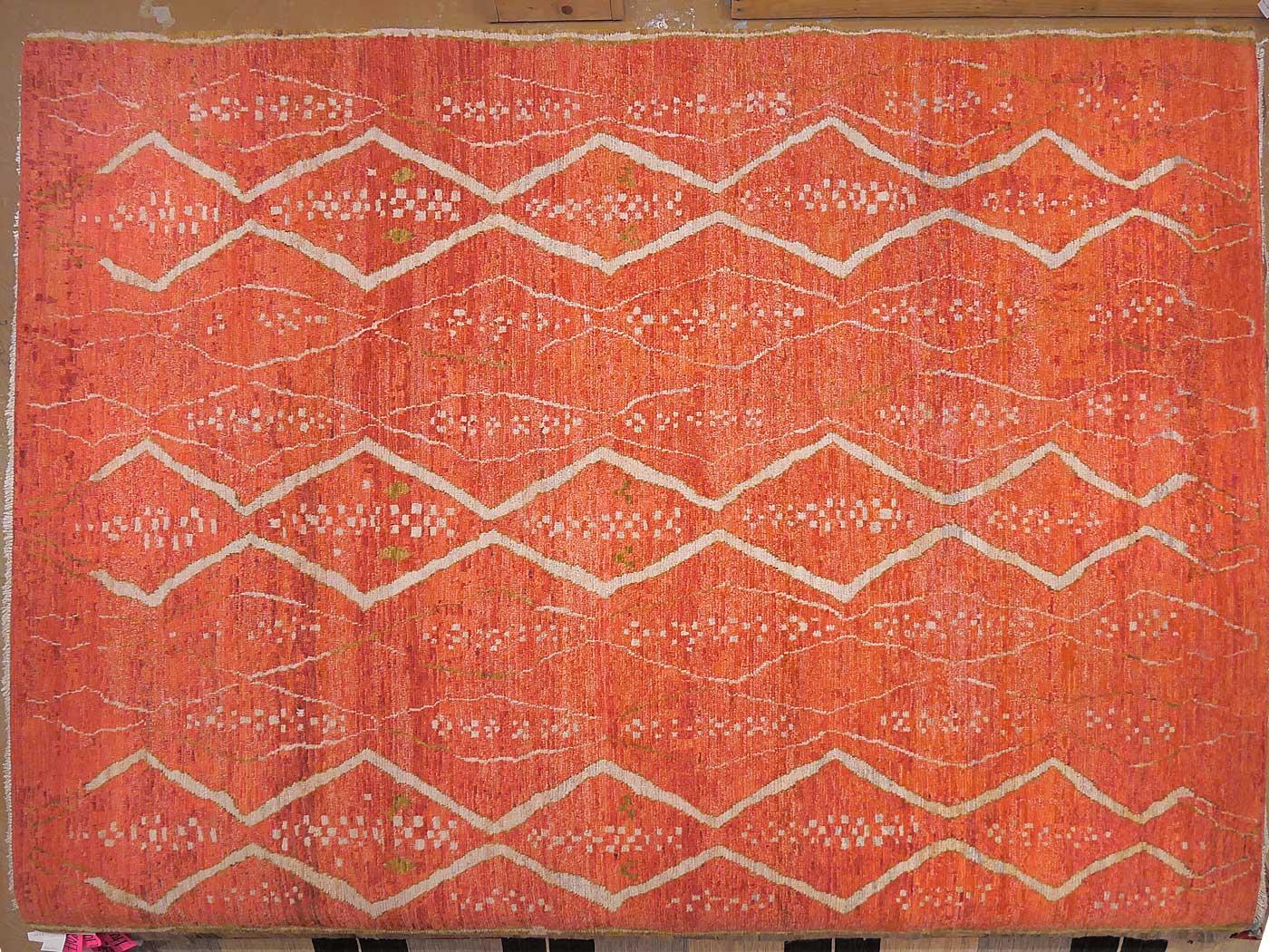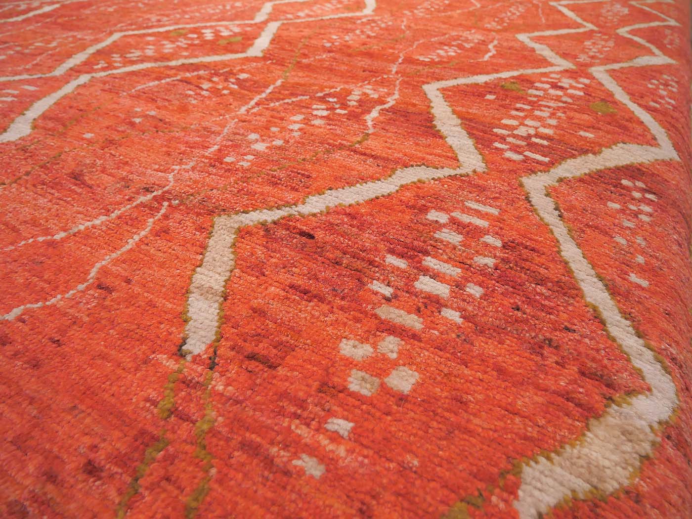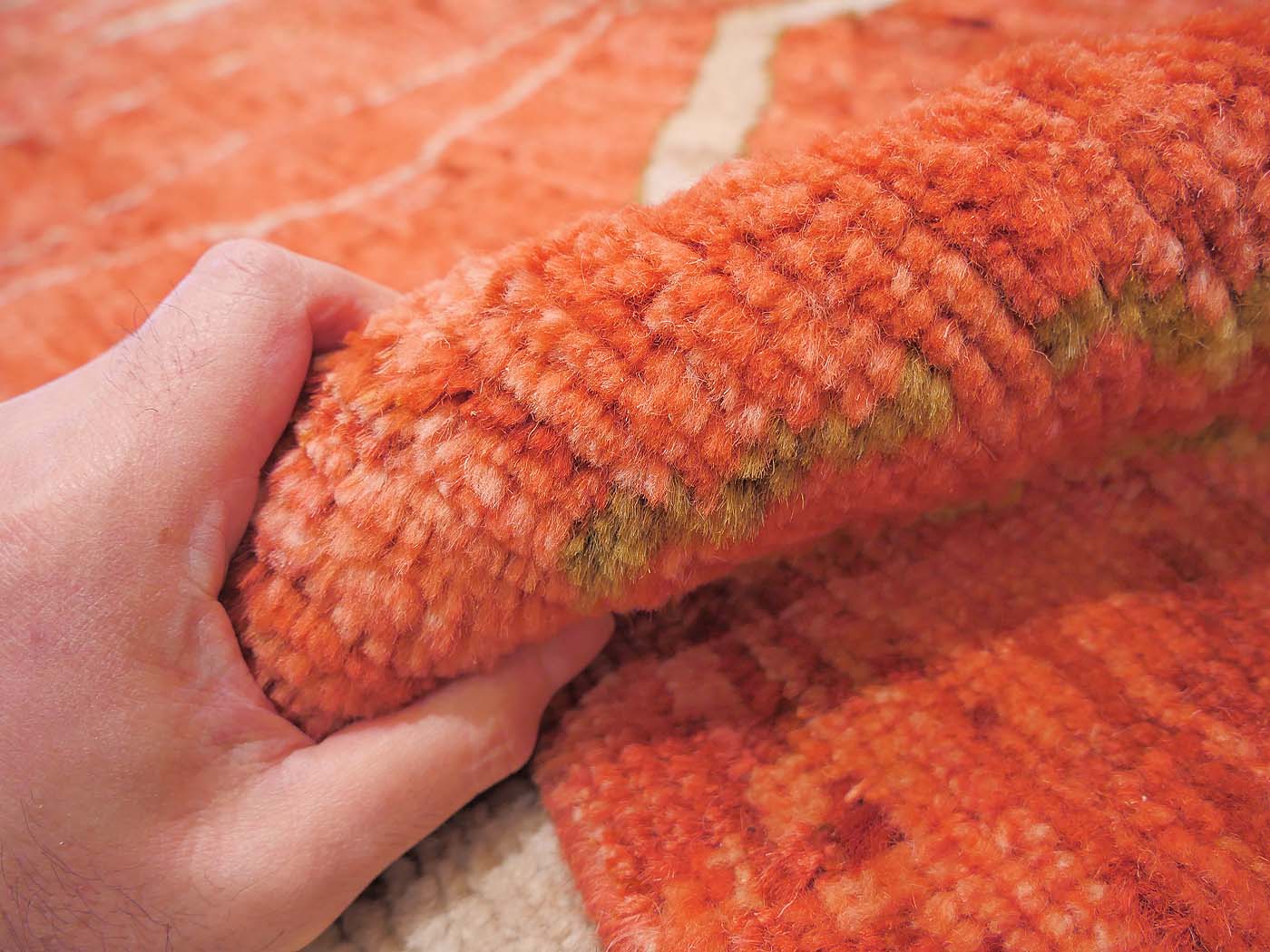 Hand knotted pile rug made using all long shag handspun wool. This wonderful carpet is modeled after an antique Moroccan tribal rug. It is knotted in a textured weave of around 40kpsi. This coarse knotting along with the long shaggy soft handspun wool and spontaneous organic designs give this rug a “modern tribal” feel. Inspired by the many wonderful tribal rugs of the Berber weavers of Morocco. Add unique texture and design to your home and very soft texture underfoot. FREE Shipping and Easy Returns.