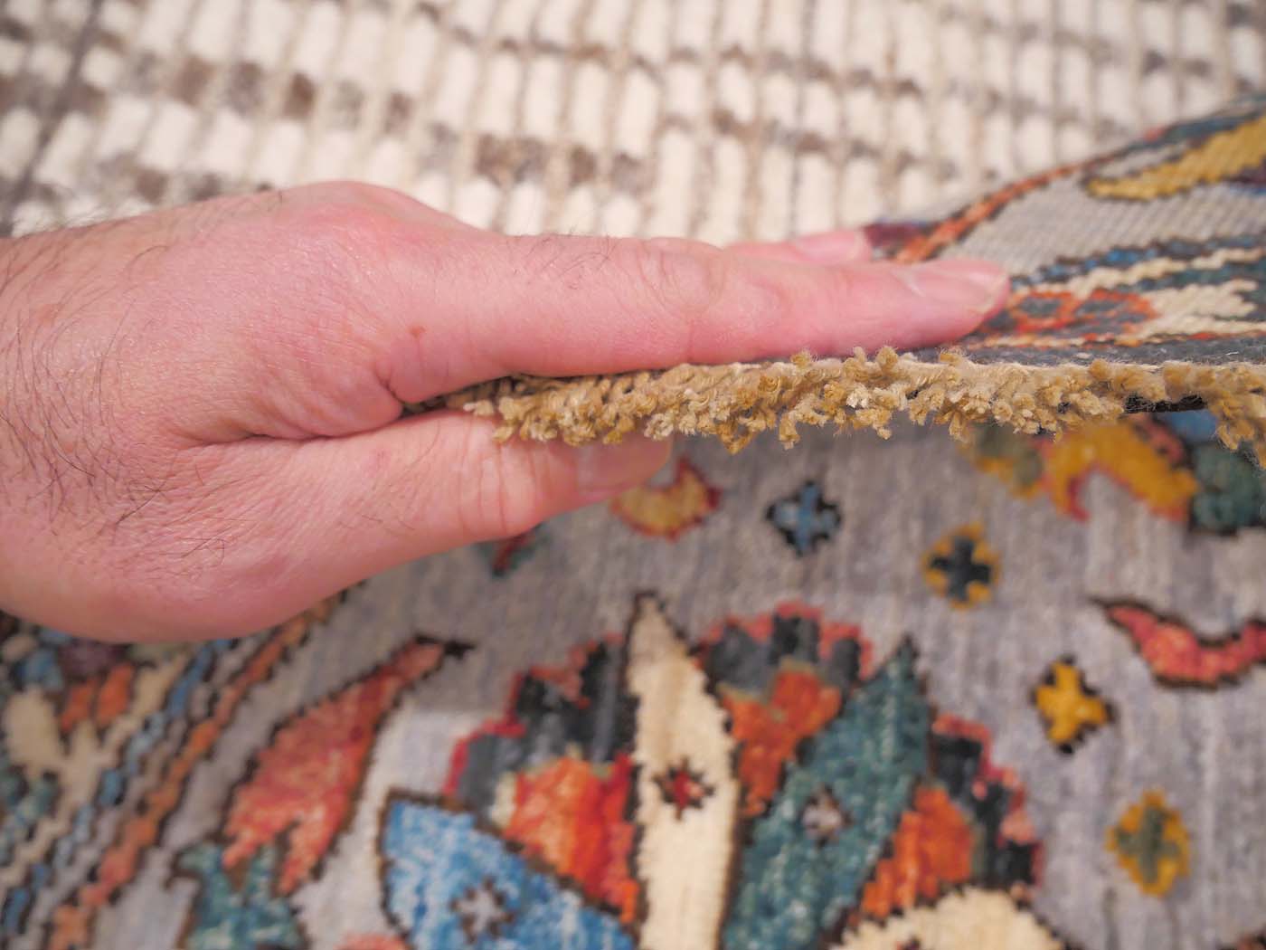 Hand knotted pile rug made using natural dyes and handspun wool. This rug is woven with around 90kpsi and gorgeous NW Persian Karaja design in blue tones that was commissioned especially for the Nomad Rugs team. Weaving takes place in the northern areas of Afghanistan where the art of weaving is reverently passed on from mother to daughter with the weaving of these rugs taking place in individual family homes. This rug was custom designed and woven in collaboration with Nomad Rugs and entirely hand made. FREE Shipping and Easy Returns.