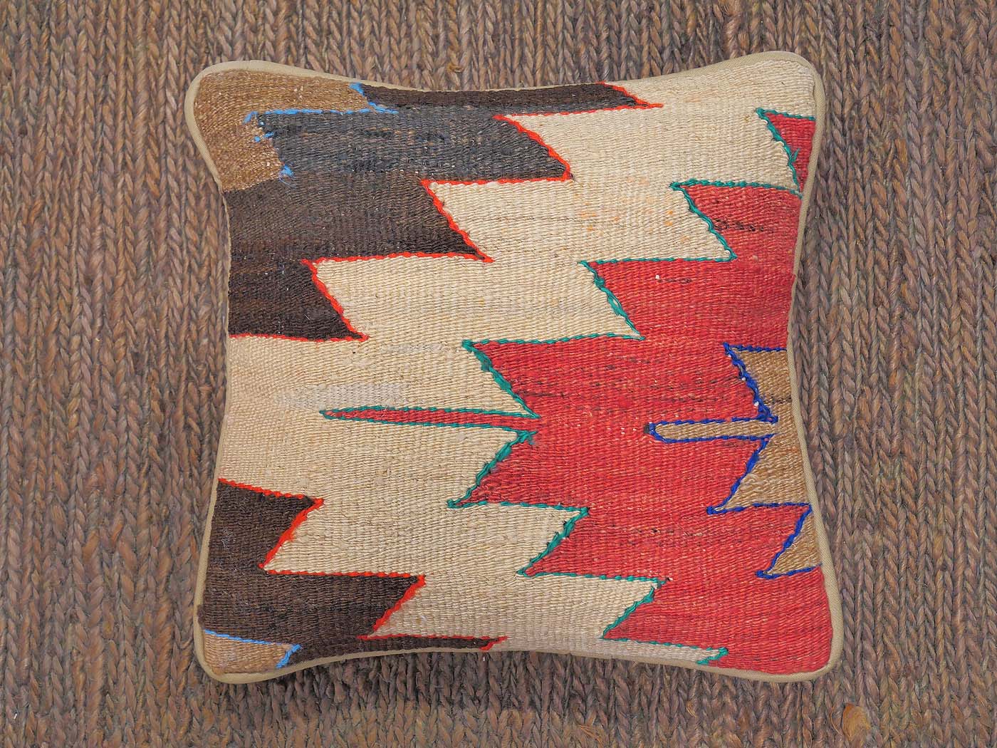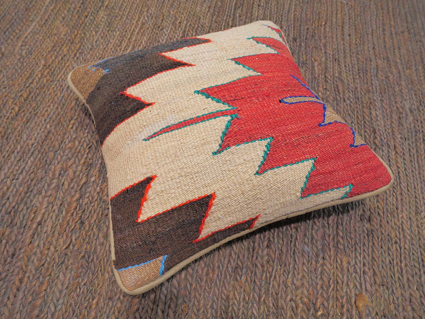 12″x12″ This beautiful pillow if made from a vintage fragment of a Turkish kilim rug. It is firmly stuffed with a custom pillow insert and has a sturdy cloth backing with a zipper to remove the pillow insert for easy cleaning. FREE Shipping and Easy Returns.