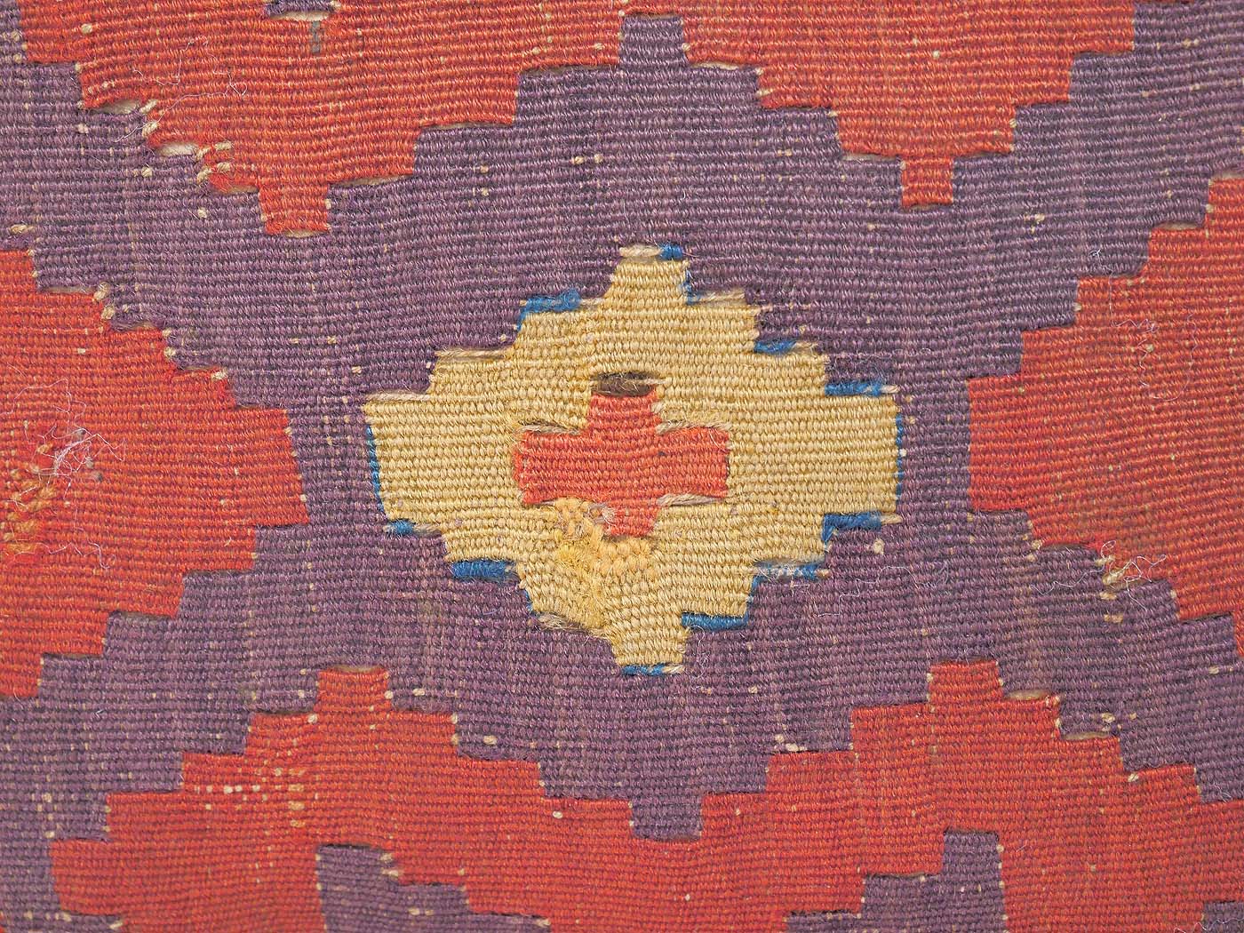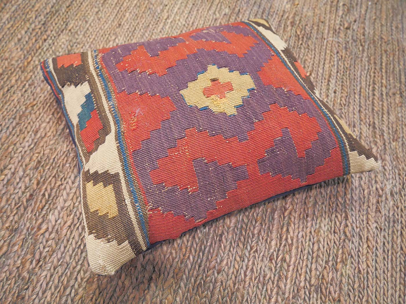 12″x14″ This beautiful pillow if made from a vintage fragment of a Caucasian kilim rug. It is firmly stuffed with a custom pillow insert and has a sturdy cloth backing with a zipper to remove the pillow insert for easy cleaning. FREE Shipping and Easy Returns.