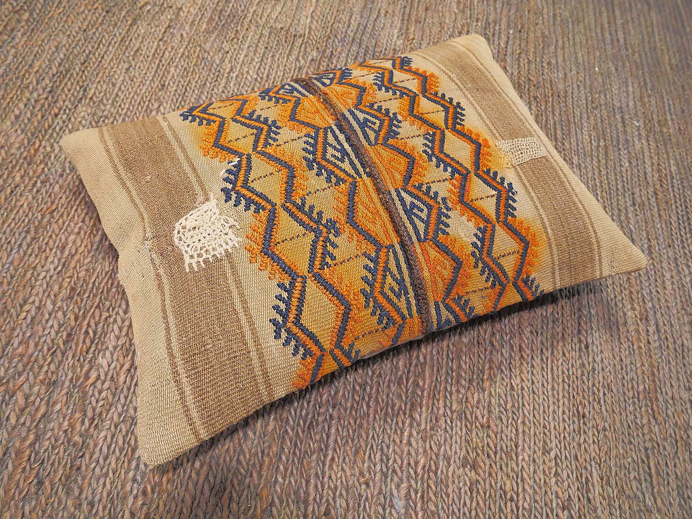14″x19″ This beautiful pillow if made from a vintage fragment of a Turkish kilim rug. It is firmly stuffed with a custom pillow insert and has a sturdy cloth backing with a zipper to remove the pillow insert for easy cleaning. FREE Shipping and Easy Returns.