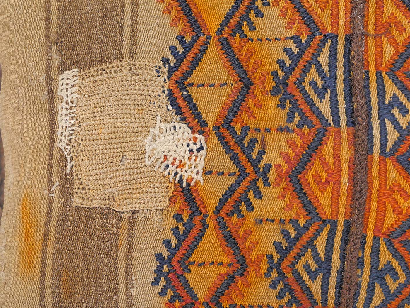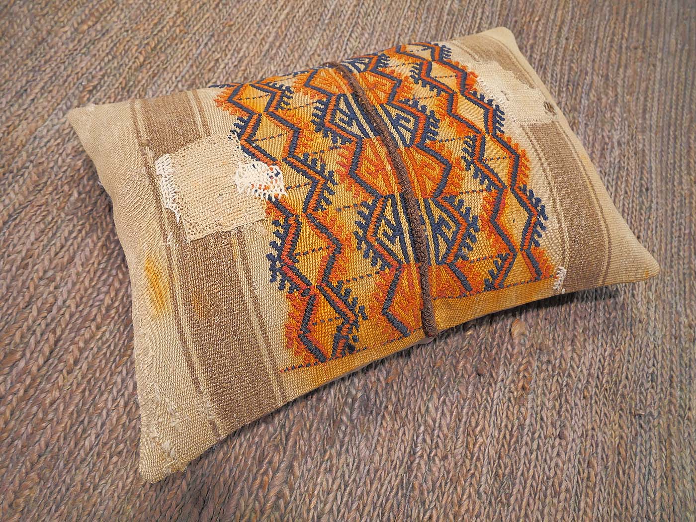 14″x20″ This beautiful pillow if made from a vintage fragment of a Turkish kilim rug. It is firmly stuffed with a custom pillow insert and has a sturdy cloth backing with a zipper to remove the pillow insert for easy cleaning. FREE Shipping and Easy Returns.