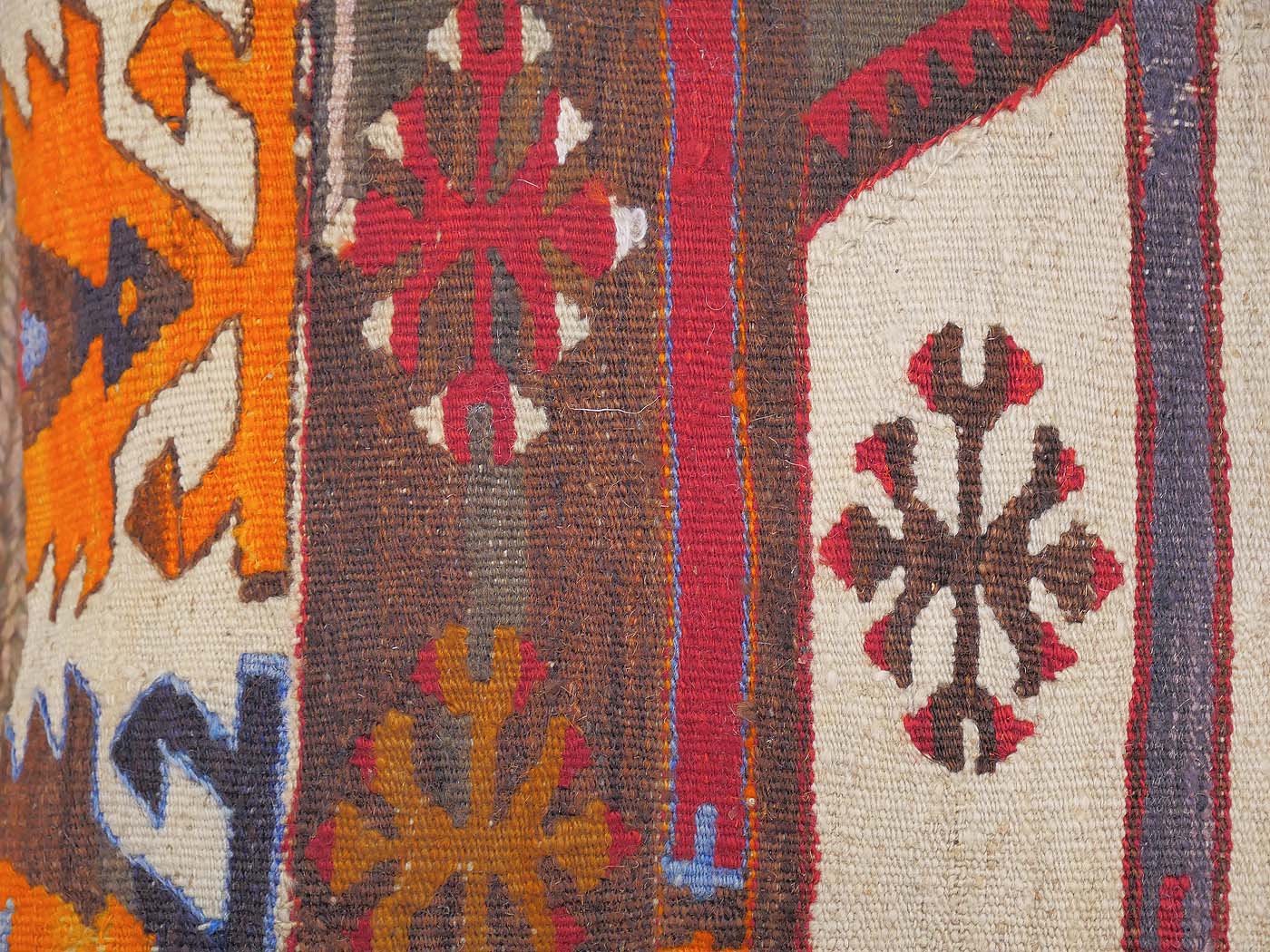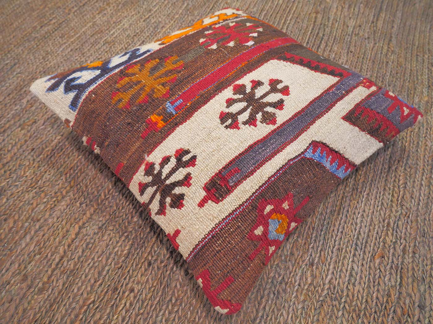 16″x16″ This beautiful pillow if made from a vintage fragment of a Turkish kilim rug. It is firmly stuffed with a custom pillow insert and has a sturdy cloth backing with a zipper to remove the pillow insert for easy cleaning. FREE Shipping and Easy Returns.