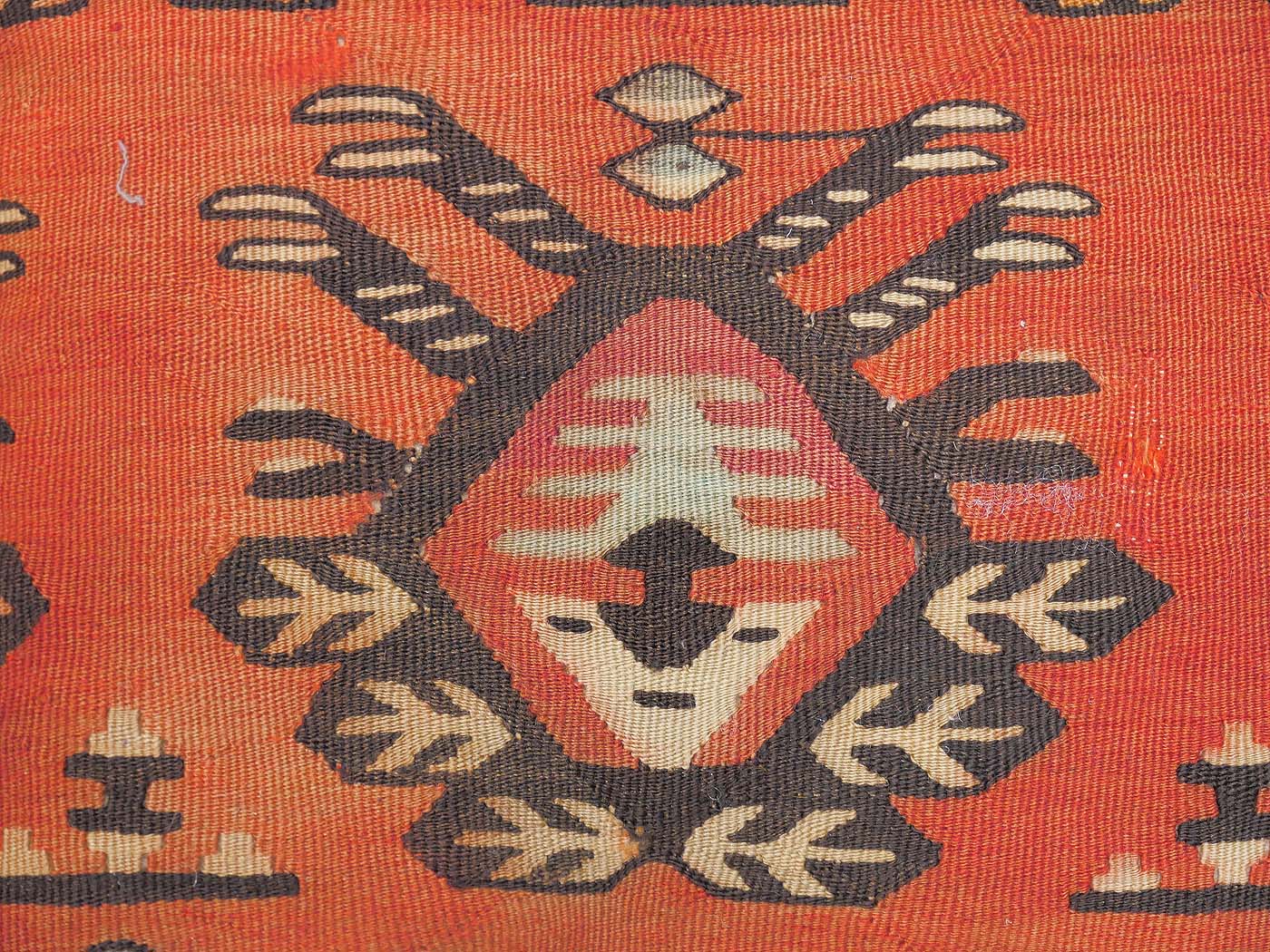 13″x18″ This beautiful pillow if made from a vintage fragment of a Turkish kilim rug. It is firmly stuffed with a custom pillow insert and has a sturdy cloth backing with a zipper to remove the pillow insert for easy cleaning. FREE Shipping and Easy Returns.