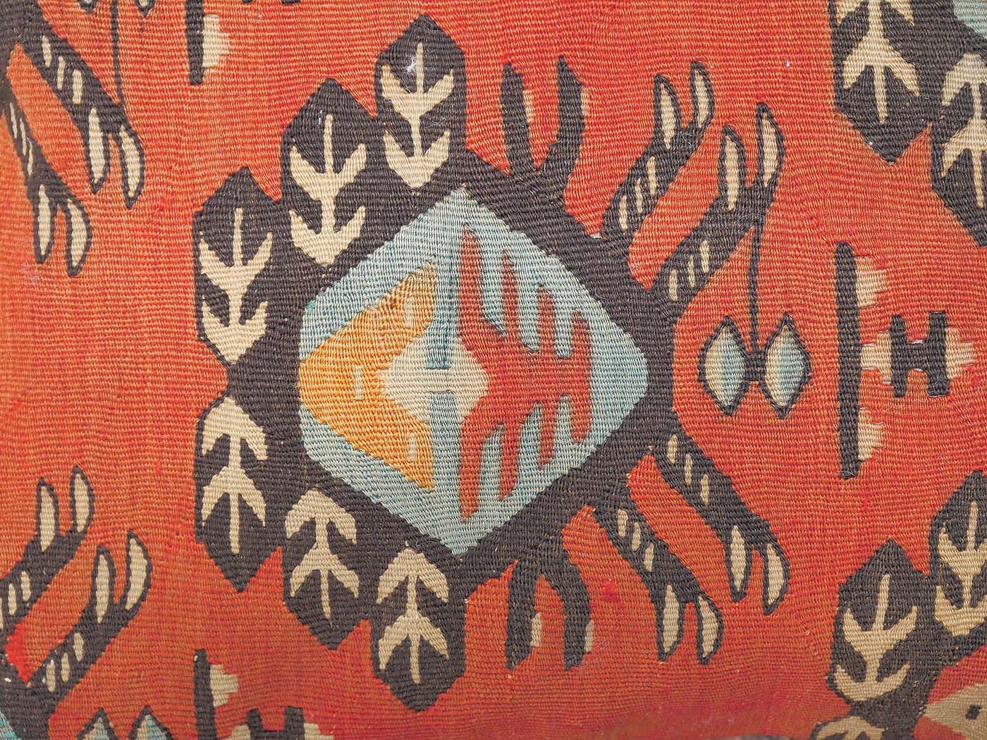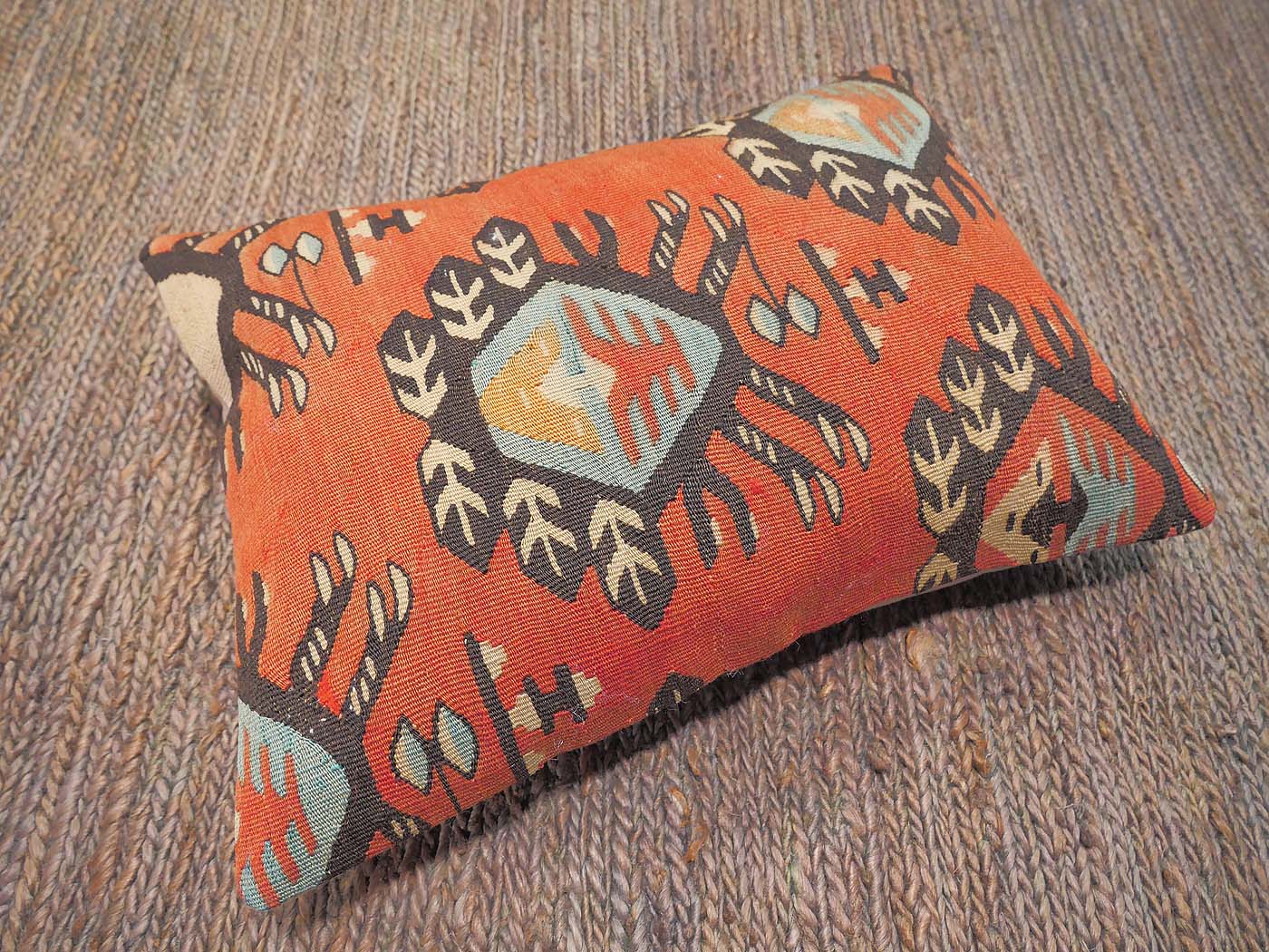 13″x18″ This beautiful pillow if made from a vintage fragment of a Turkish kilim rug. It is firmly stuffed with a custom pillow insert and has a sturdy cloth backing with a zipper to remove the pillow insert for easy cleaning. FREE Shipping and Easy Returns.