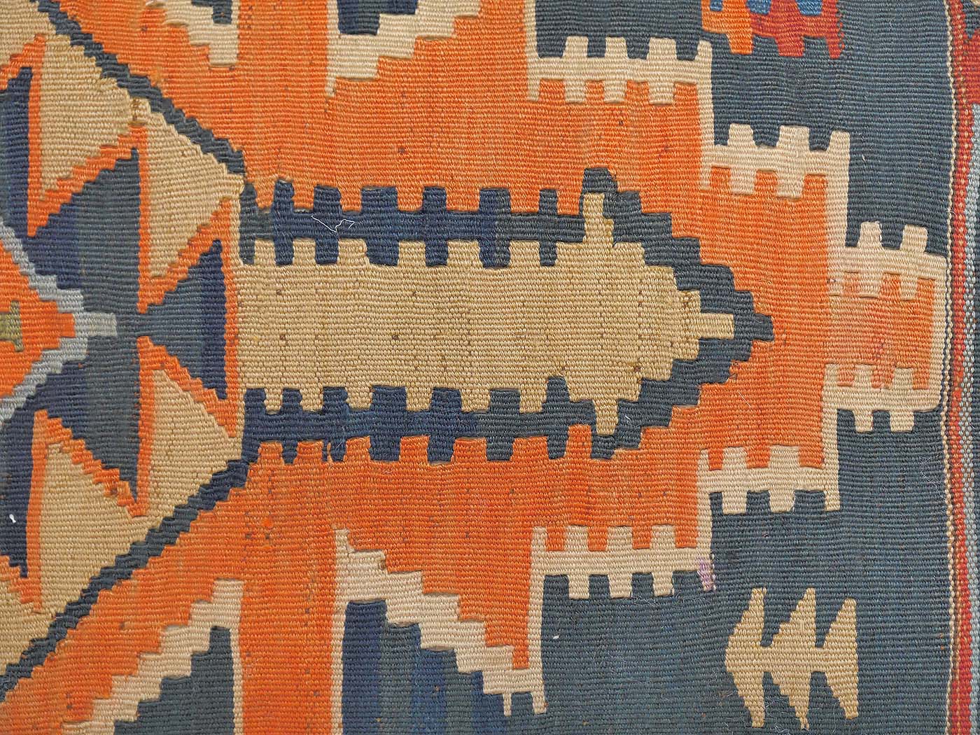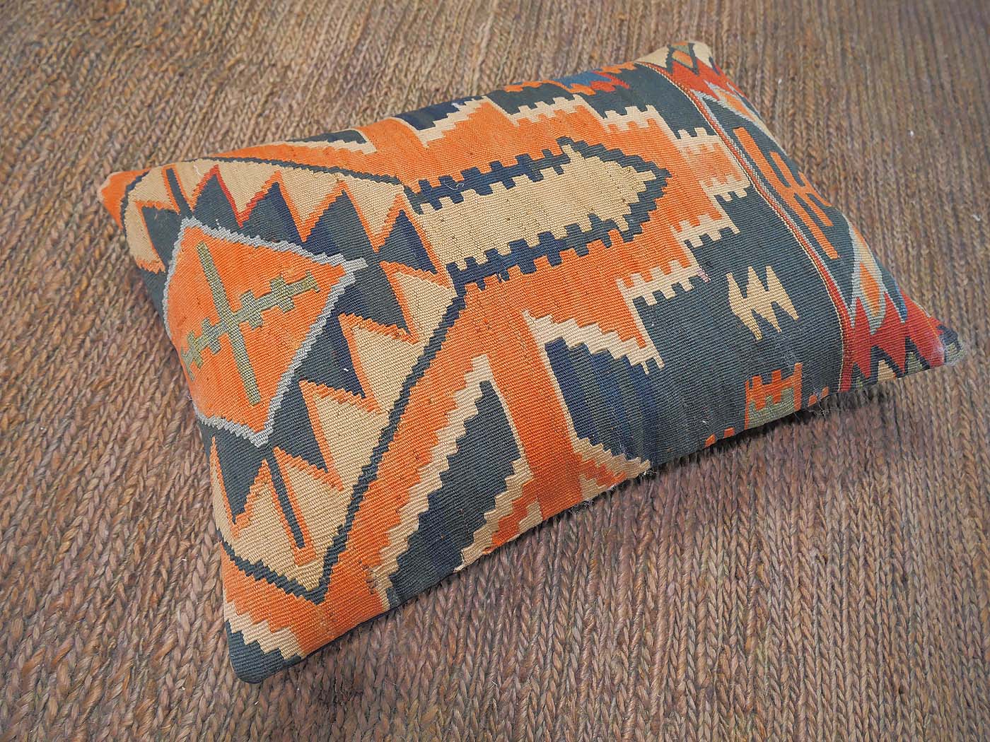 14″x20″ This beautiful pillow if made from a vintage fragment of a Caucasian kilim rug. It is firmly stuffed with a custom pillow insert and has a sturdy cloth backing with a zipper to remove the pillow insert for easy cleaning. FREE Shipping and Easy Returns.