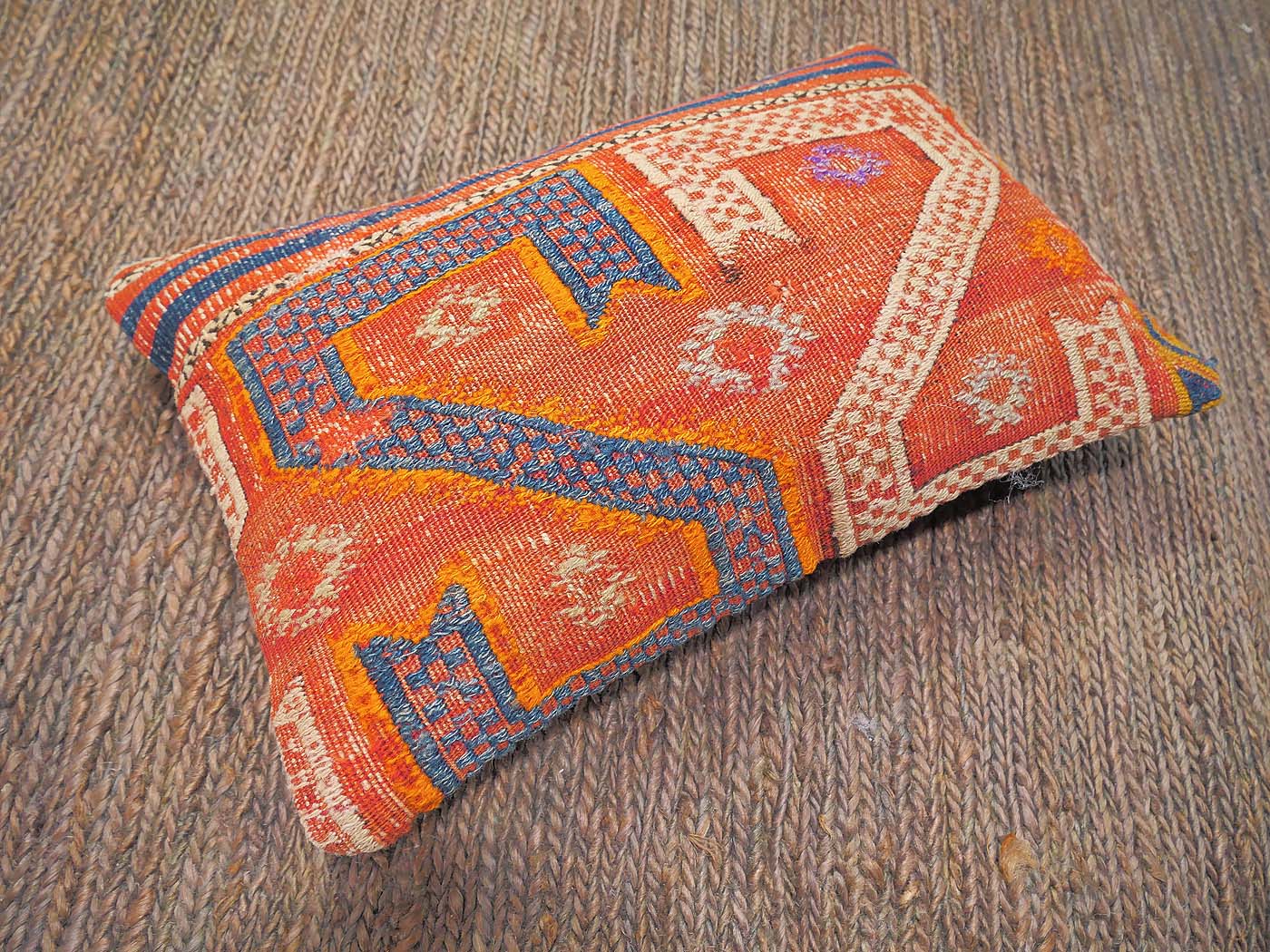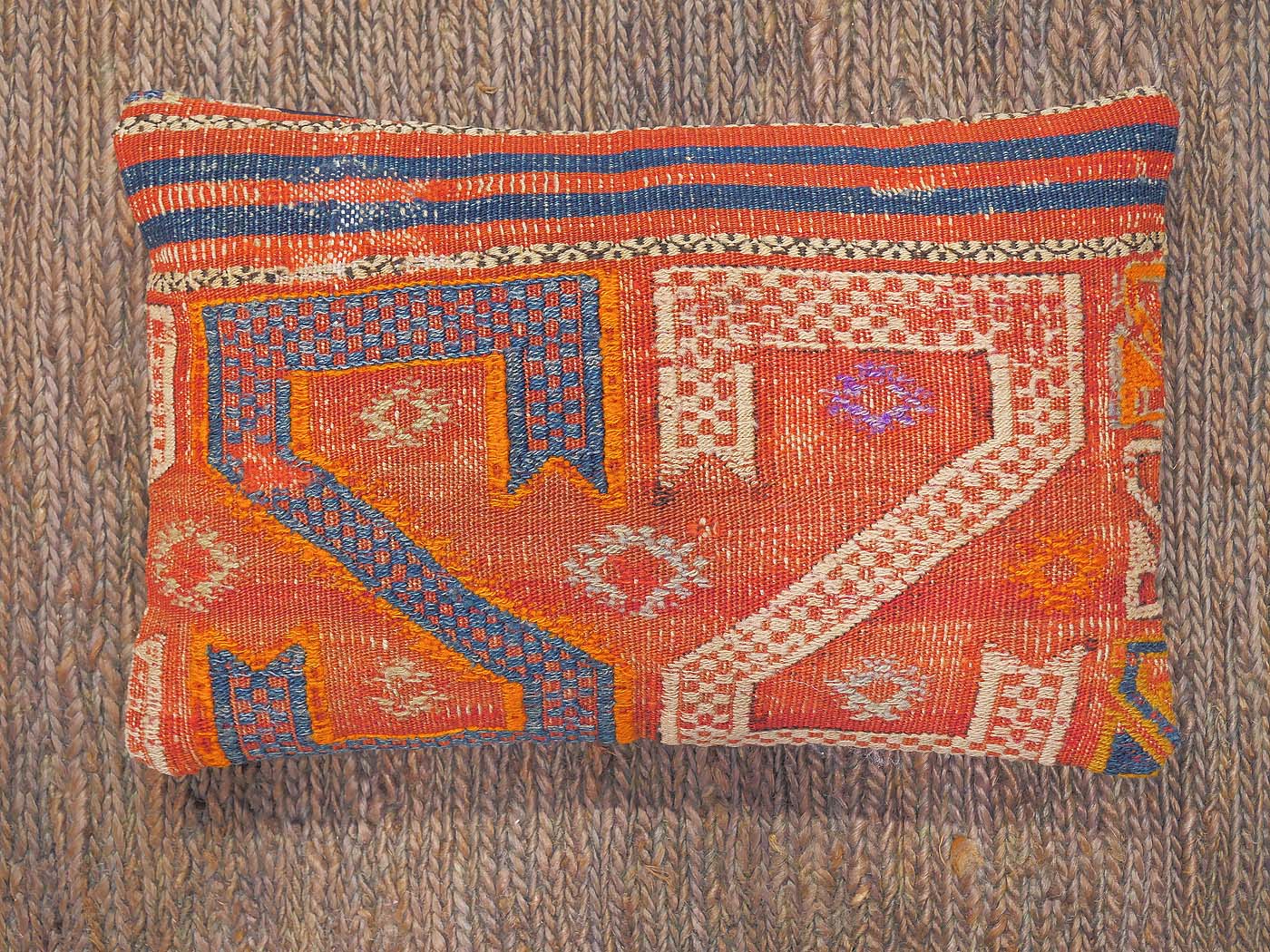 11″x17″ This beautiful pillow if made from a vintage fragment of a Turkish kilim rug. It is firmly stuffed with a custom pillow insert and has a sturdy cloth backing with a zipper to remove the pillow insert for easy cleaning. FREE Shipping and Easy Returns.