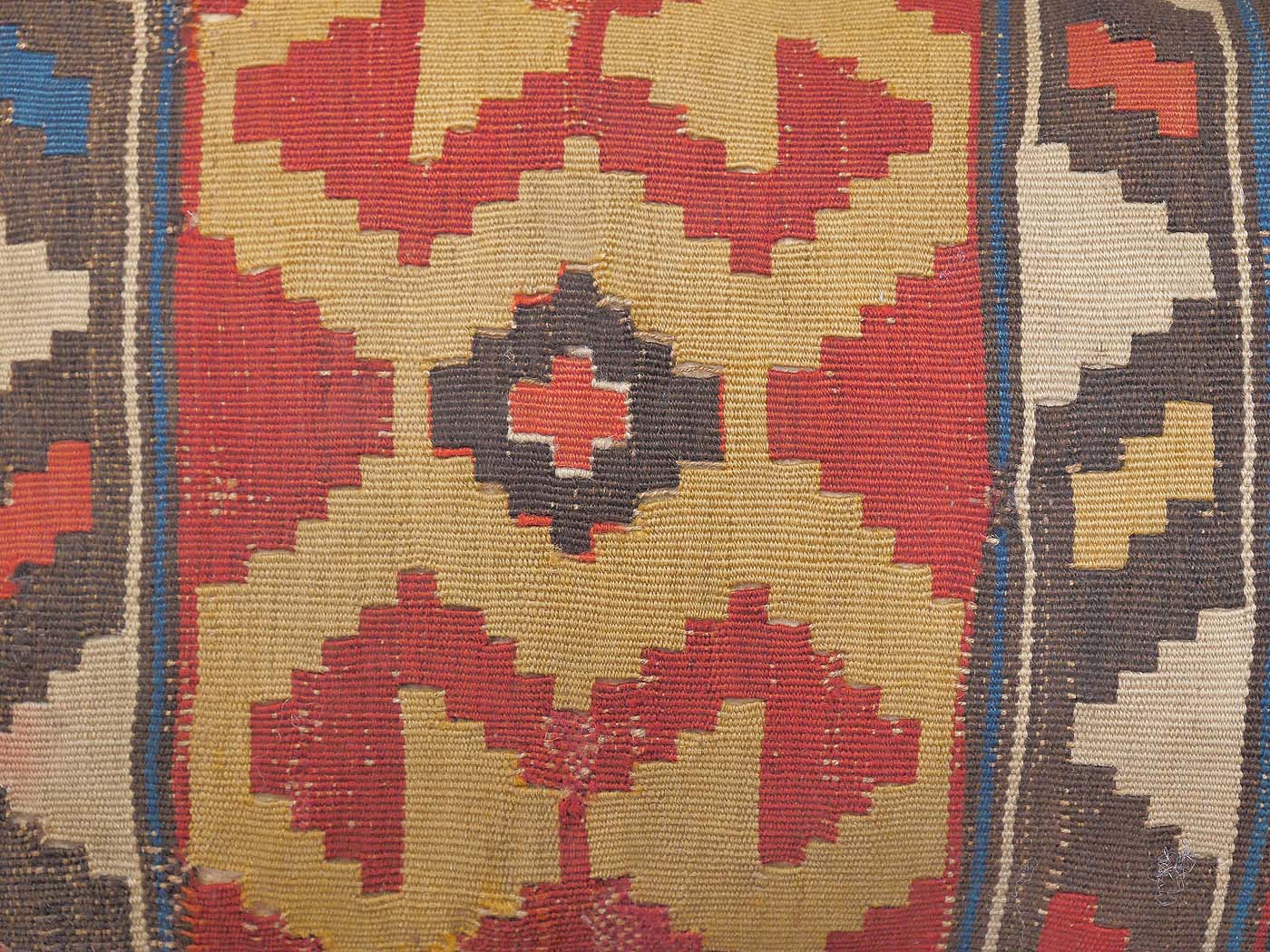 11″x20″ This beautiful pillow if made from a vintage fragment of a Caucasian kilim rug. It is firmly stuffed with a custom pillow insert and has a sturdy cloth backing with a zipper to remove the pillow insert for easy cleaning. FREE Shipping and Easy Returns.