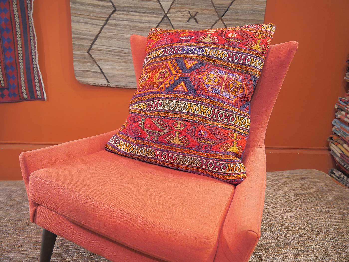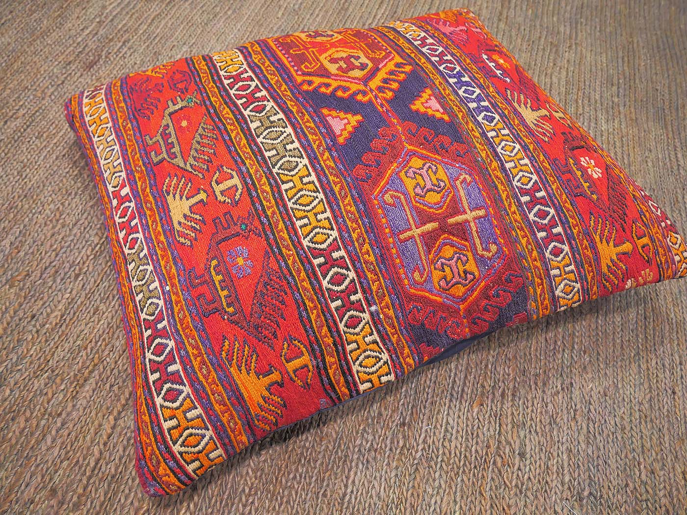 21″x26″ This beautiful pillow if made from a vintage fragment of a Turkish kilim rug. It is firmly stuffed with a custom pillow insert and has a sturdy cloth backing with a zipper to remove the pillow insert for easy cleaning. FREE Shipping and Easy Returns.