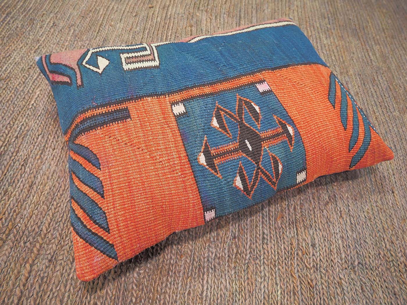 16″x22″ This beautiful pillow if made from a vintage fragment of a Caucasian kilim rug. It is firmly stuffed with a custom pillow insert and has a sturdy cloth backing with a zipper to remove the pillow insert for easy cleaning. FREE Shipping and Easy Returns.