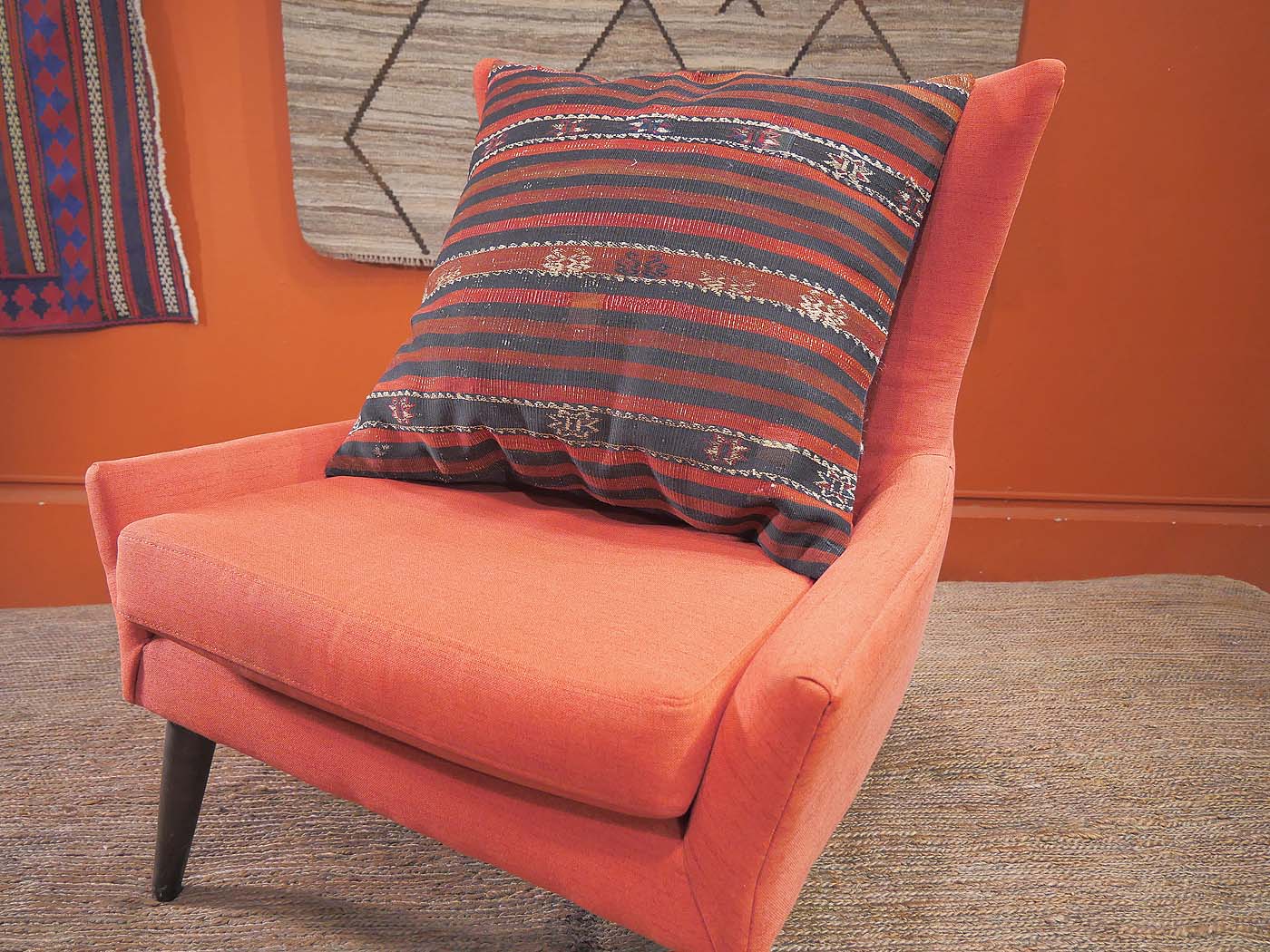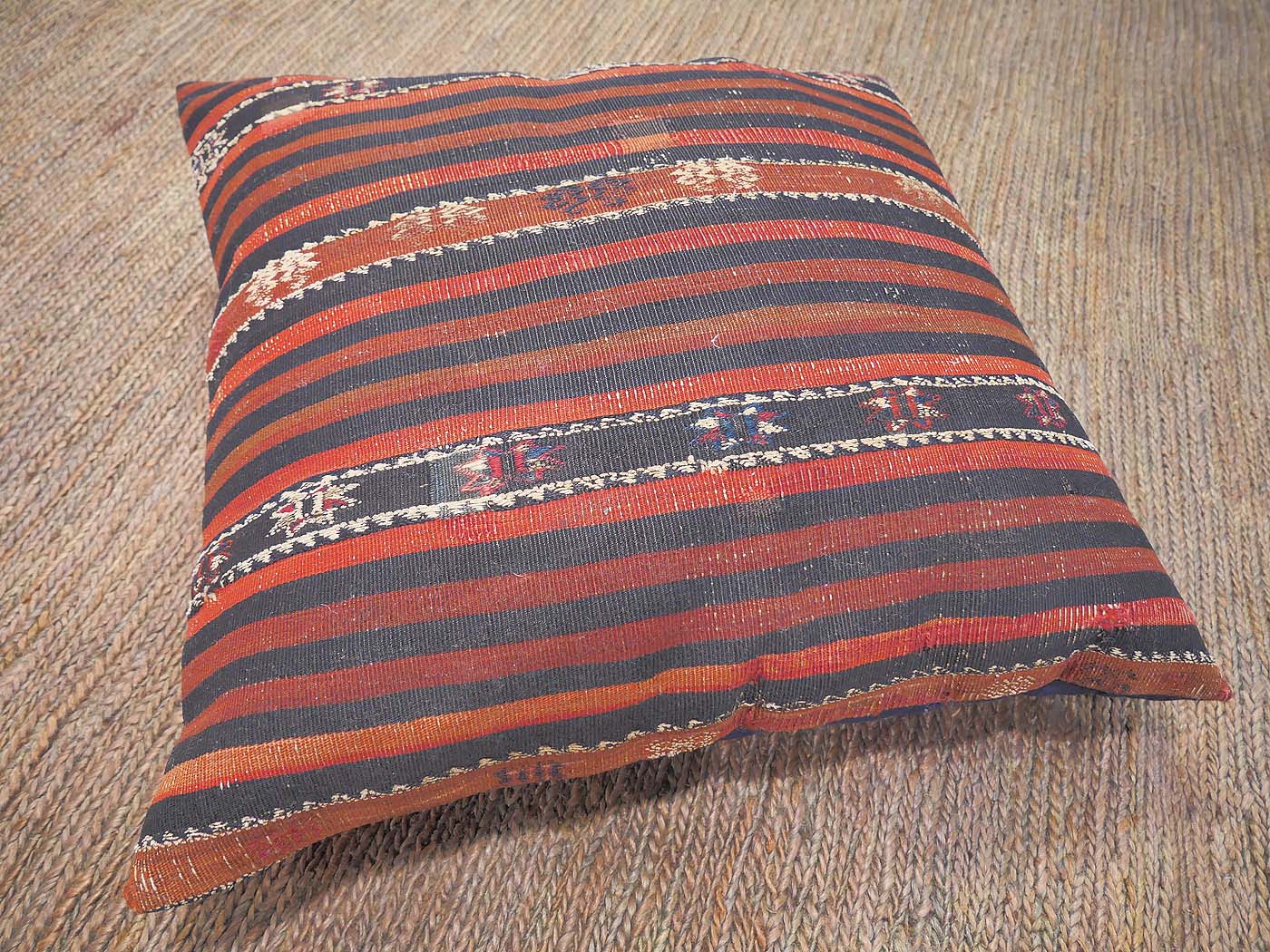 22″x23″ This beautiful pillow if made from a vintage fragment of a Turkish kilim rug. It is firmly stuffed with a custom pillow insert and has a sturdy cloth backing with a zipper to remove the pillow insert for easy cleaning. FREE Shipping and Easy Returns.
