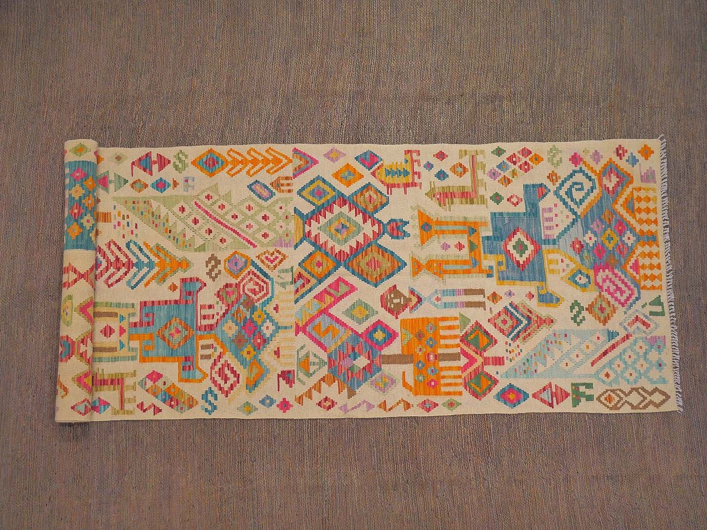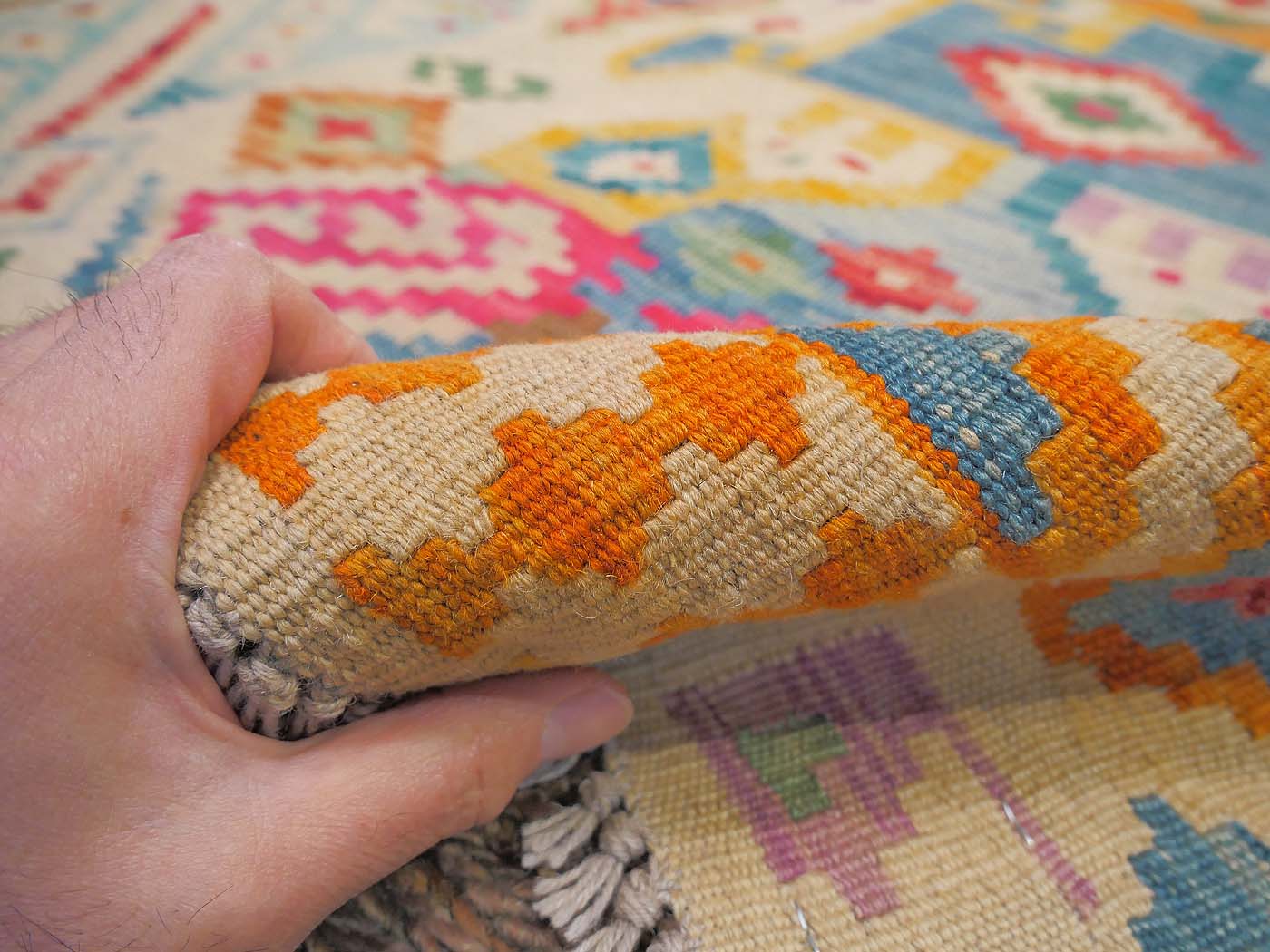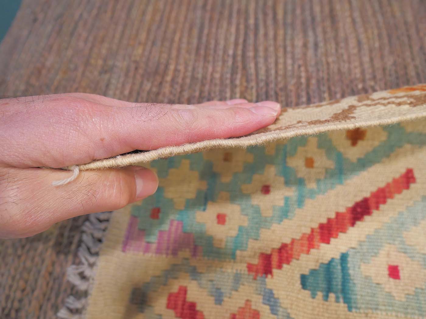 This handmade kilim rug is tightly flat woven in a highly textured tapestry weave technique. These kilims have a slightly primitive texture and a rich abrash which makes them look much like the antique kilims prized by collectors. Some of the nicest hand woven kilim rugs made today. Entirely hand made. FREE Shipping and Easy Returns.
