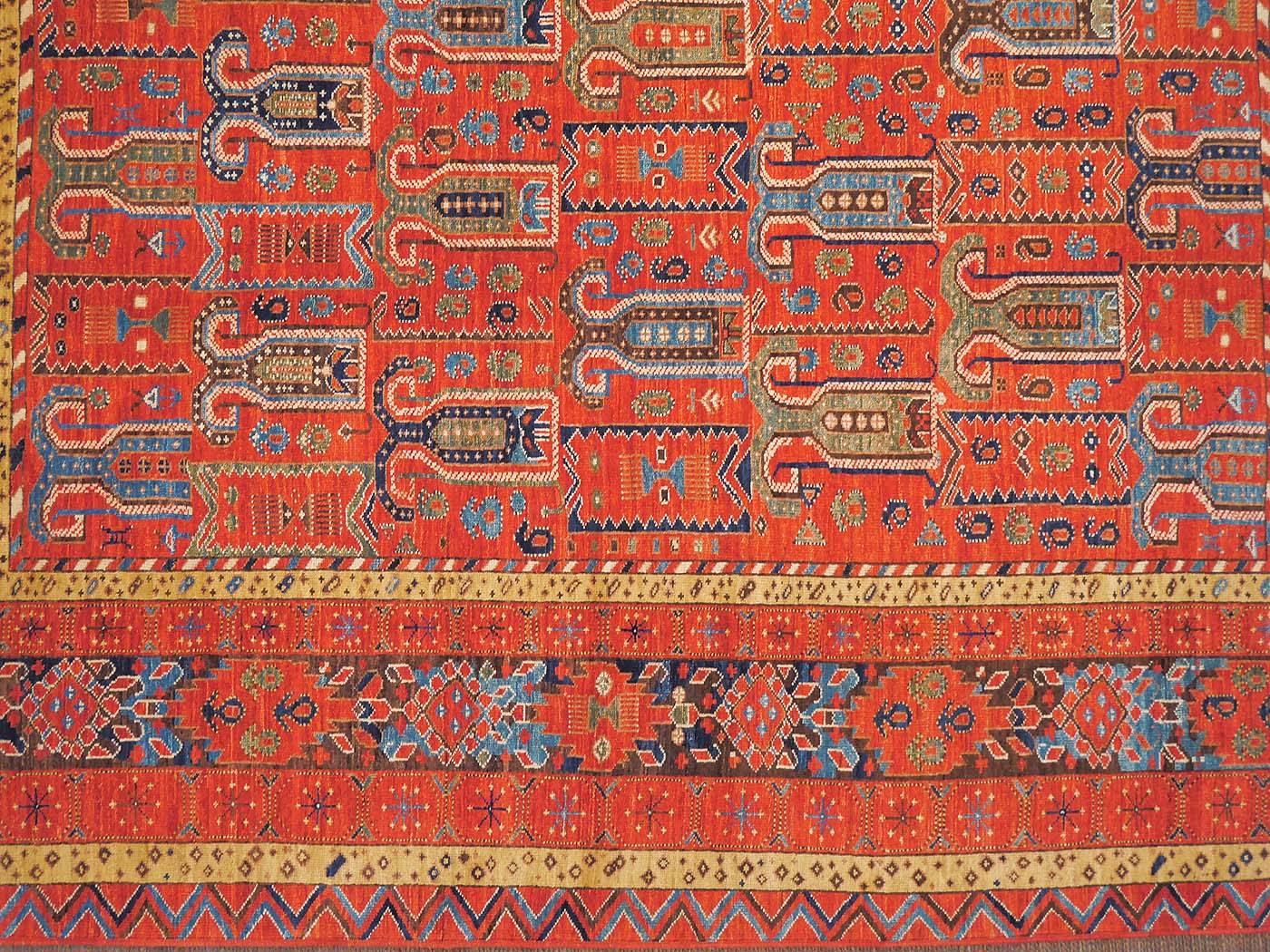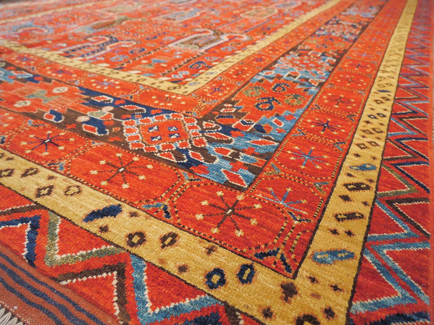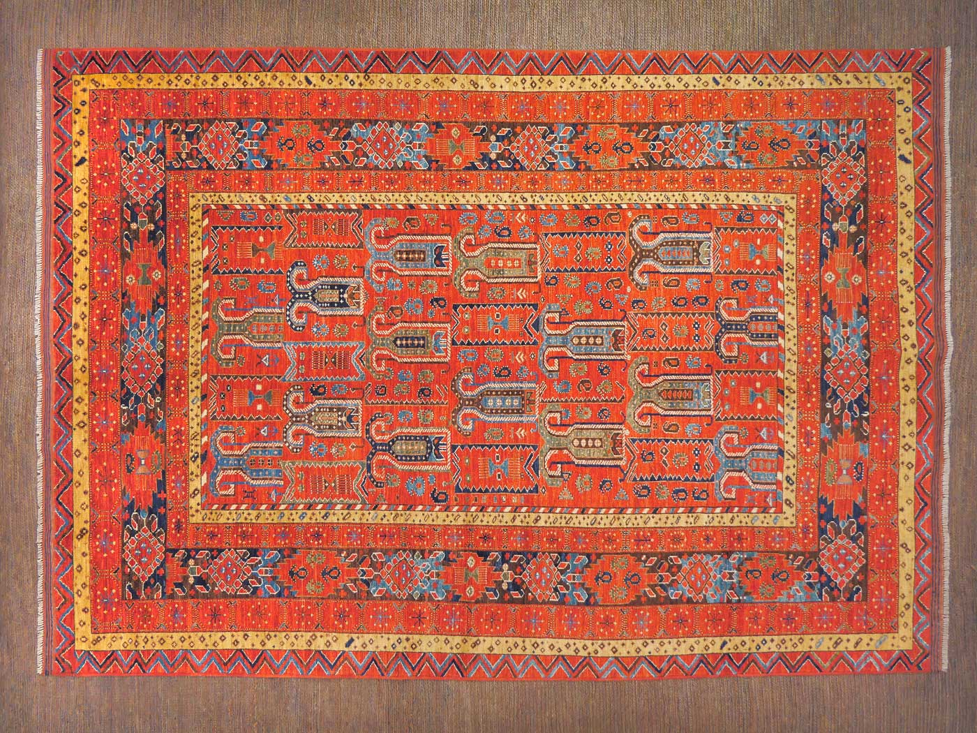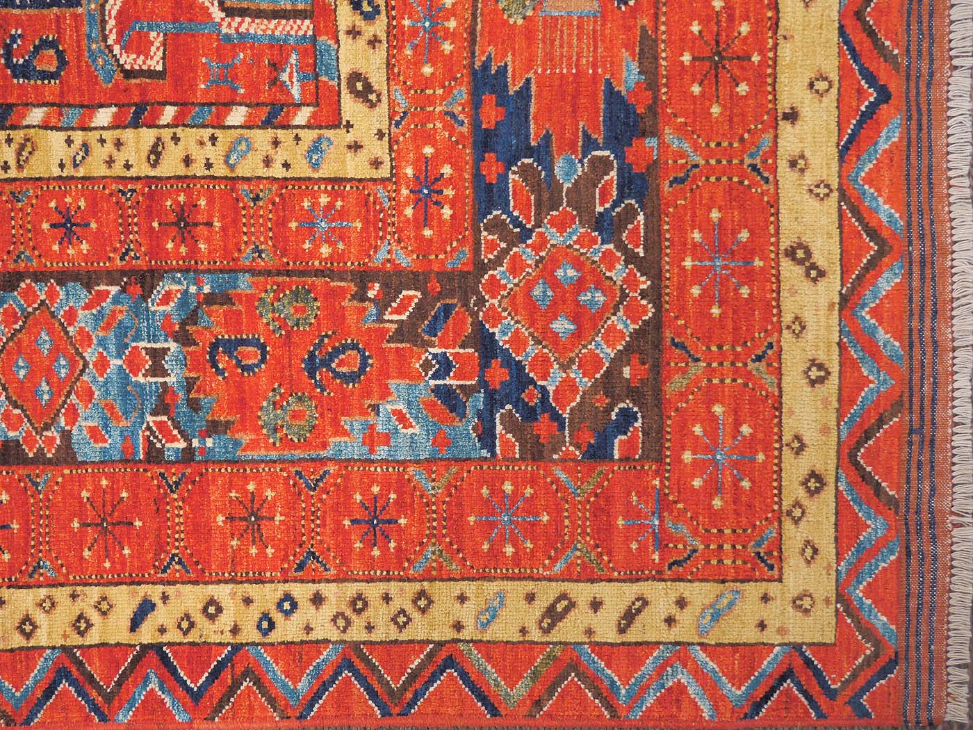 Hand knotted pile carpet made with natural dyes and handspun wool and a 100kpsi weave. This gorgeous Kyrgyz design is named for the beautiful Central Asian people of Kyrghystan. This rug features a classic Central Asia main carpet design with unique motifs not found in the other carpets. Like the people it is named for, this carpet is colorful and filled with historic motifs. This is a uniquely beautiful tribal rug that is entirely hand made! FREE Shipping and Easy Returns.