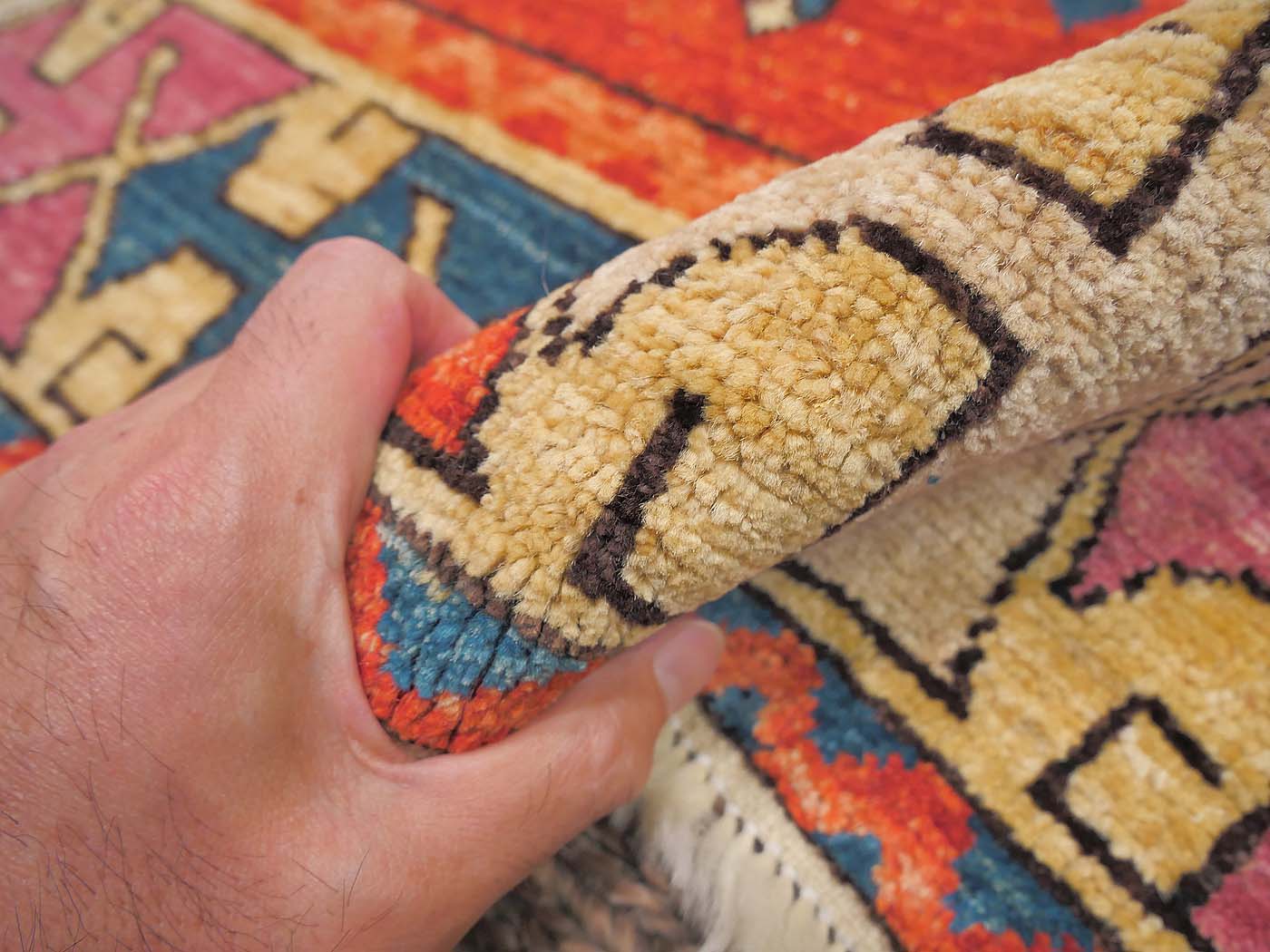 This hand knotted pile rug is made using natural dyes and handspun wool; commissioned by the Nomad Rugs design team and woven by Turquoise Mt. weavers. Thousands of women in Afghanistan are being supported in this weaving project which creates a sustainable livelihood for weaving families. Label Step ensure a comprehensive set of fair trade standards and environmentally friendly production. This rug features a Kurdish tribal design in rich colors and a fine 100kpsi weave. Entirely hand made. FREE Shipping and Easy Returns.