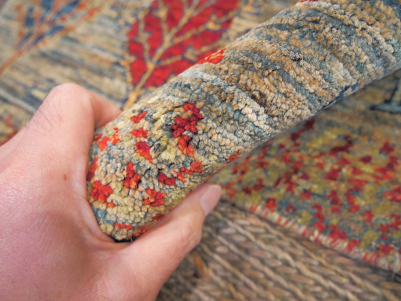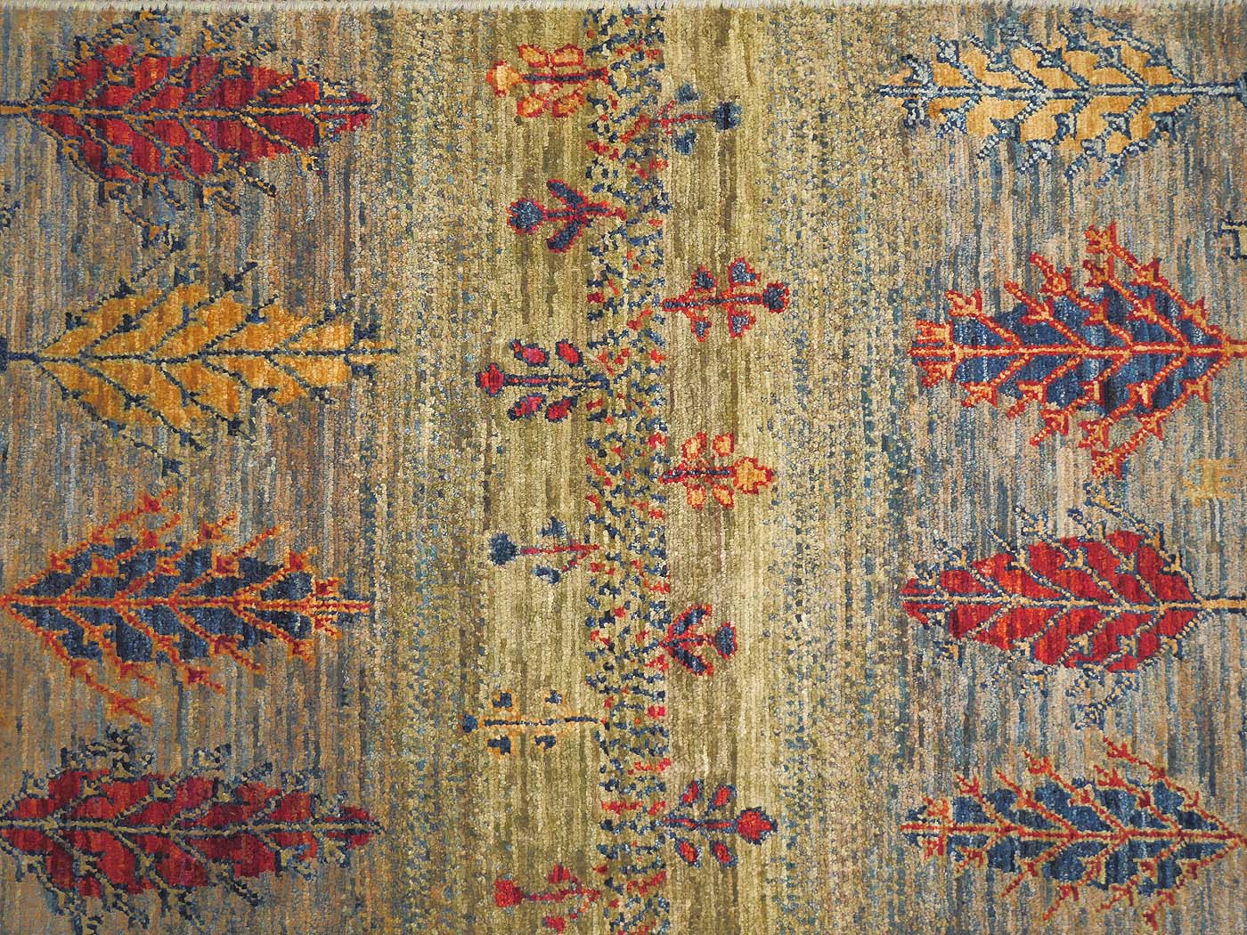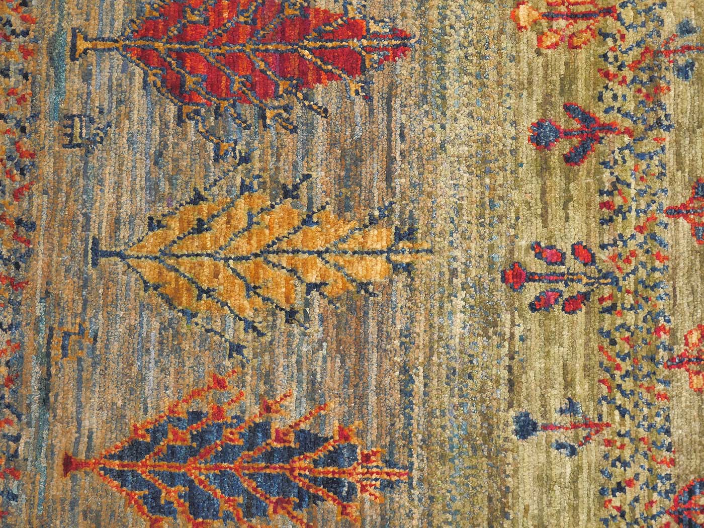 This hand knotted pile rug is made using 100% natural dyes and handspun wool. This rug is woven with around 120kpi. The lovely tribal rug with stylized trees, goats and pictorial landscape was inspired by a Luri tribal gabbeh rug. Weaving for the rug takes place in the northern areas of Afghanistan, the home of the Turkmen people where the art of weaving is reverently passed on from mother to daughter with the weaving of these rugs taking place in individual family homes. FREE Shipping and Easy Returns.