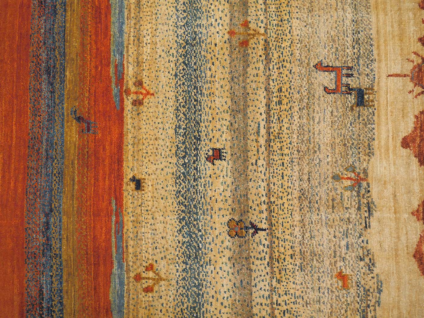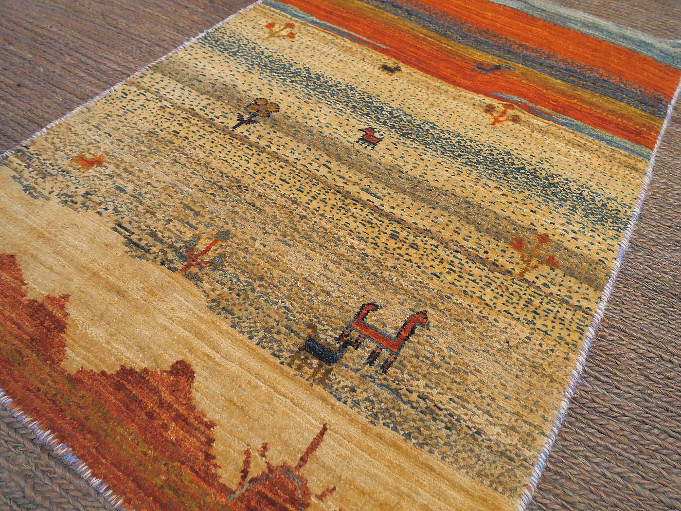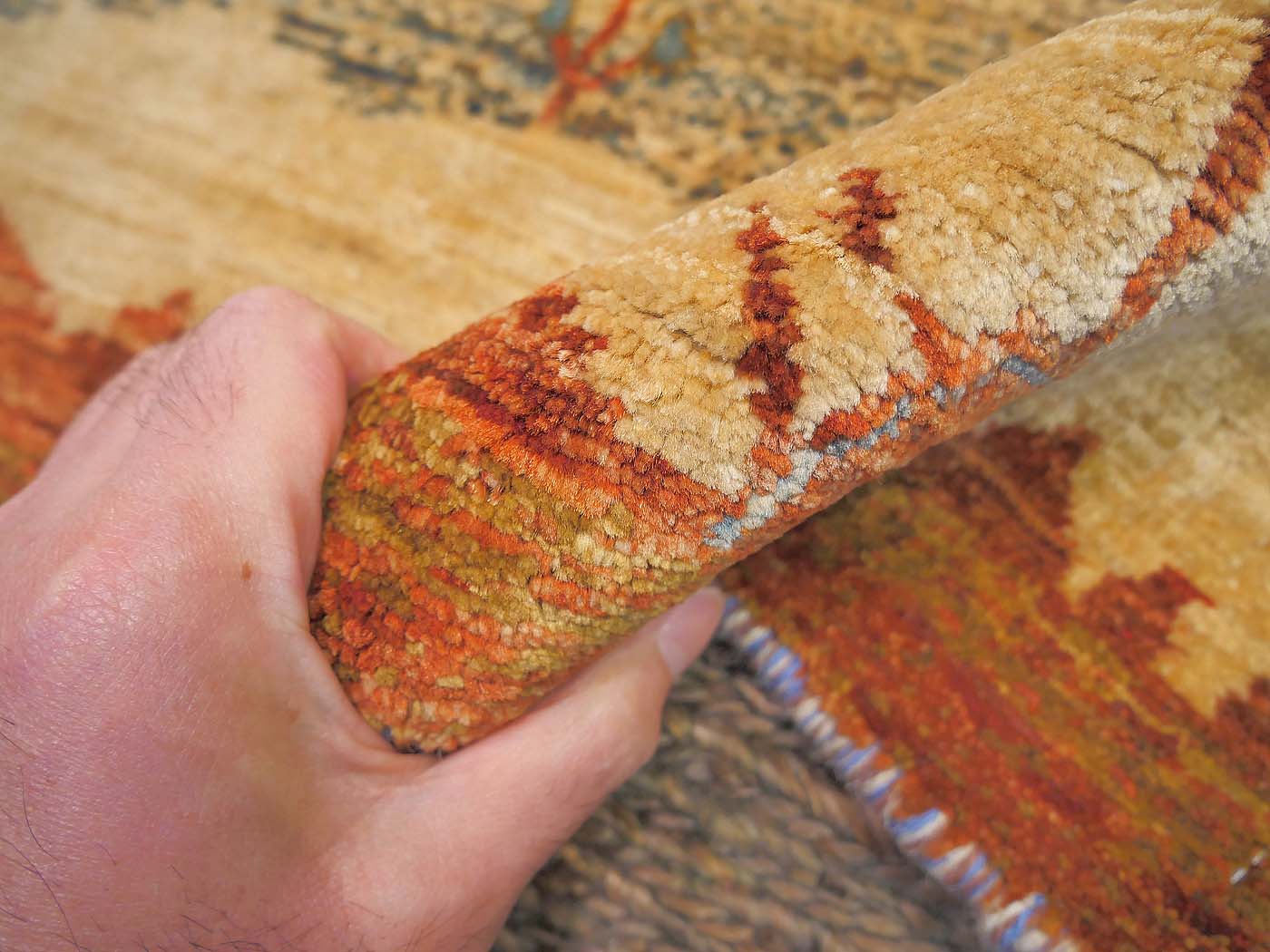 This hand knotted pile rug is made using 100% natural dyes and handspun wool. This rug is woven with around 120kpi. The lovely tribal rug with stylized trees, goats and pictorial landscape was inspired by a Luri tribal gabbeh rug. Weaving for the rug takes place in the northern areas of Afghanistan. FREE Shipping and Easy Returns.