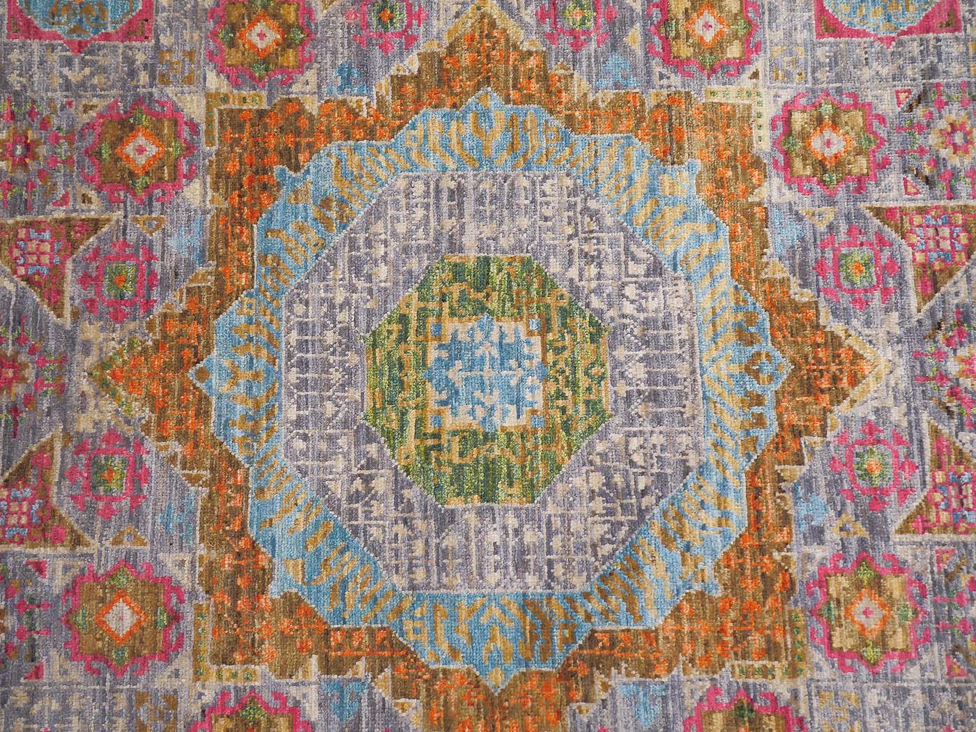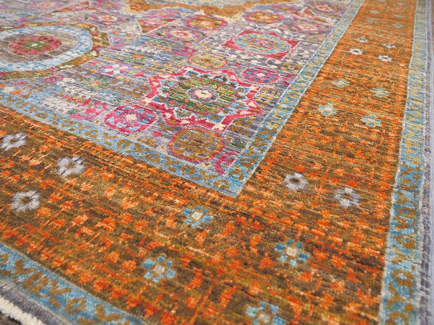 Hand knotted pile rug rug made using natural dyes and handspun wool. This rug comes from our Mamluk collection, one of the most finely woven carpets produced anywhere with natural dyes and handspun wool. The knotting is over 90kpsi. This striking rug has a design inspired by rugs commissioned for Mamluk Sultans in their court workshops centuries ago. These unique geometric rugs are equally well suited for contemporary or traditional interiors. Entirely hand made. FREE Shipping and Easy Returns.